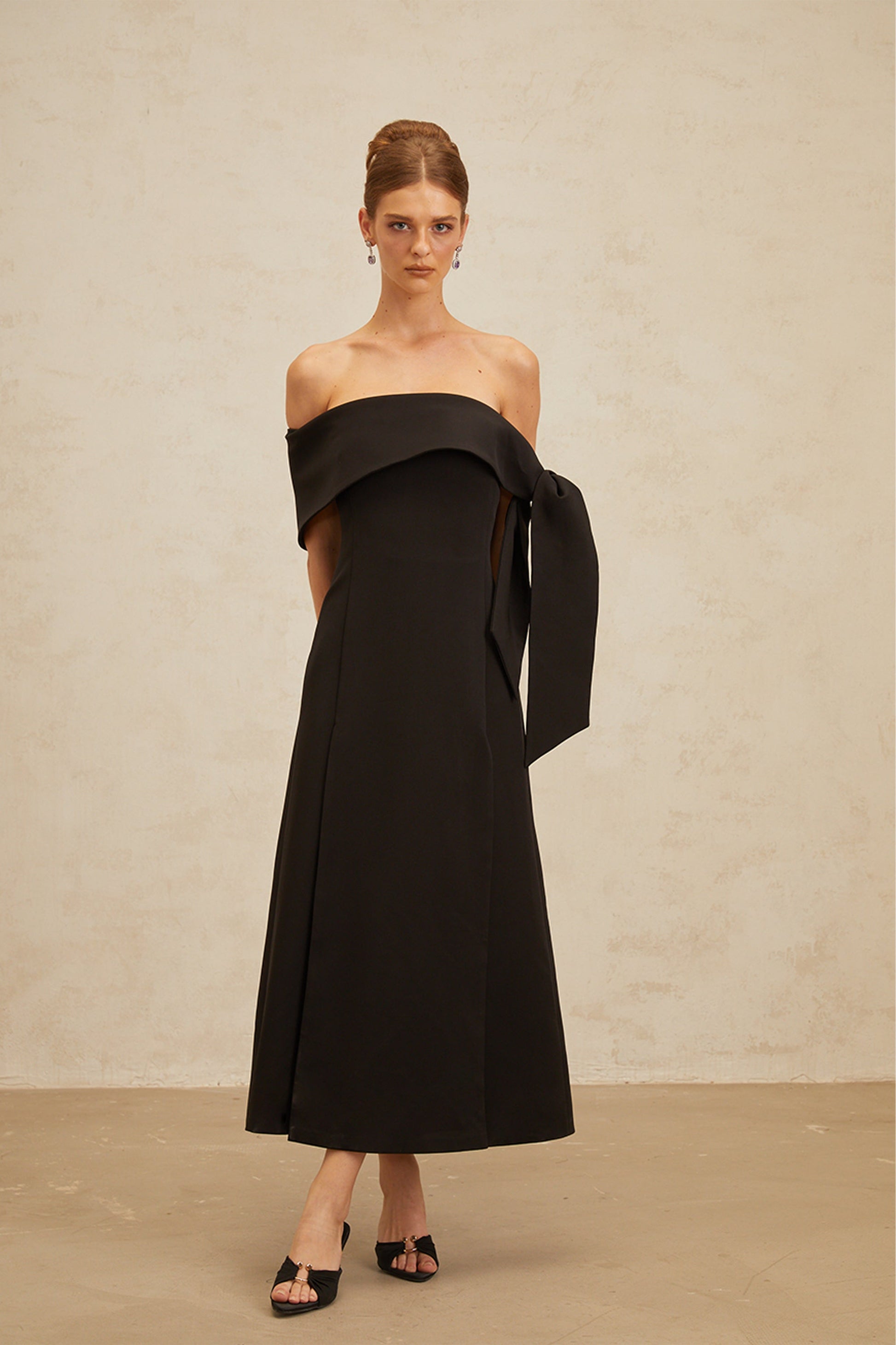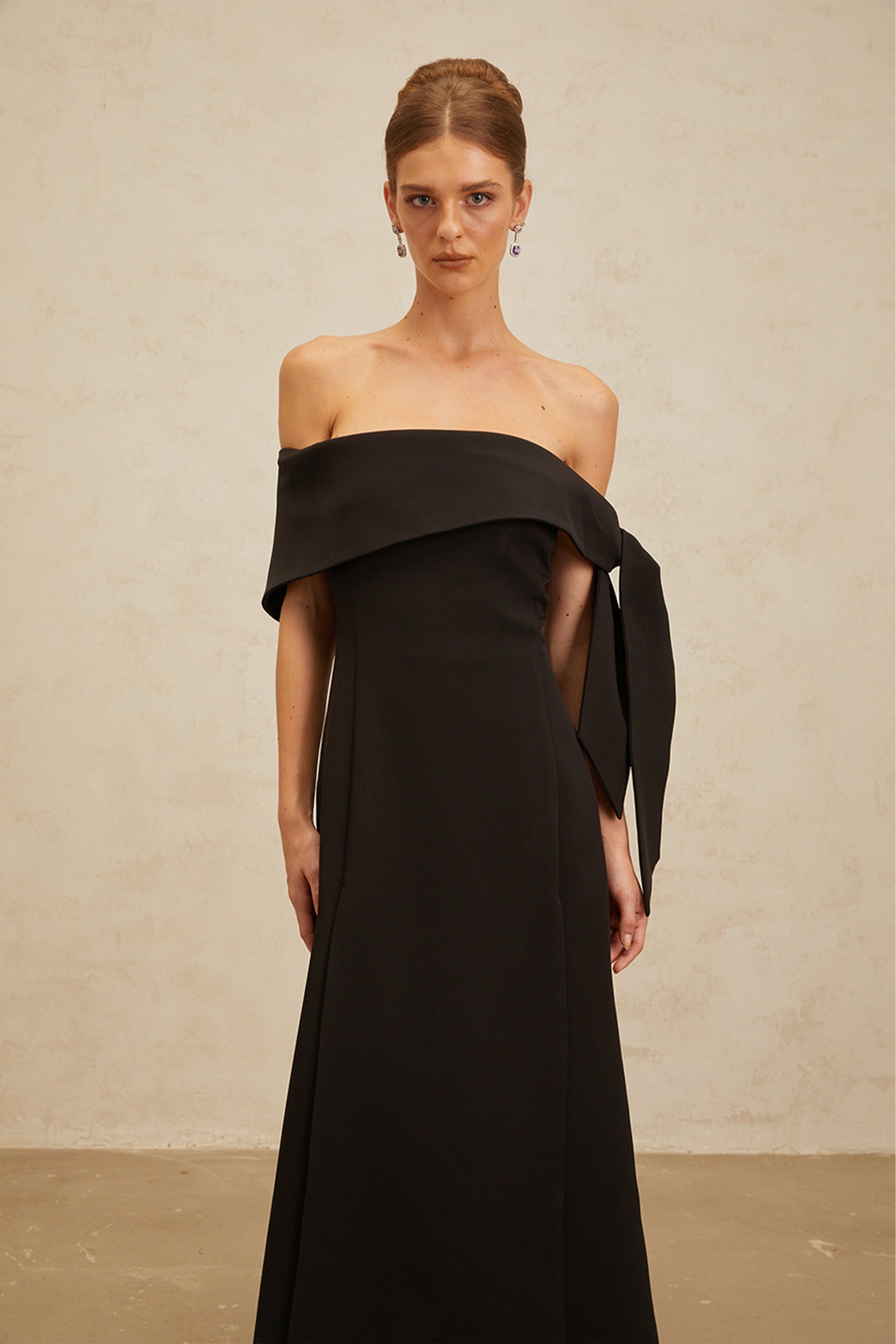 Bianca Black Off-Shoulder Bowknot Maxi Dress