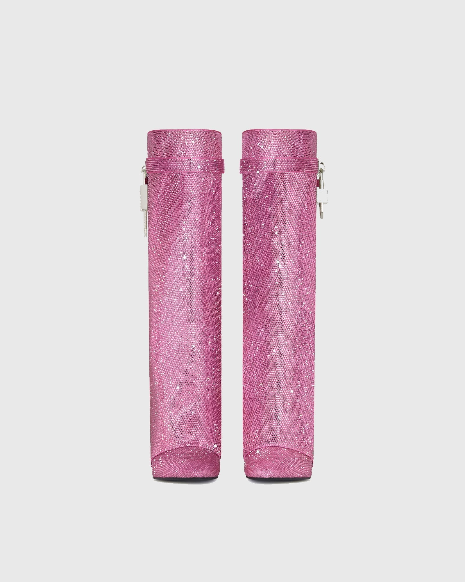 Bionda Buckle Rhinestone Velvet Knee High Boots In Pink