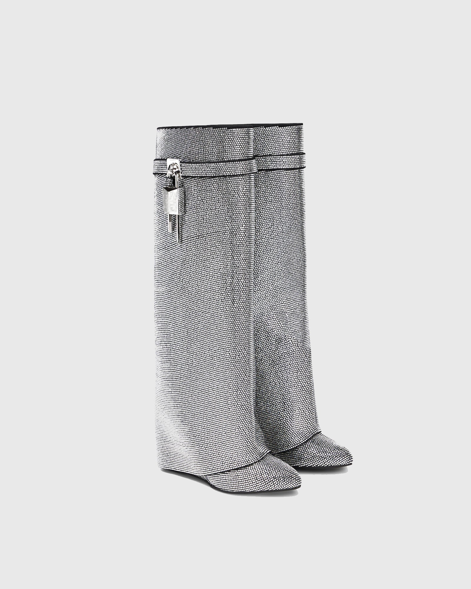 Bionda Buckle Rhinestone Velvet Knee High Boots In Silver