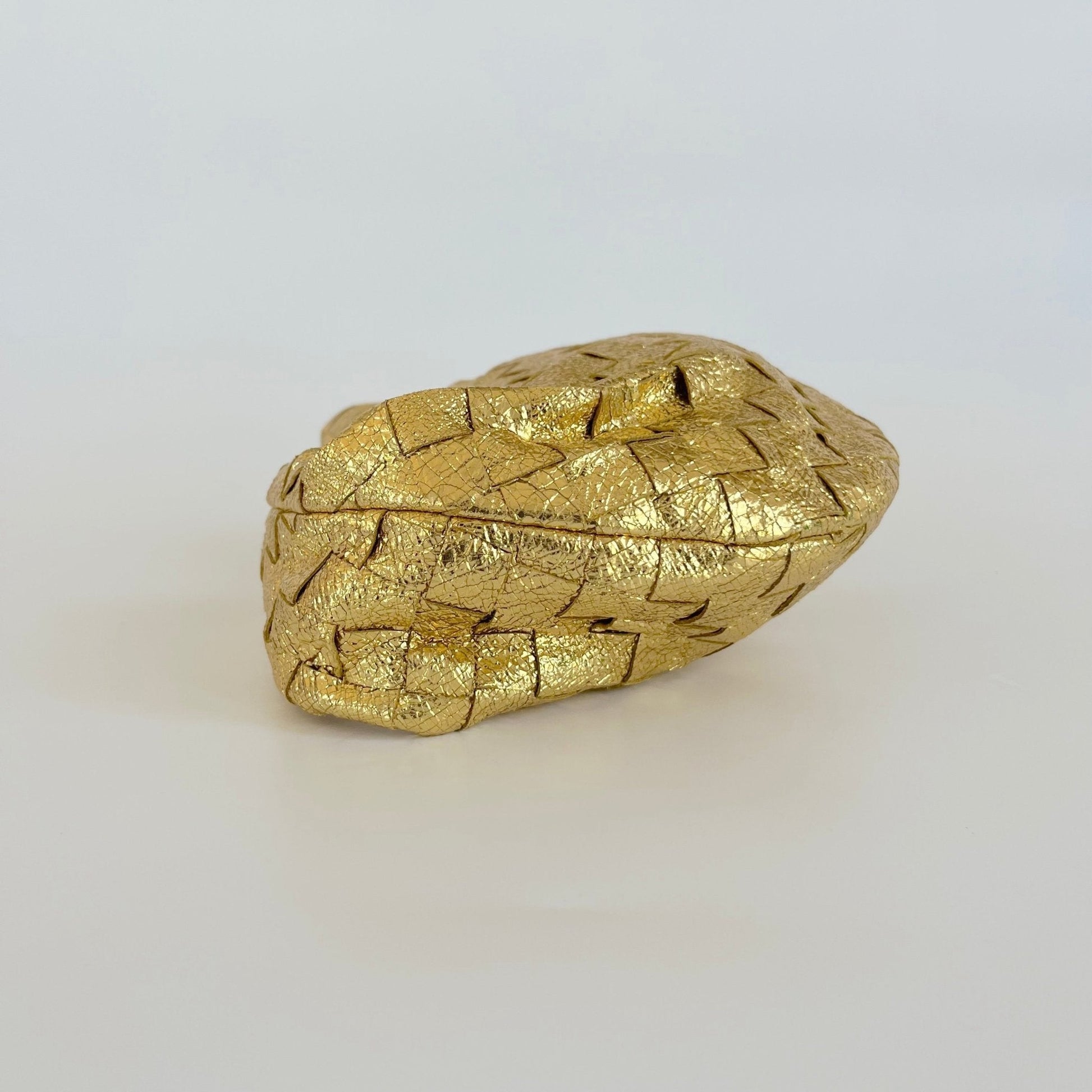 Bottega Veneta Metallic Gold Intrecciato Leather Mini BV Jodie Bag
