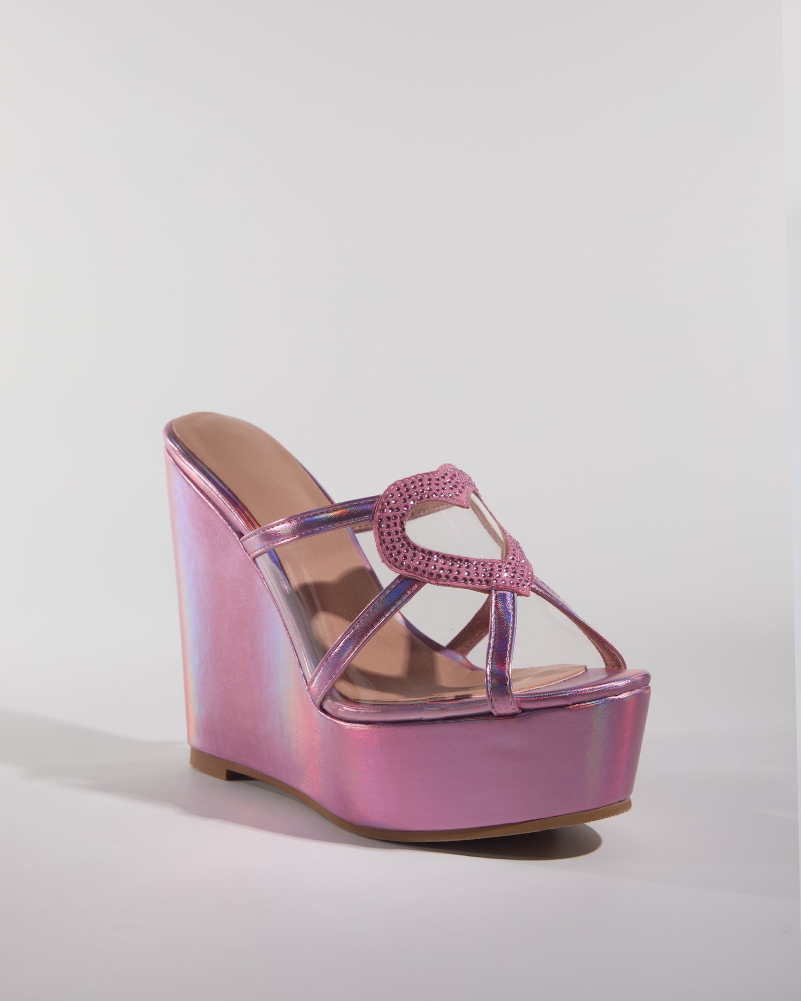 Brielle Rhinestone Heart Wedge Mules