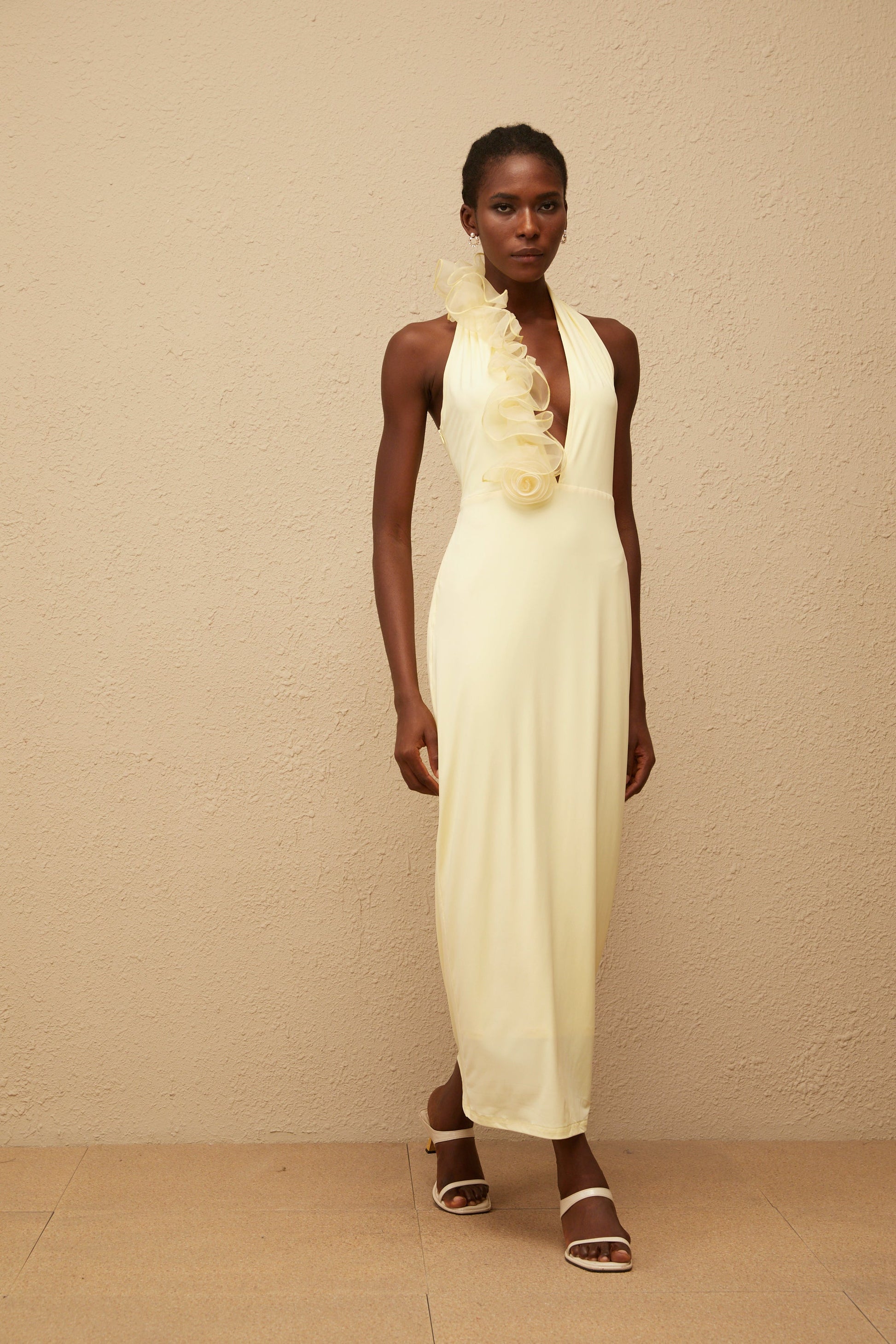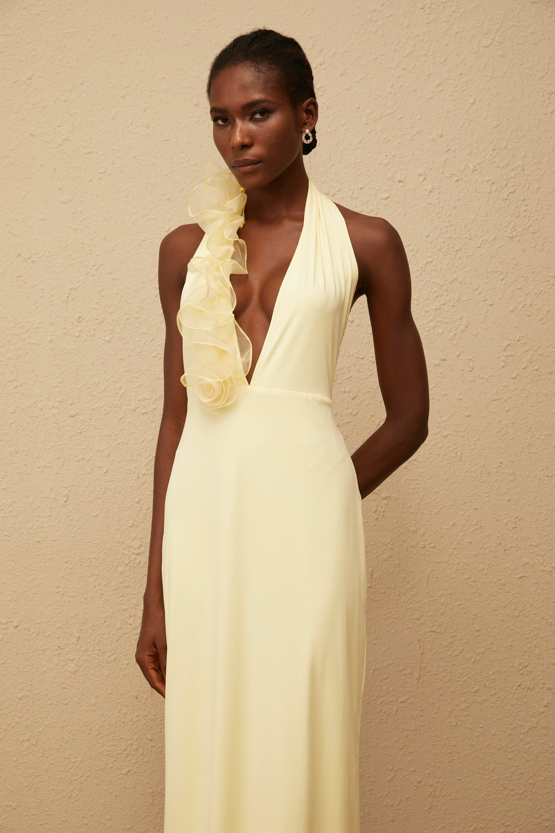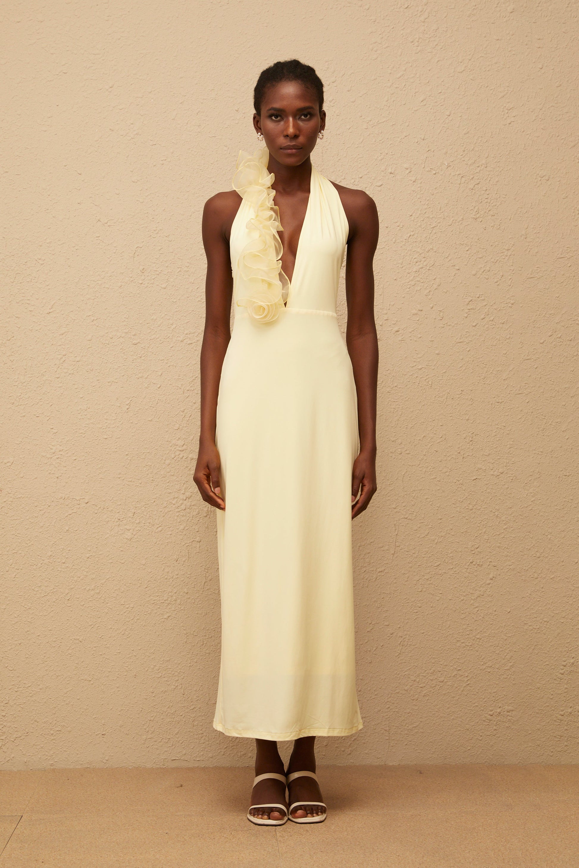 Brume Yellow Halterneck 3D Petal Maxi Dress