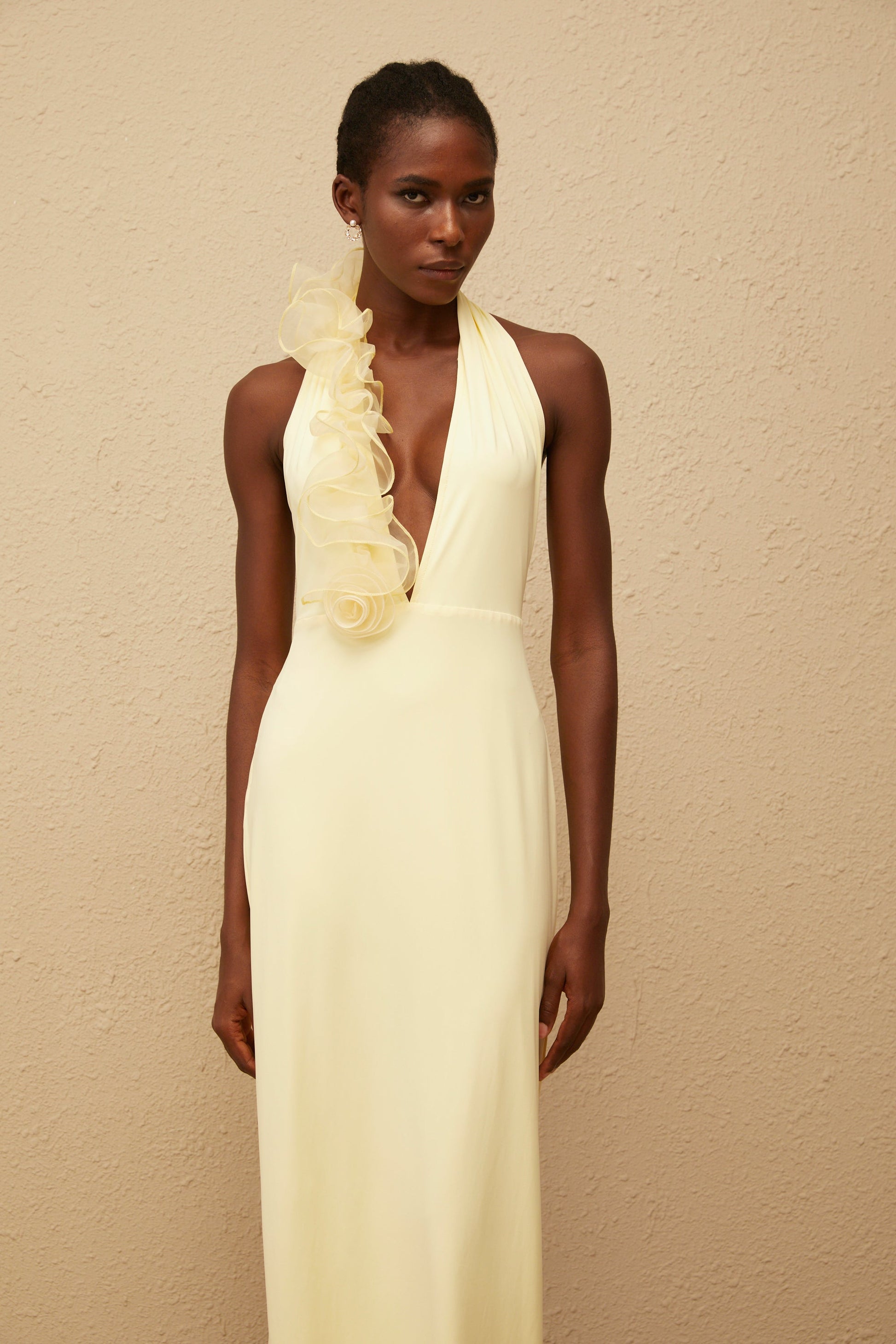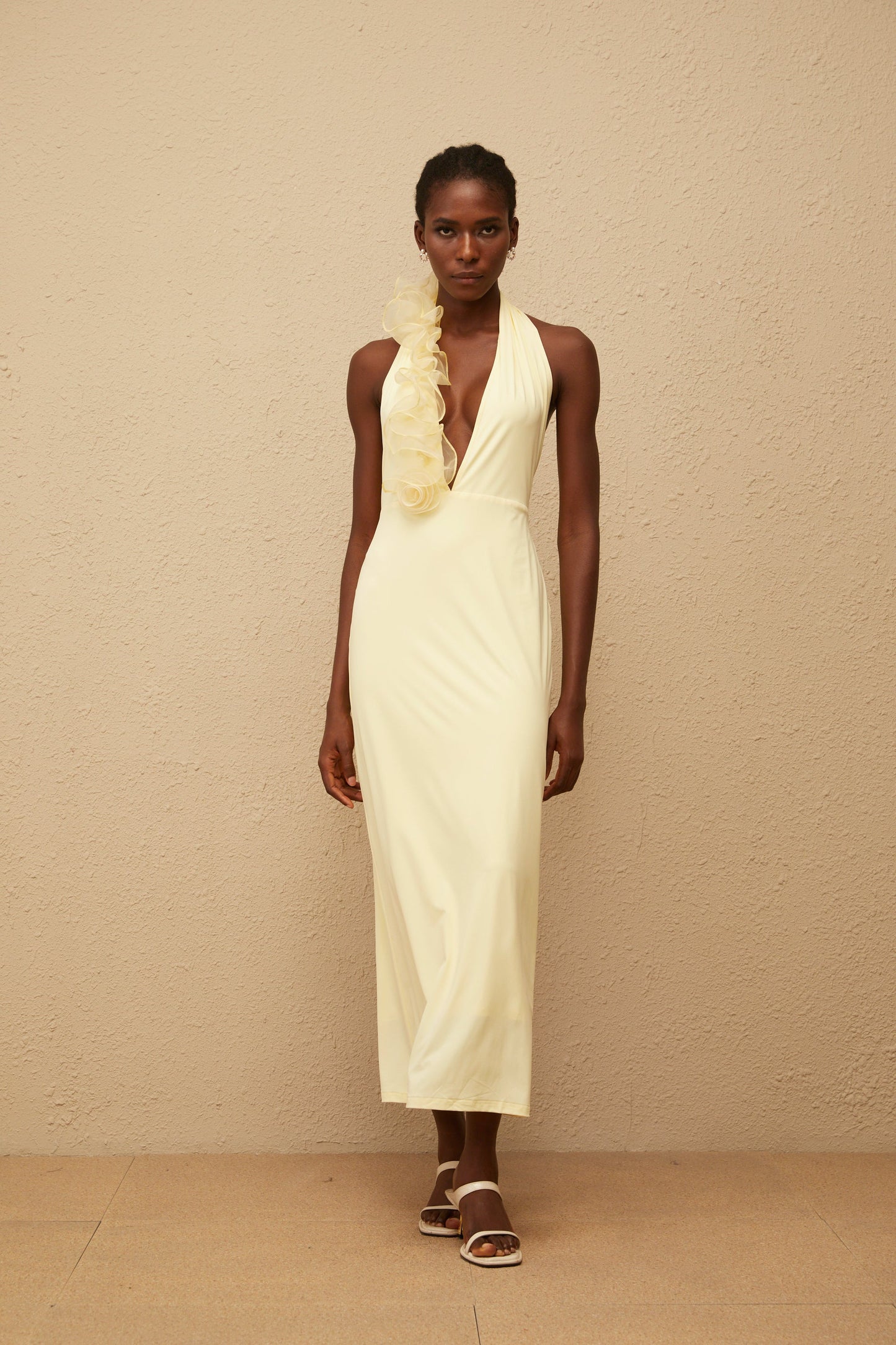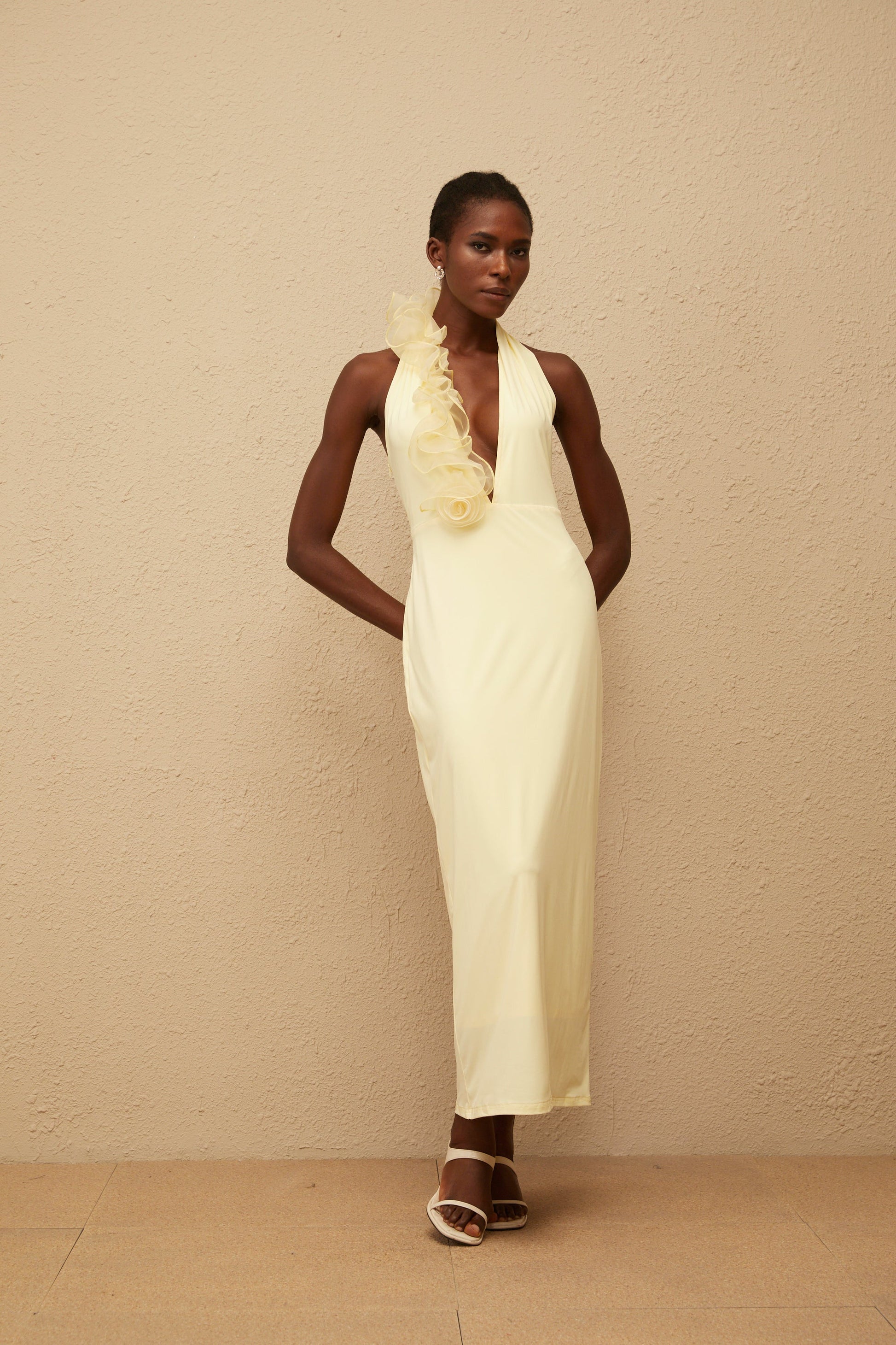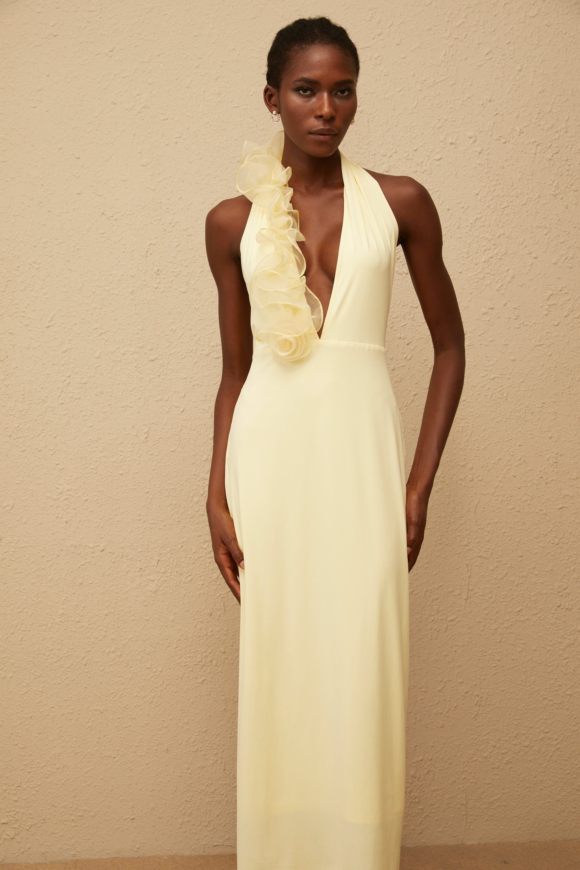 Brume Yellow Halterneck 3D Petal Maxi Dress