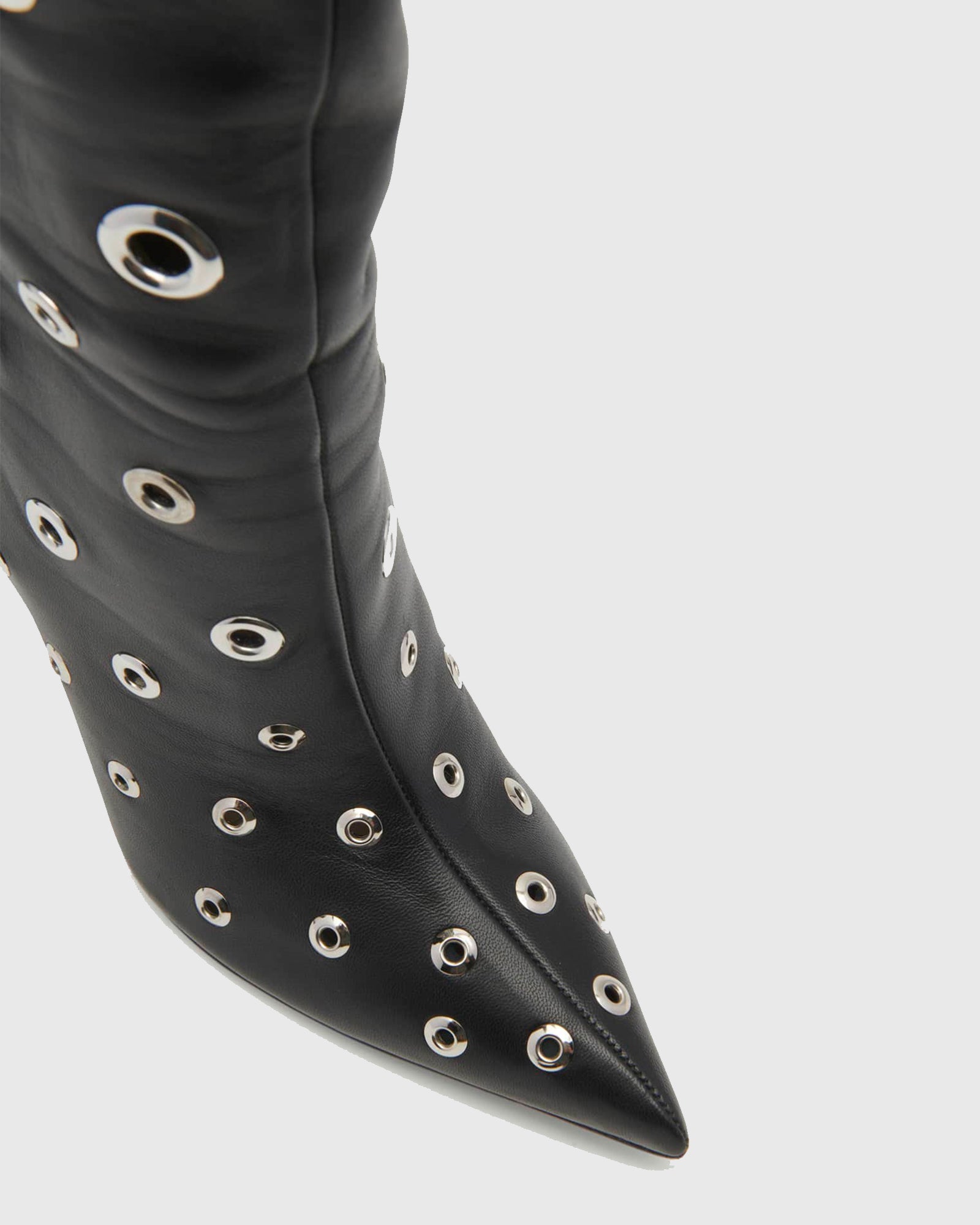 Brunilda Rivet Cutout Leather Knee High Boots In Black