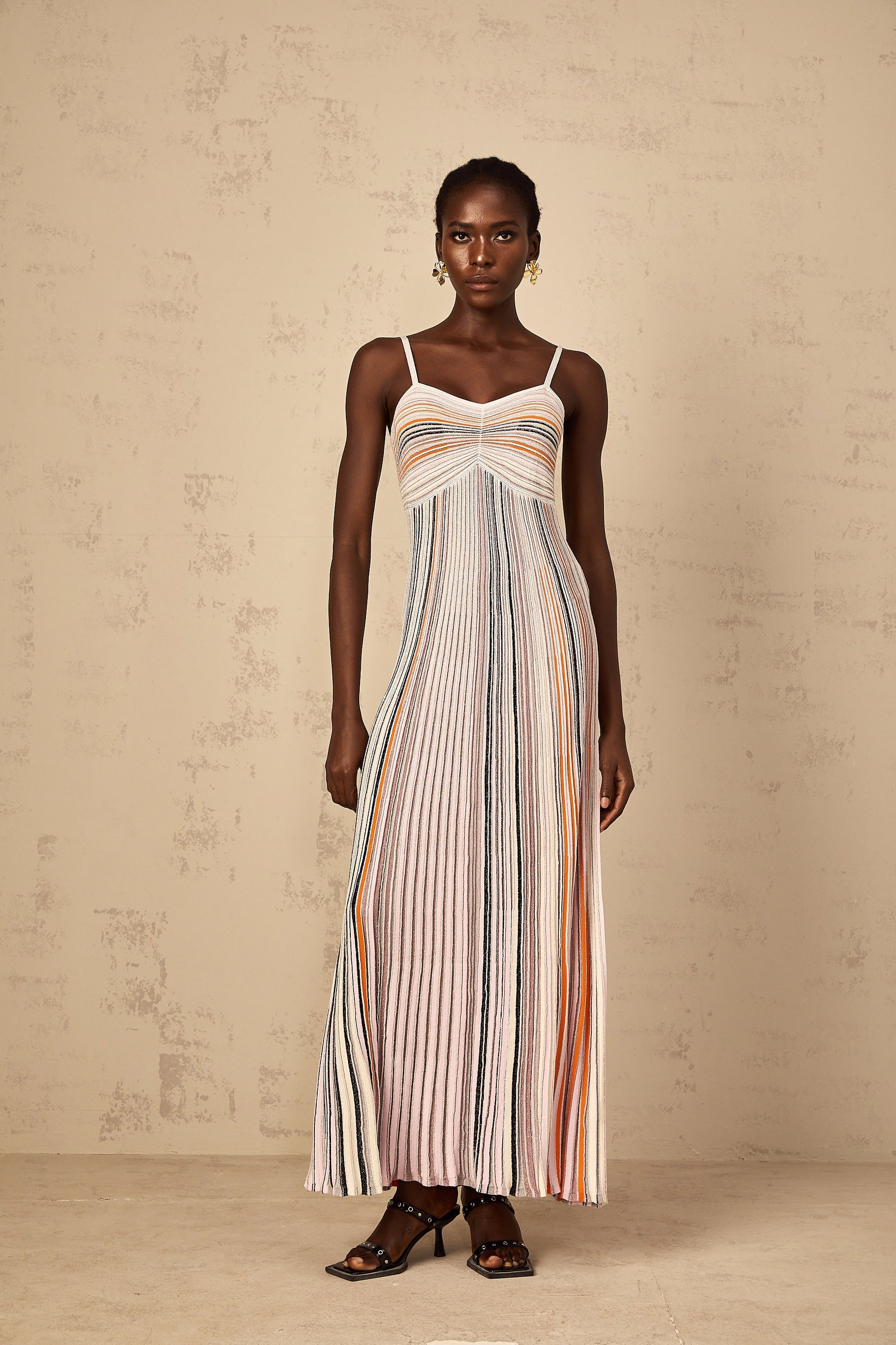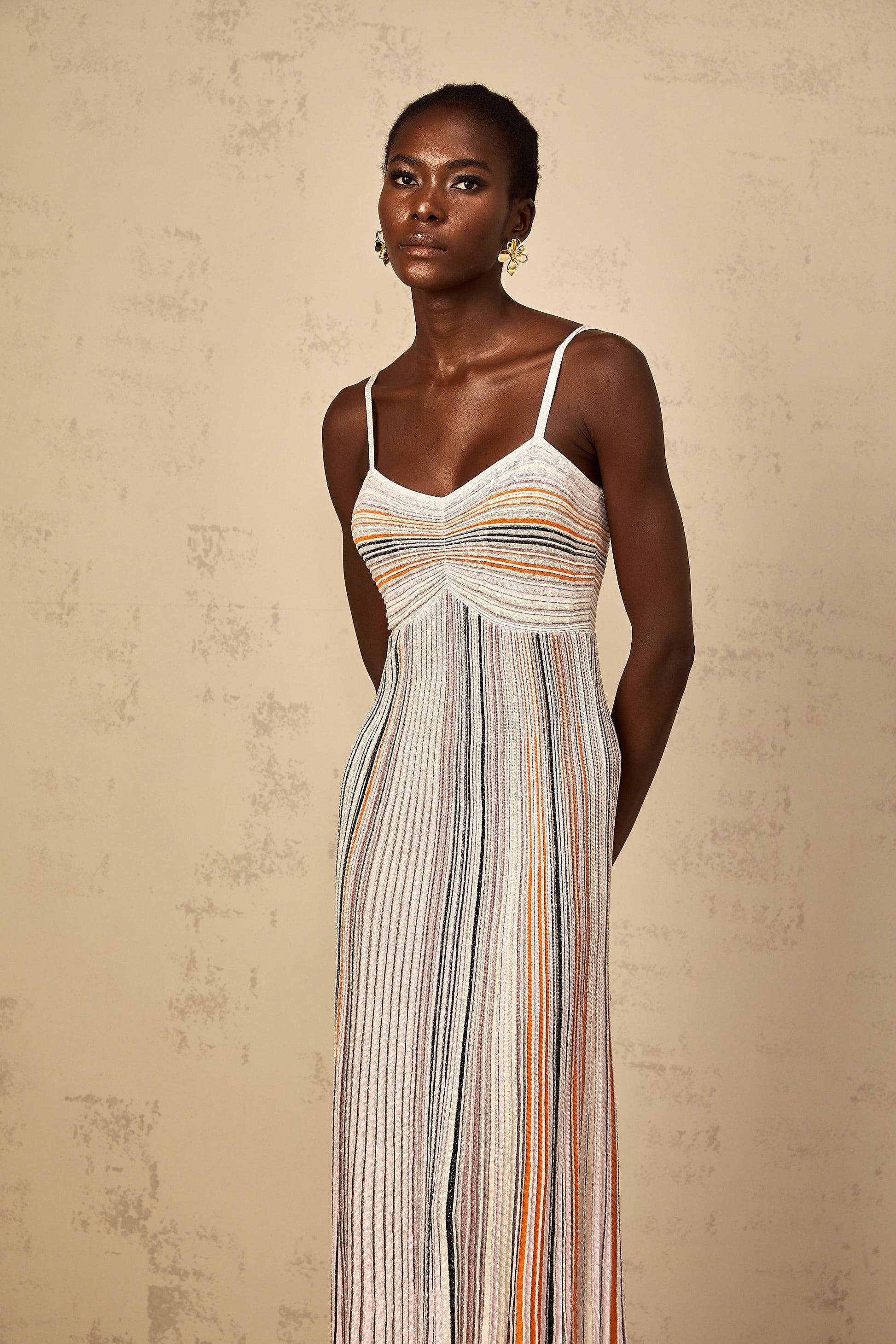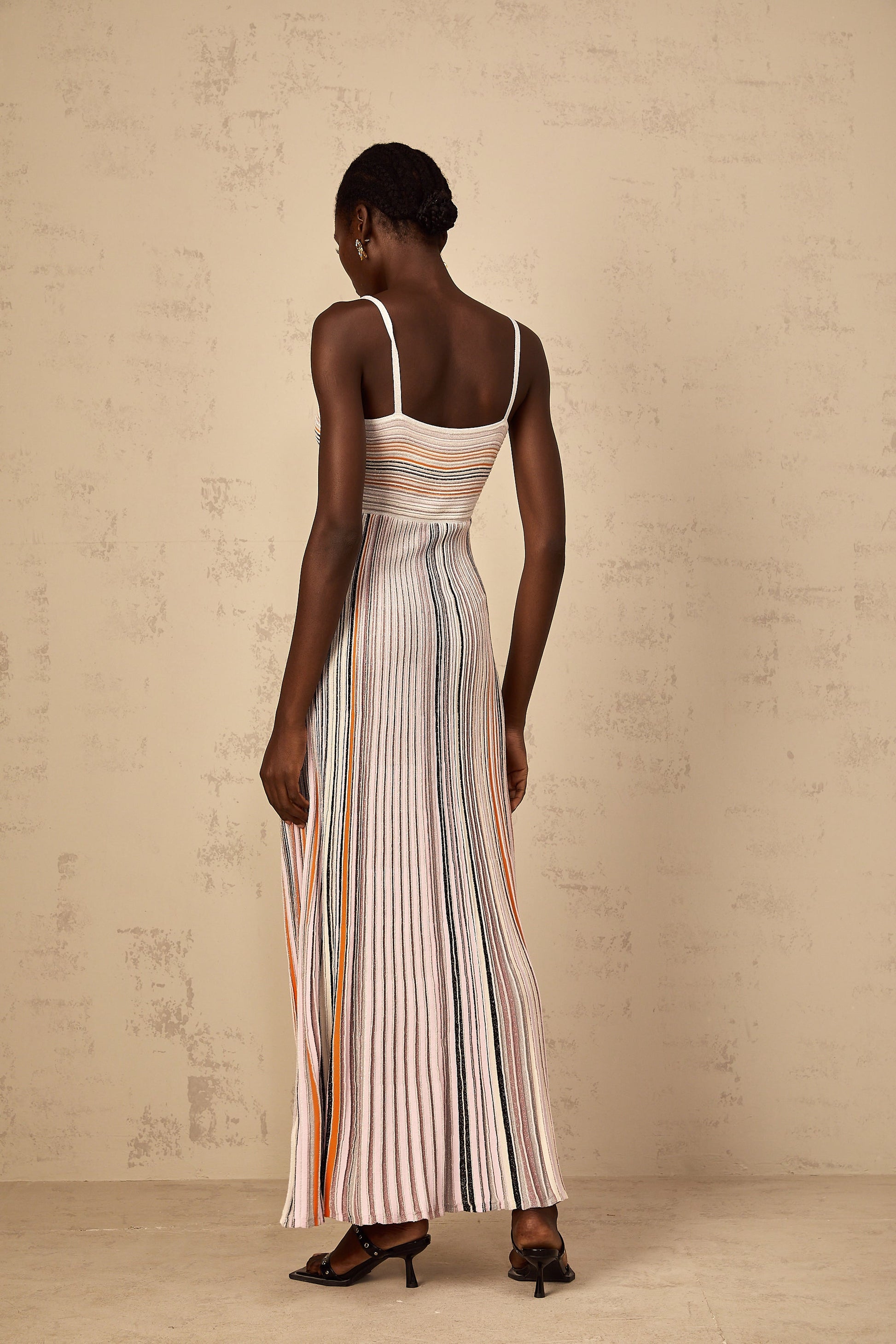 Bruyère Neutral Sequin Striped Knit Maxi Dress