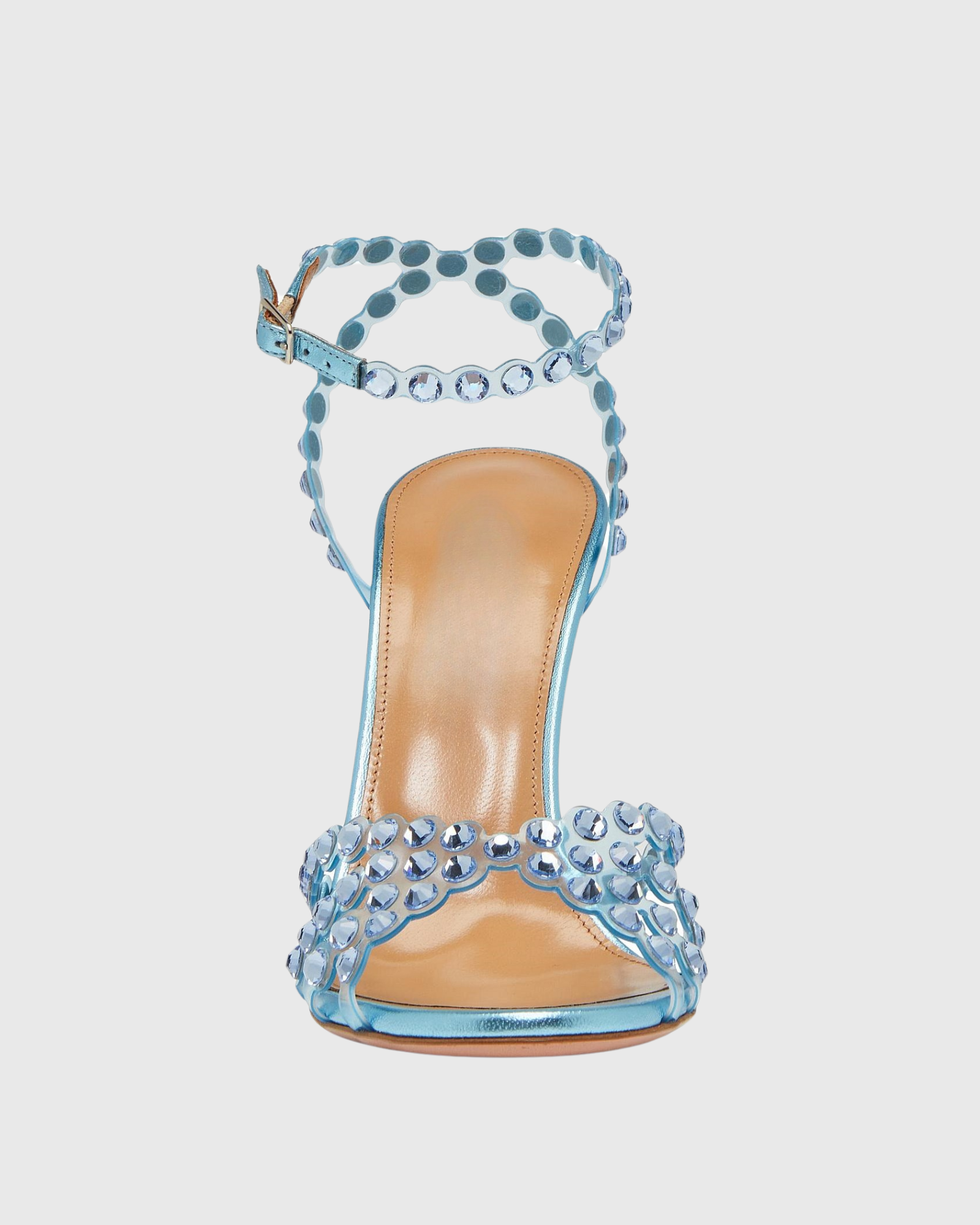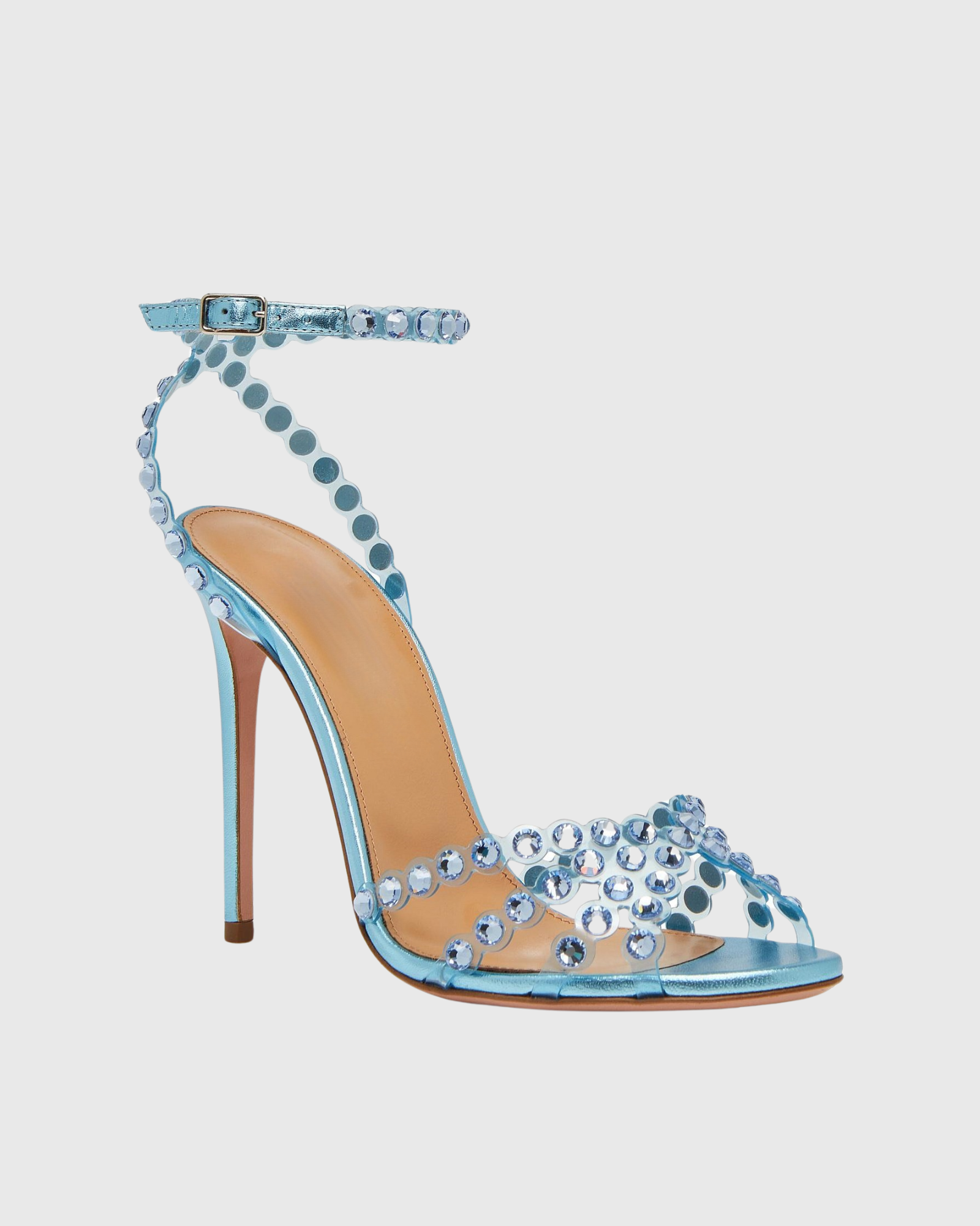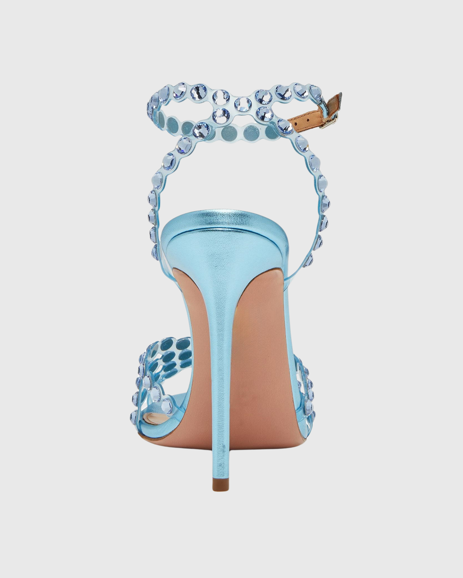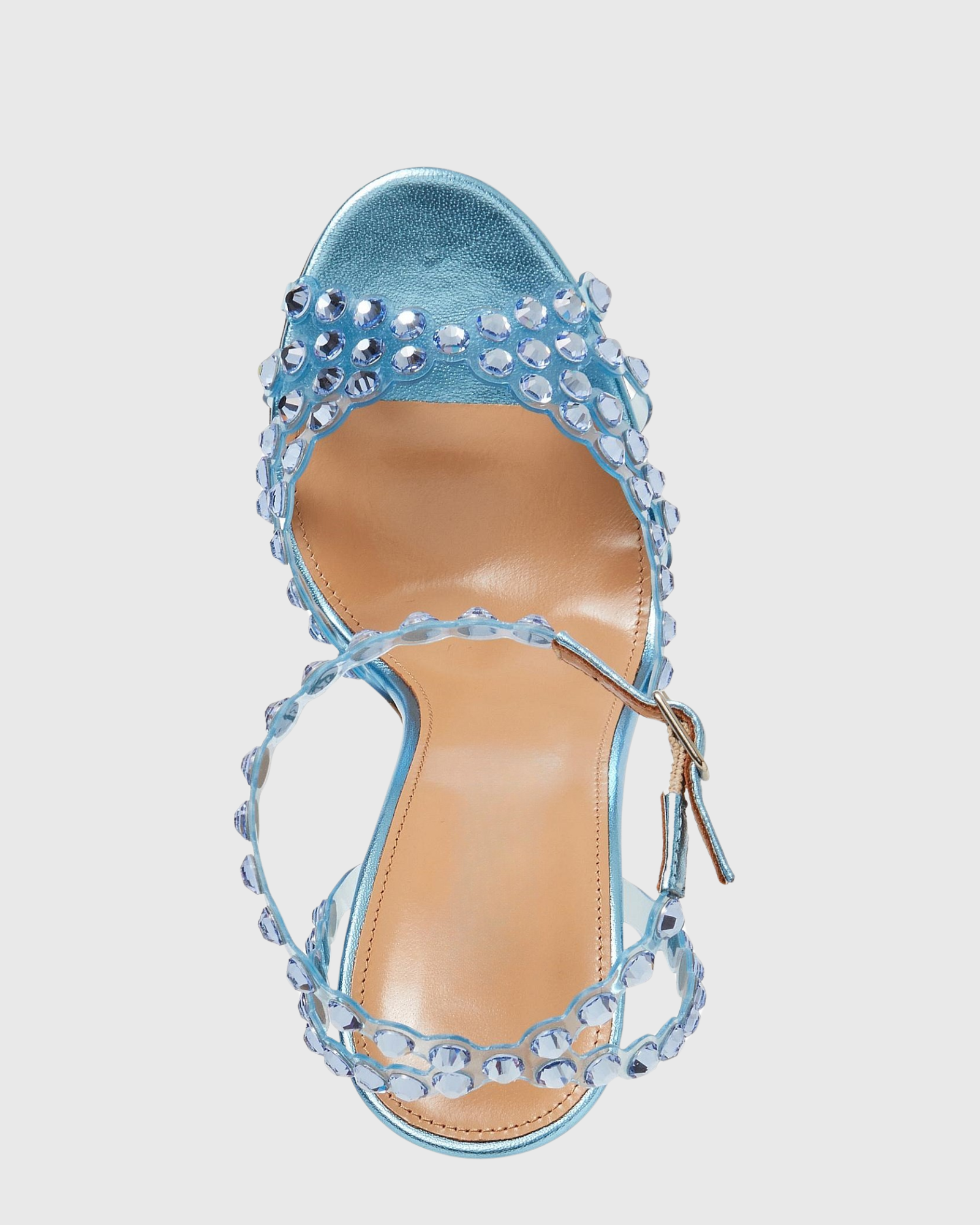 Cameo Rhinestone Embellished PVC Strap Sandals In Sky