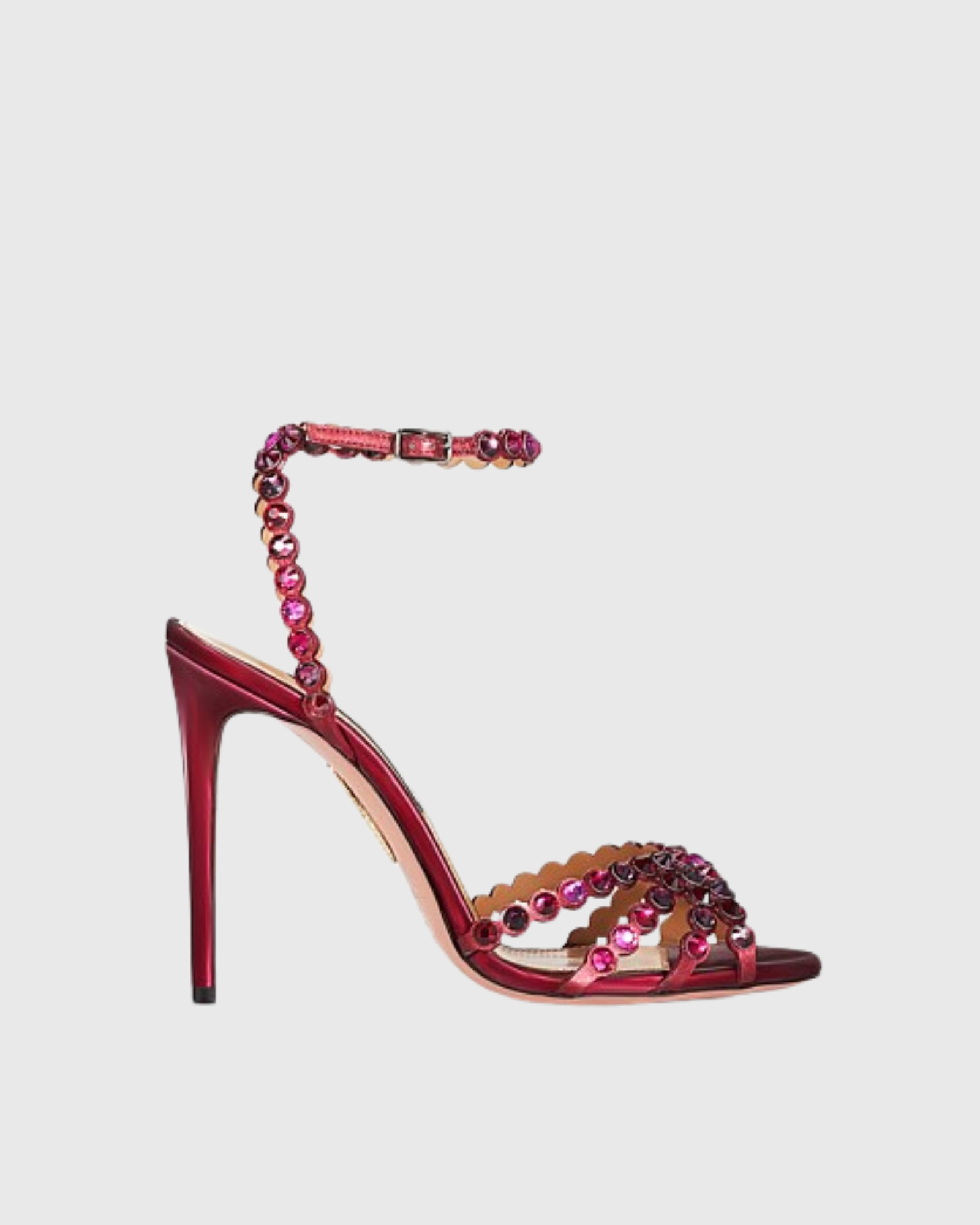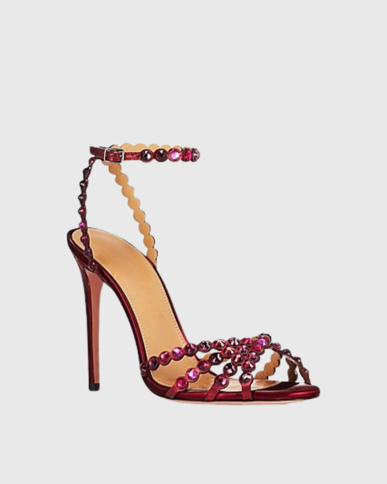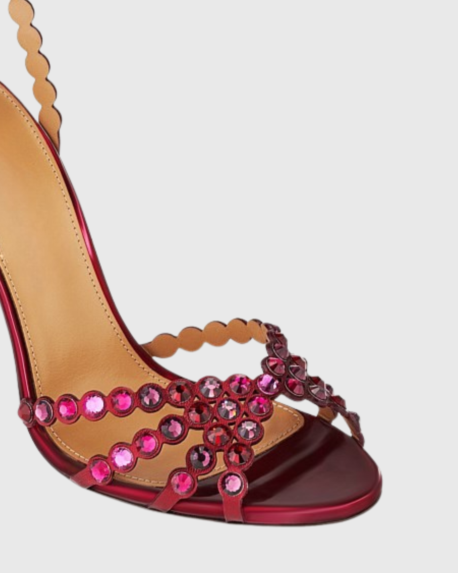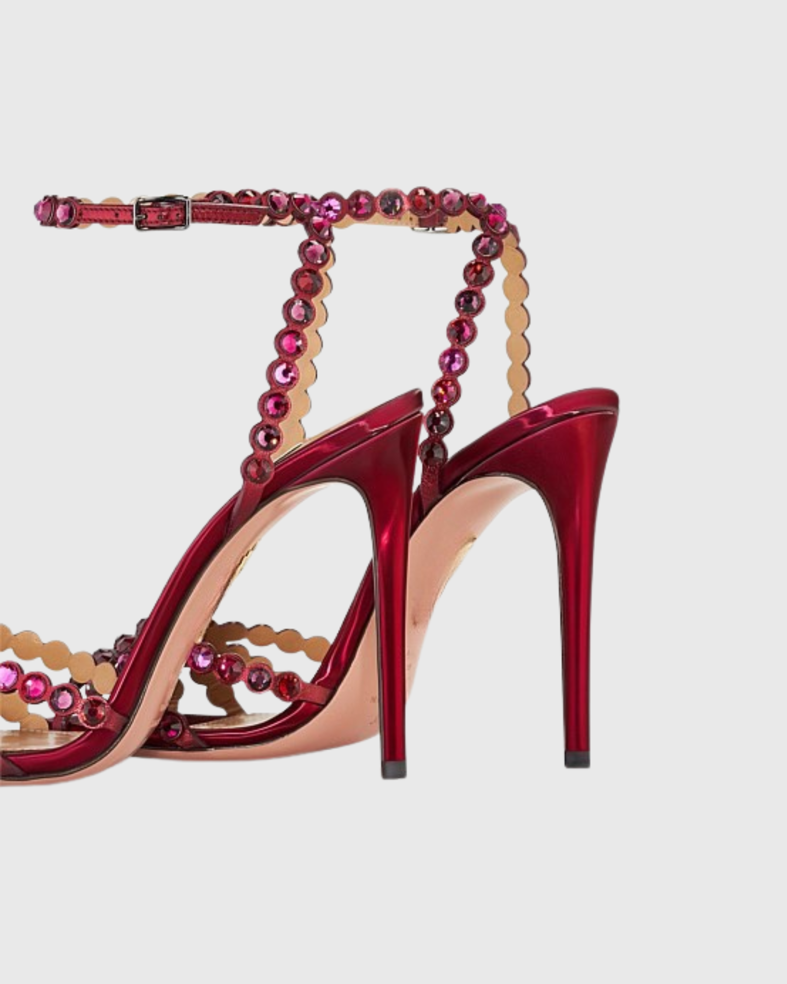 Cameo Rhinestone Embellished PVC Strap Sandals In Wine