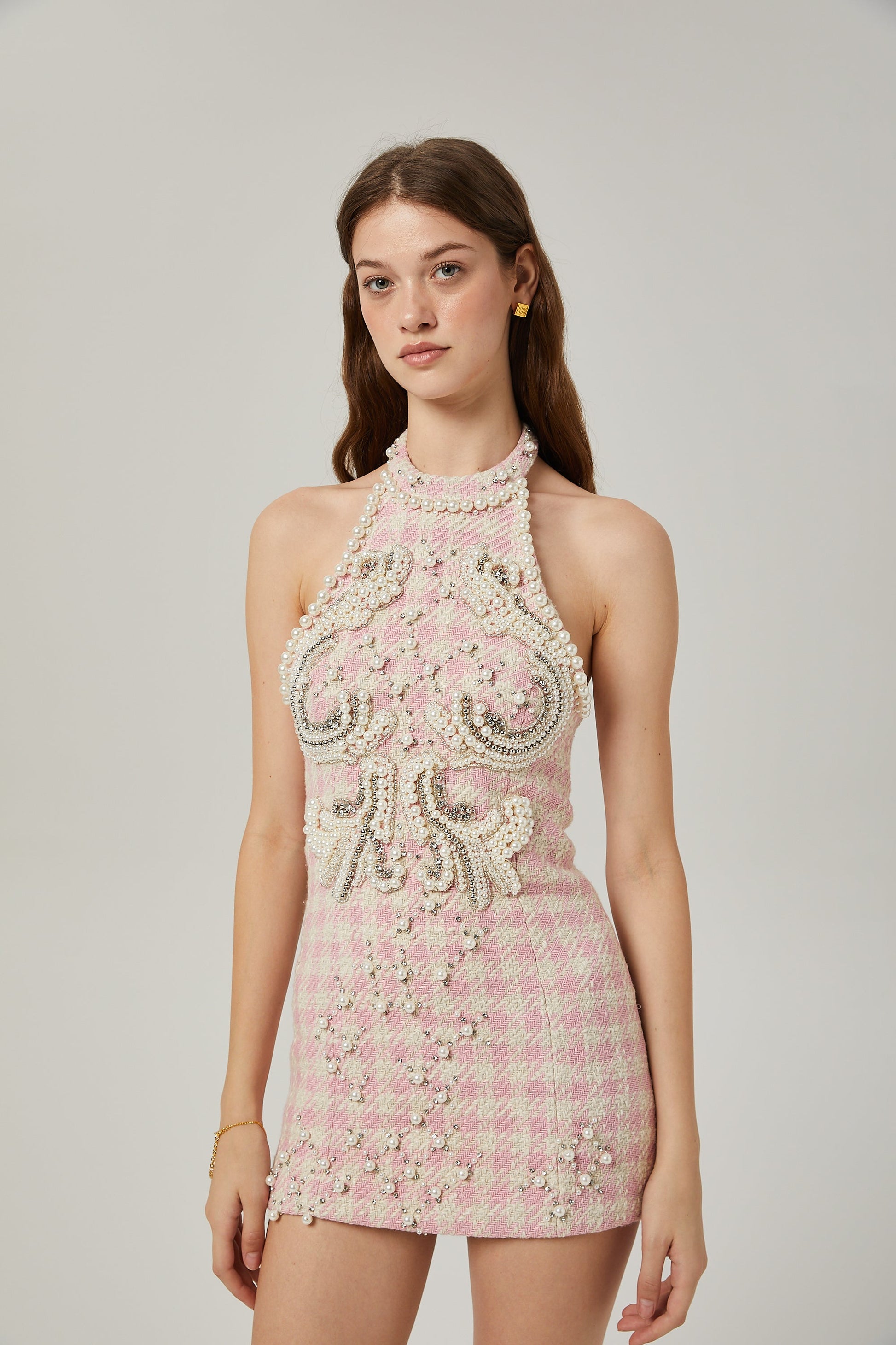 Capucine pearl-embellished mini dress