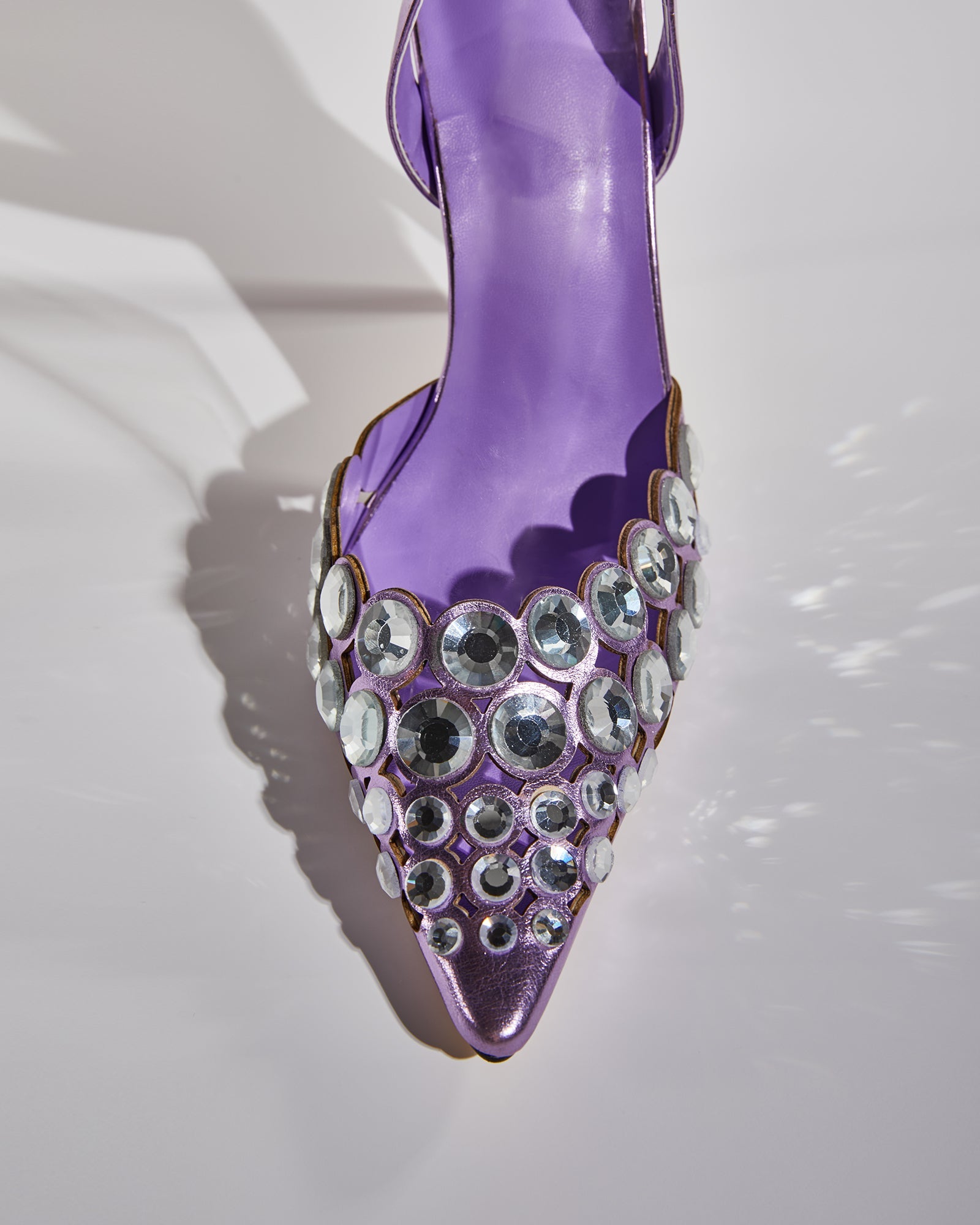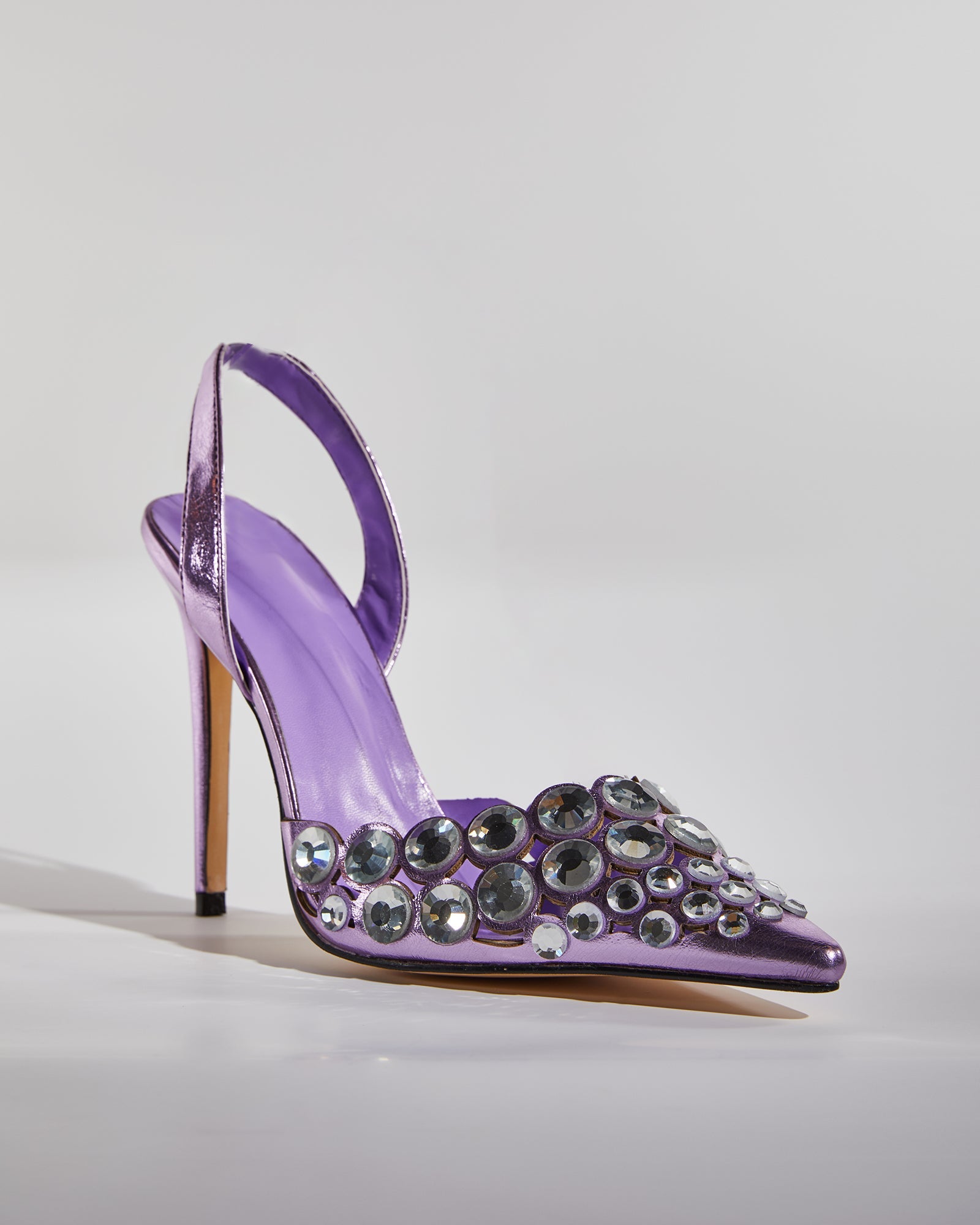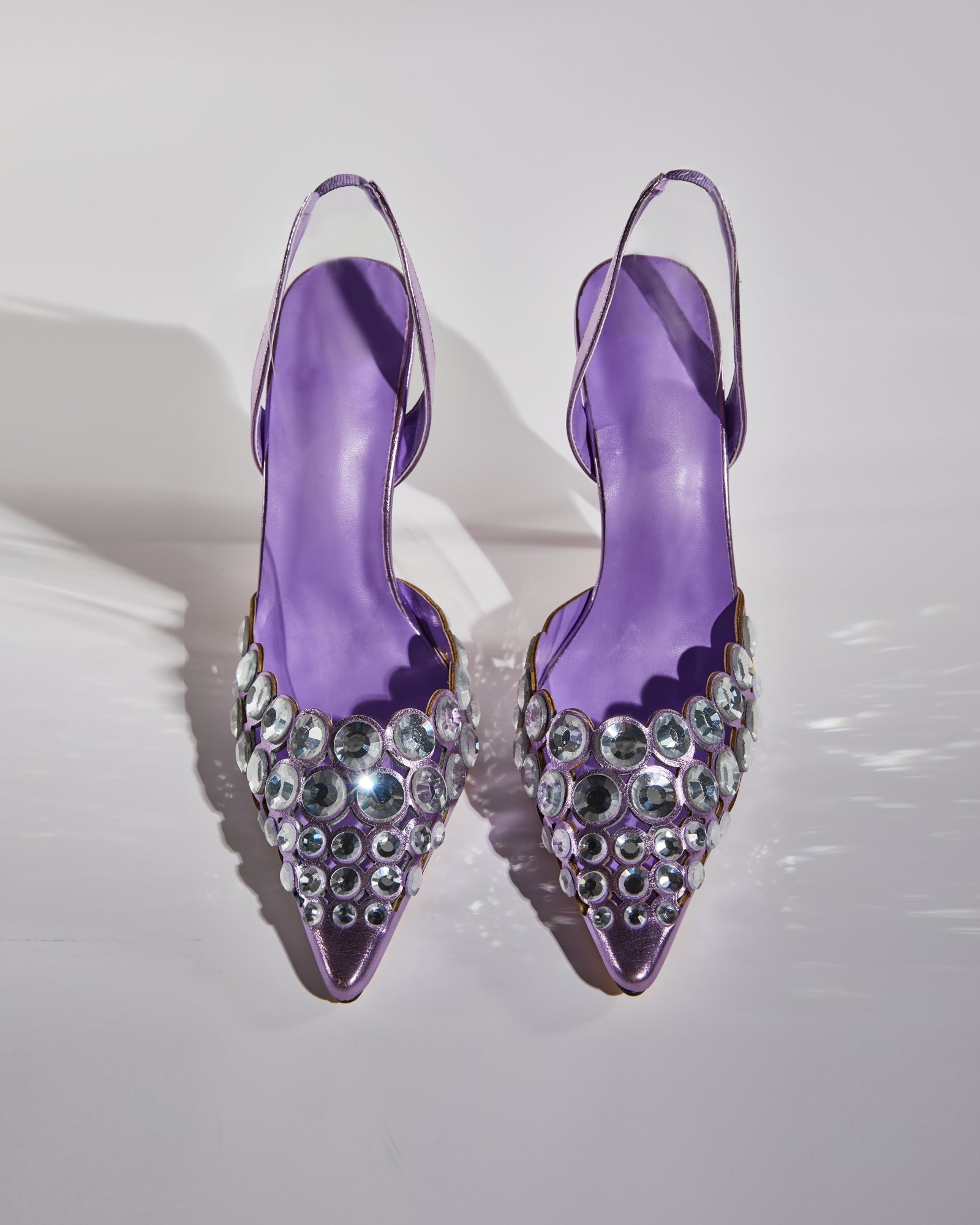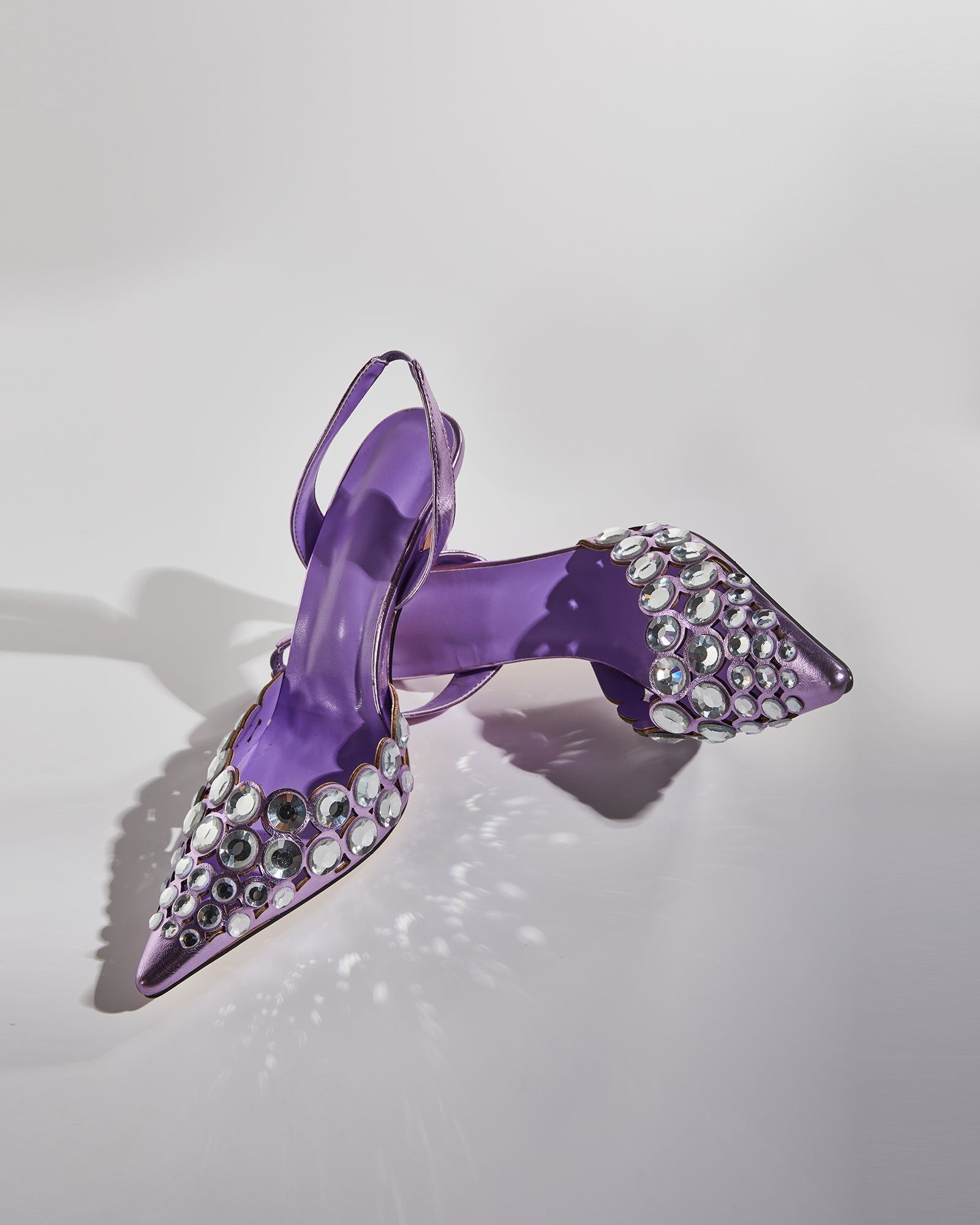 Step into style with our Carolina Rhinestone Slingback Pumps! These dazzling shoes feature rhinestone accents and a comfortable slingback design. Perfect for any occasion, the deep purple color is sure to make a statement. Elevate your wardrobe and turn heads with the Carolina Rhinestone Slingback Pumps.