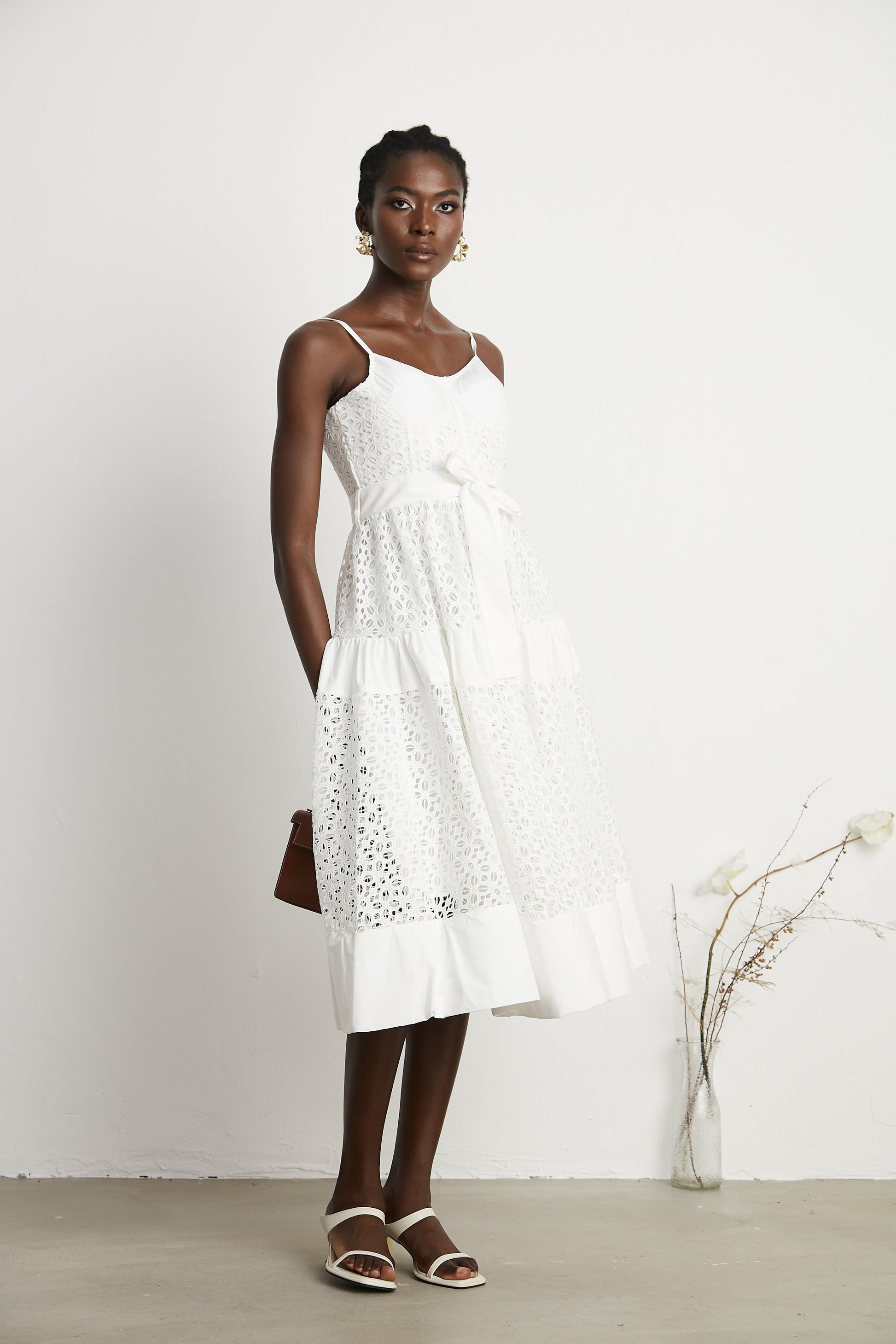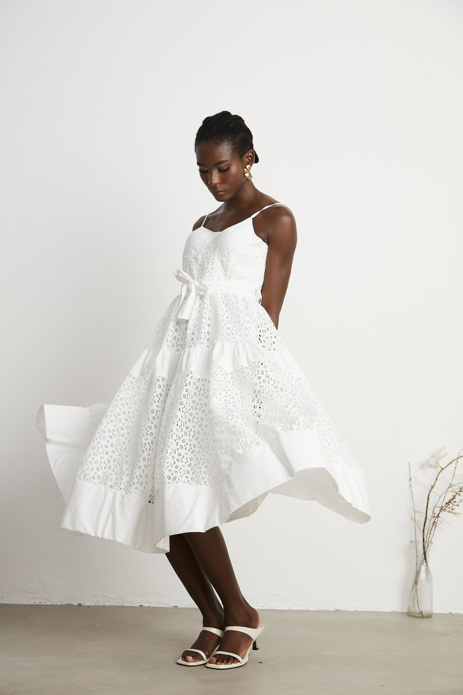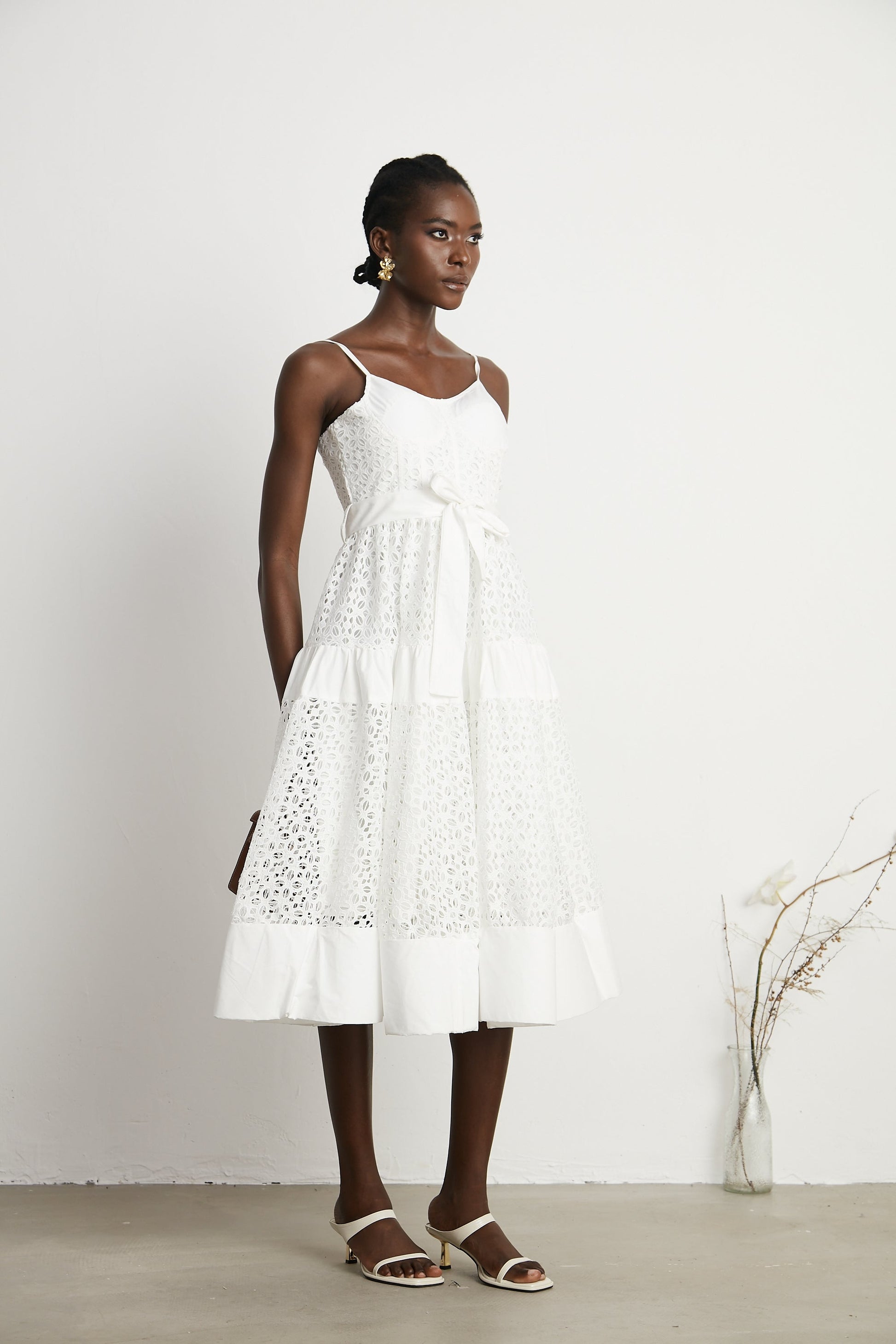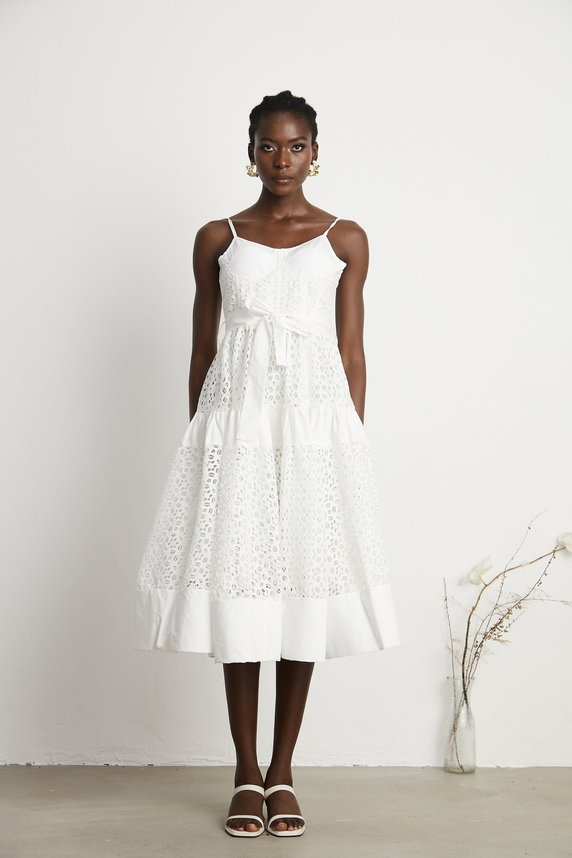 Catriona belted cut-out cotton midi dress