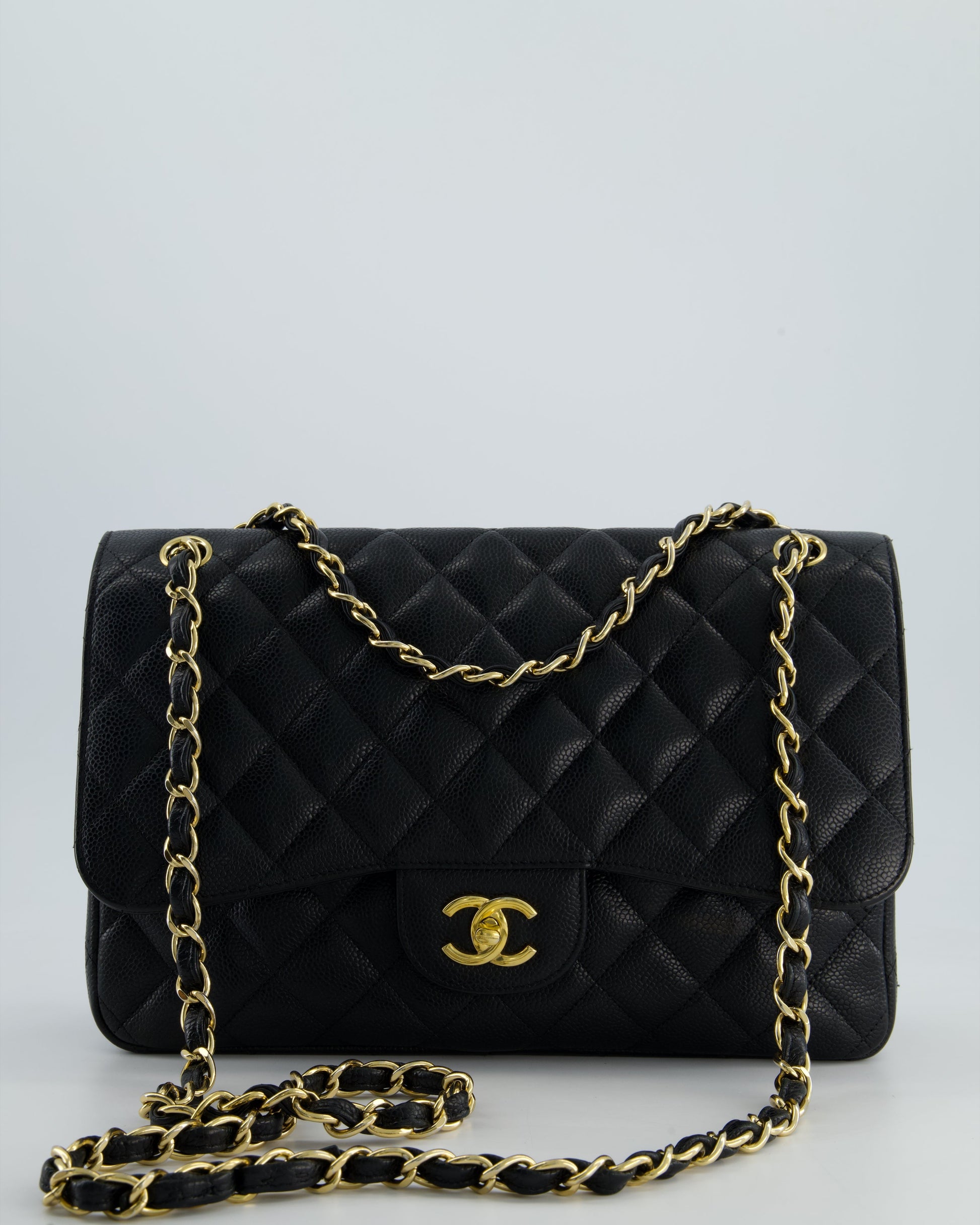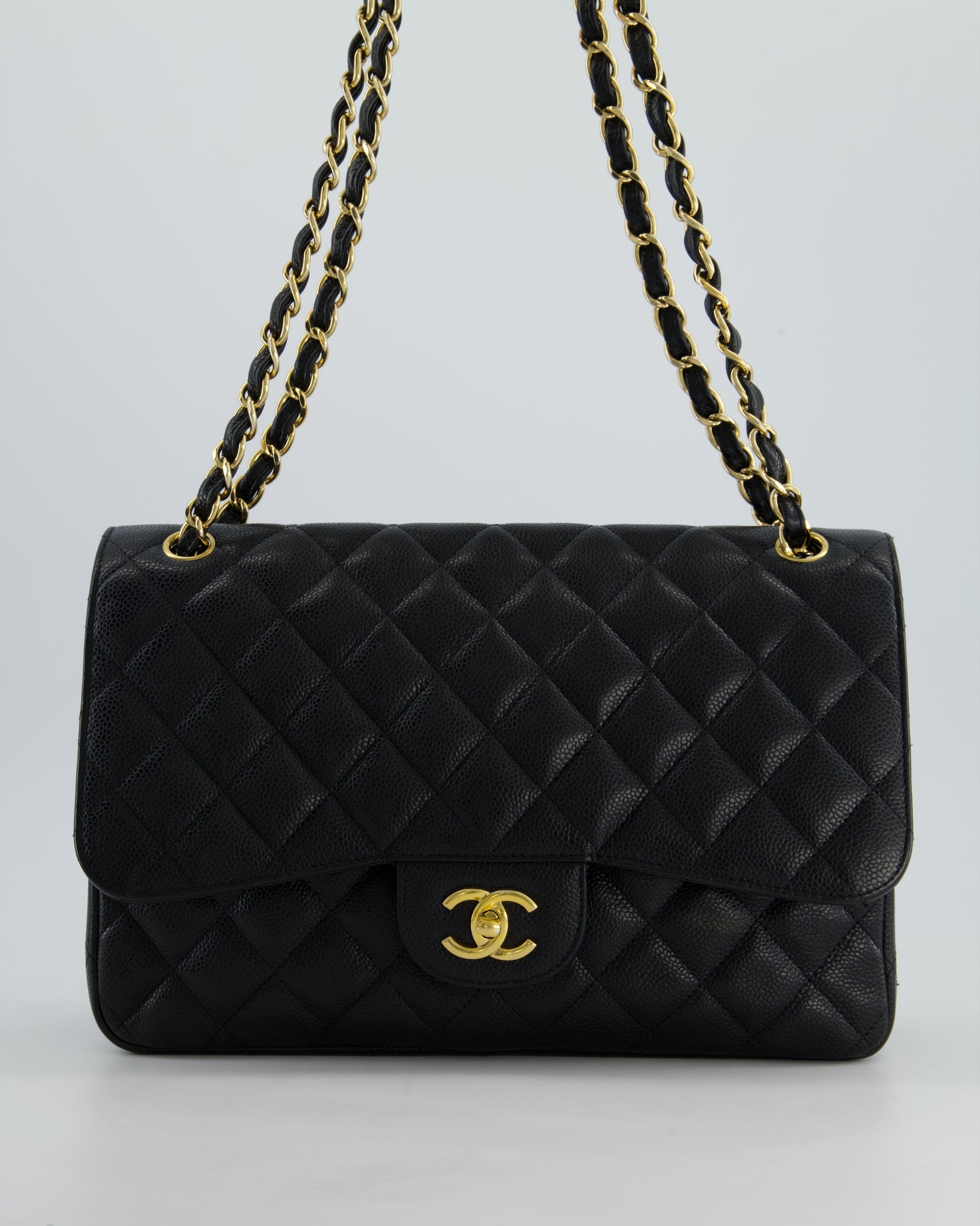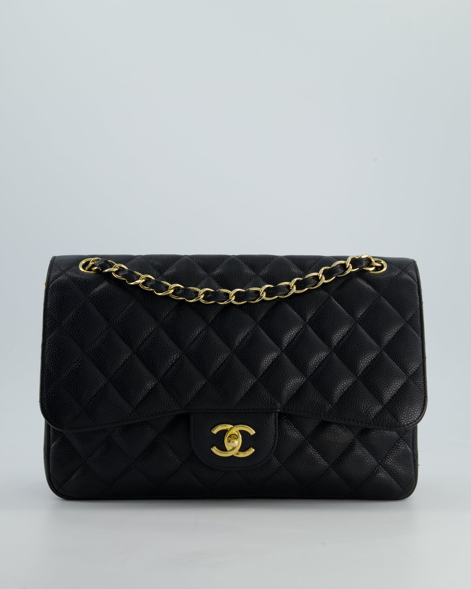 Chanel Black Jumbo Caviar Classic Double Flap Bag with Gold Hardware
