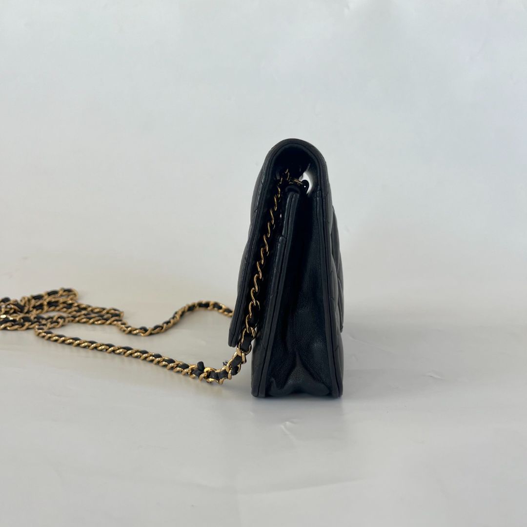 Chanel black quilted lambskin wallet on chain crossbody bag