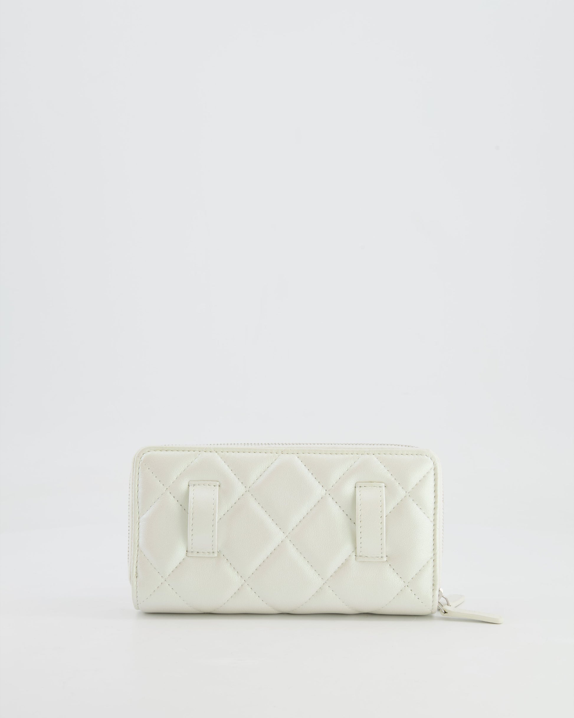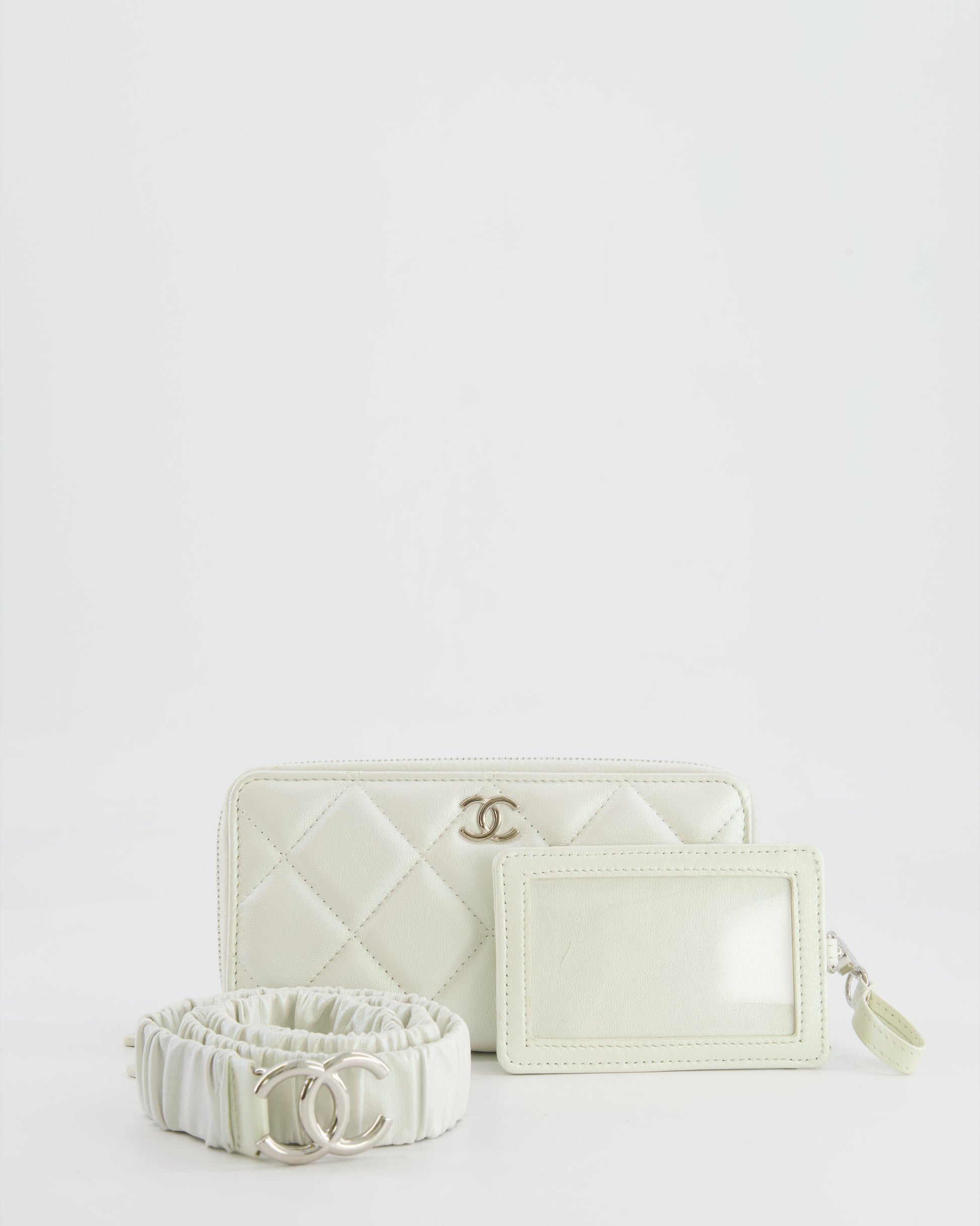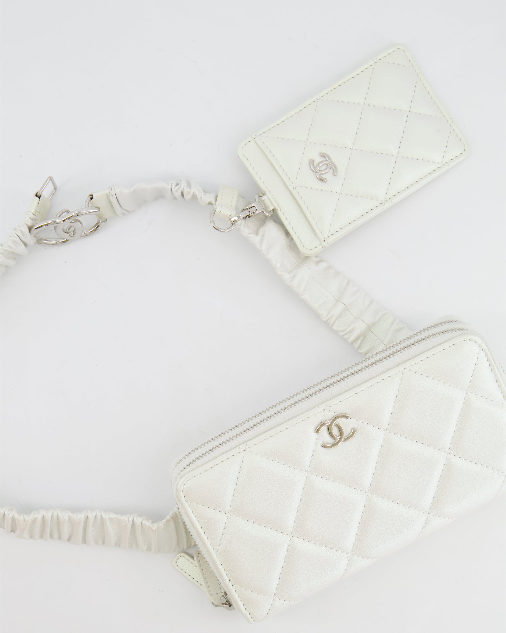 Chanel Coco Neige White Pearlescent Lambskin Belt Bag with Silver Hardware