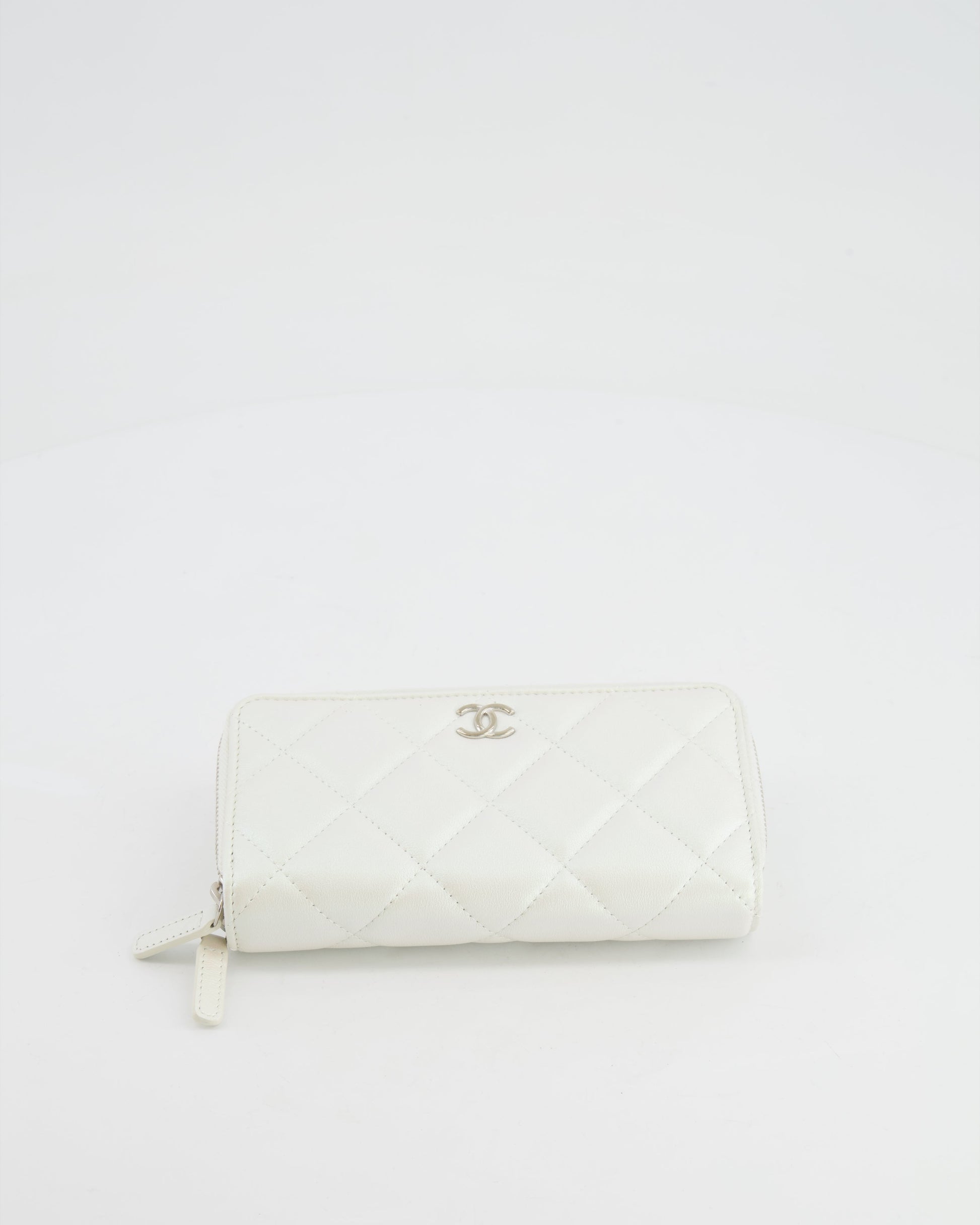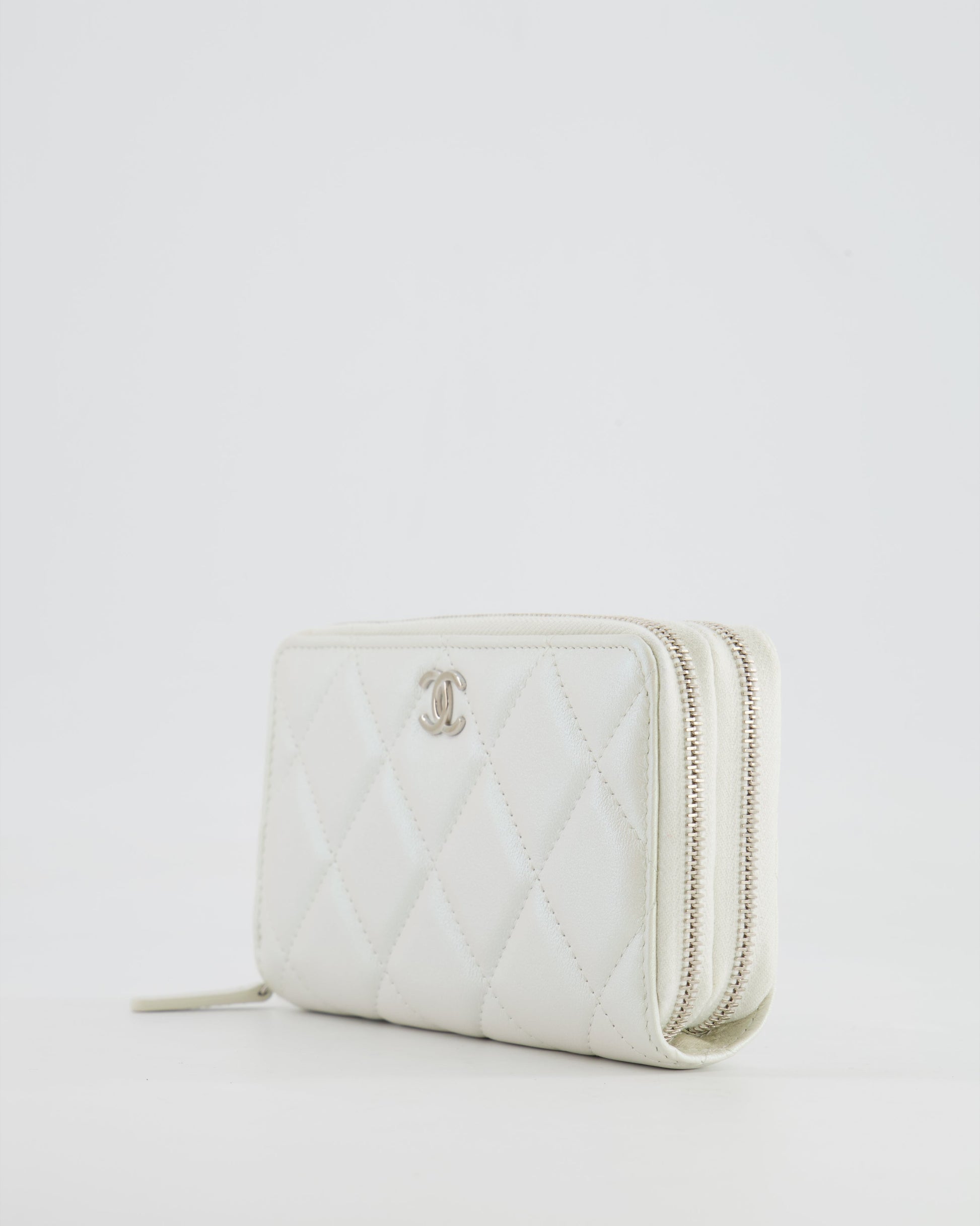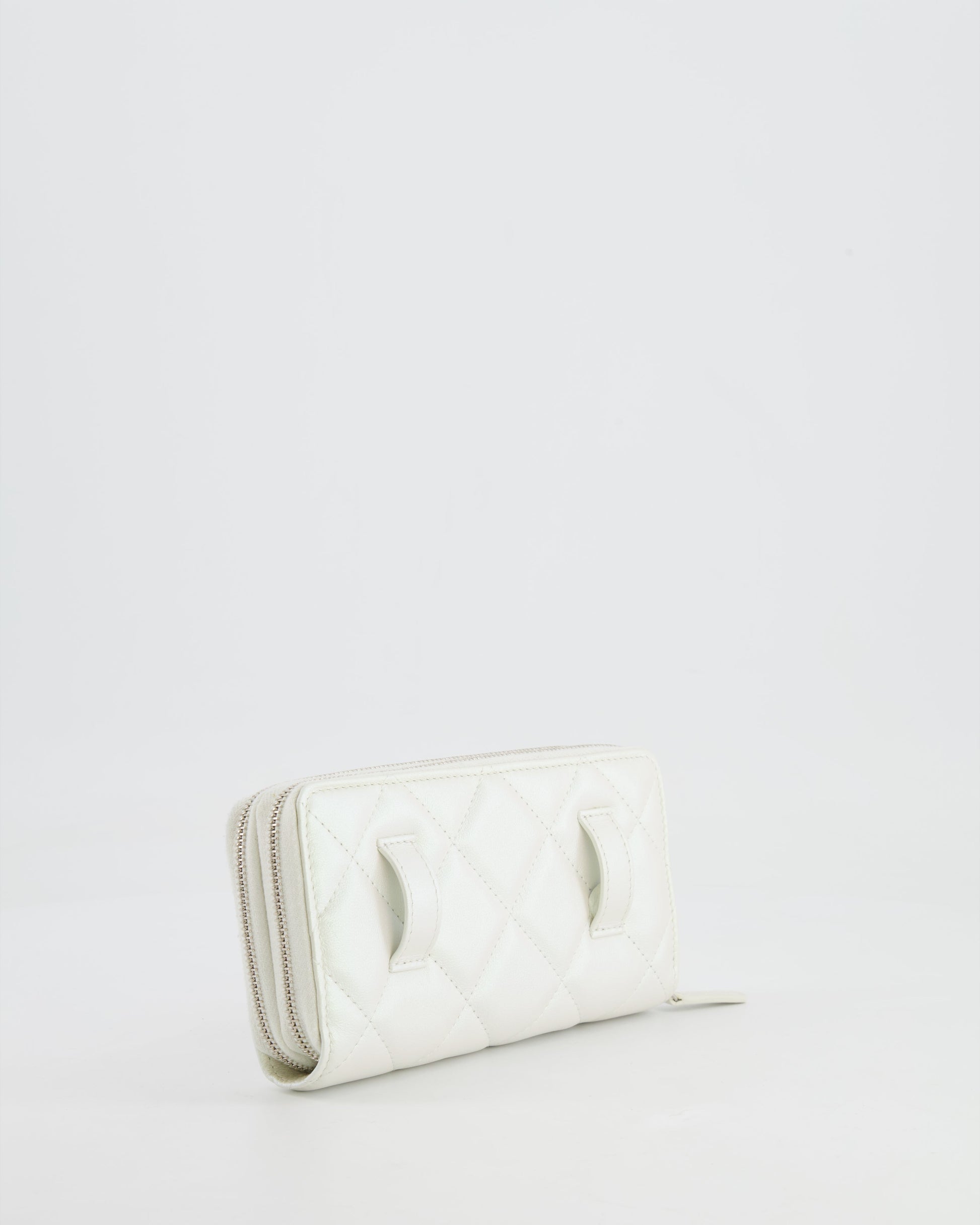 Chanel Coco Neige White Pearlescent Lambskin Belt Bag with Silver Hardware