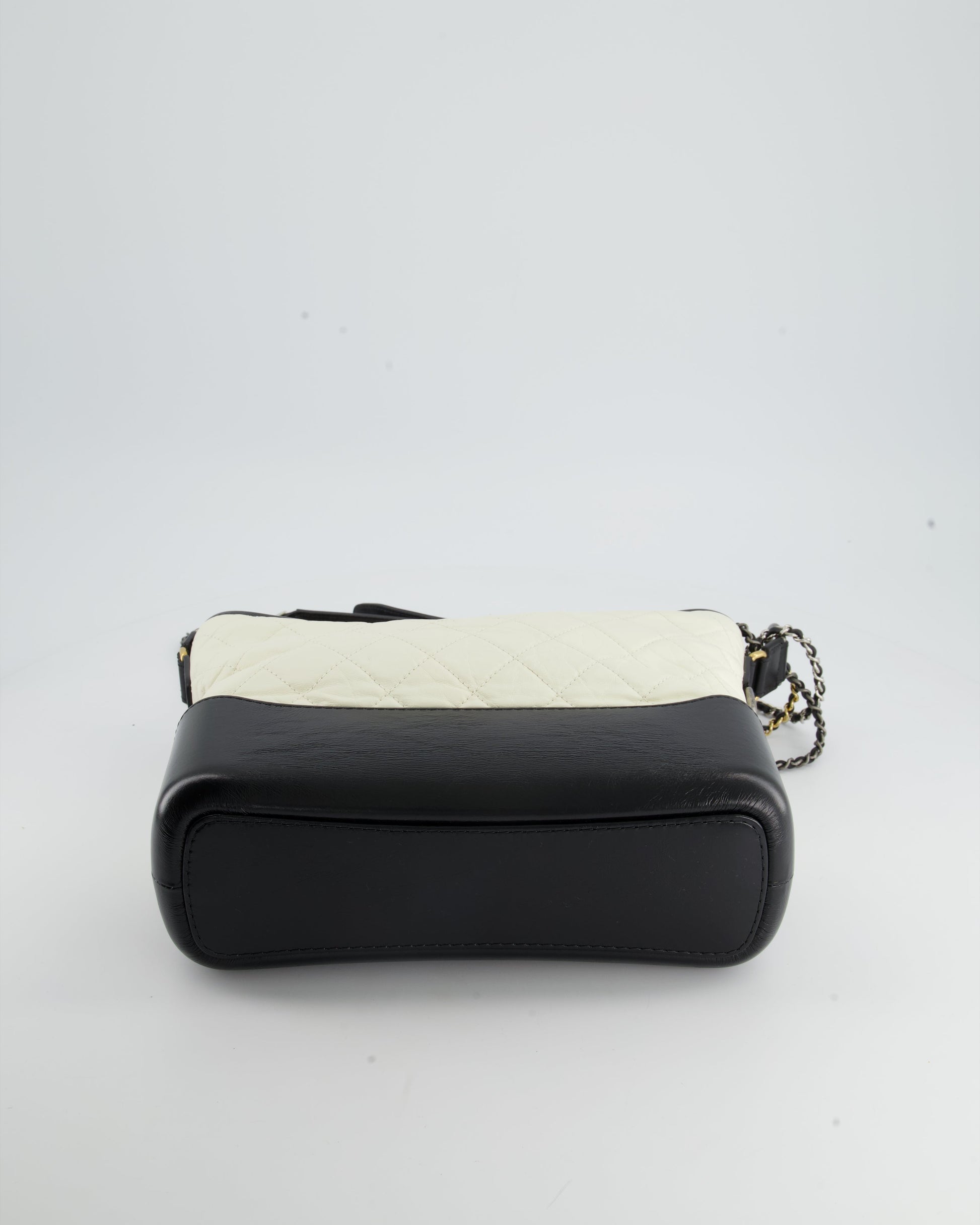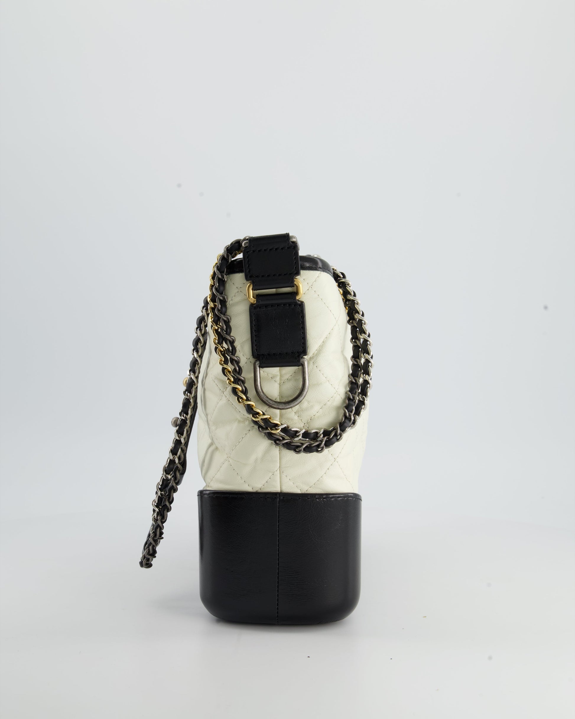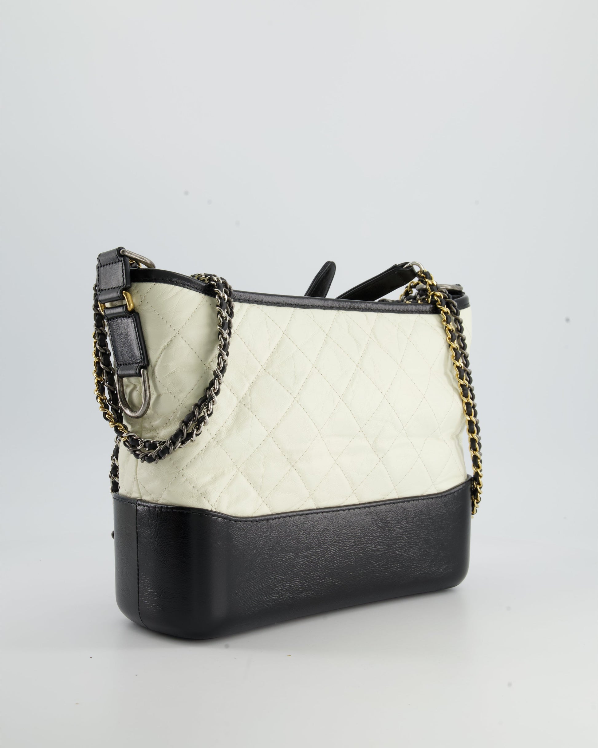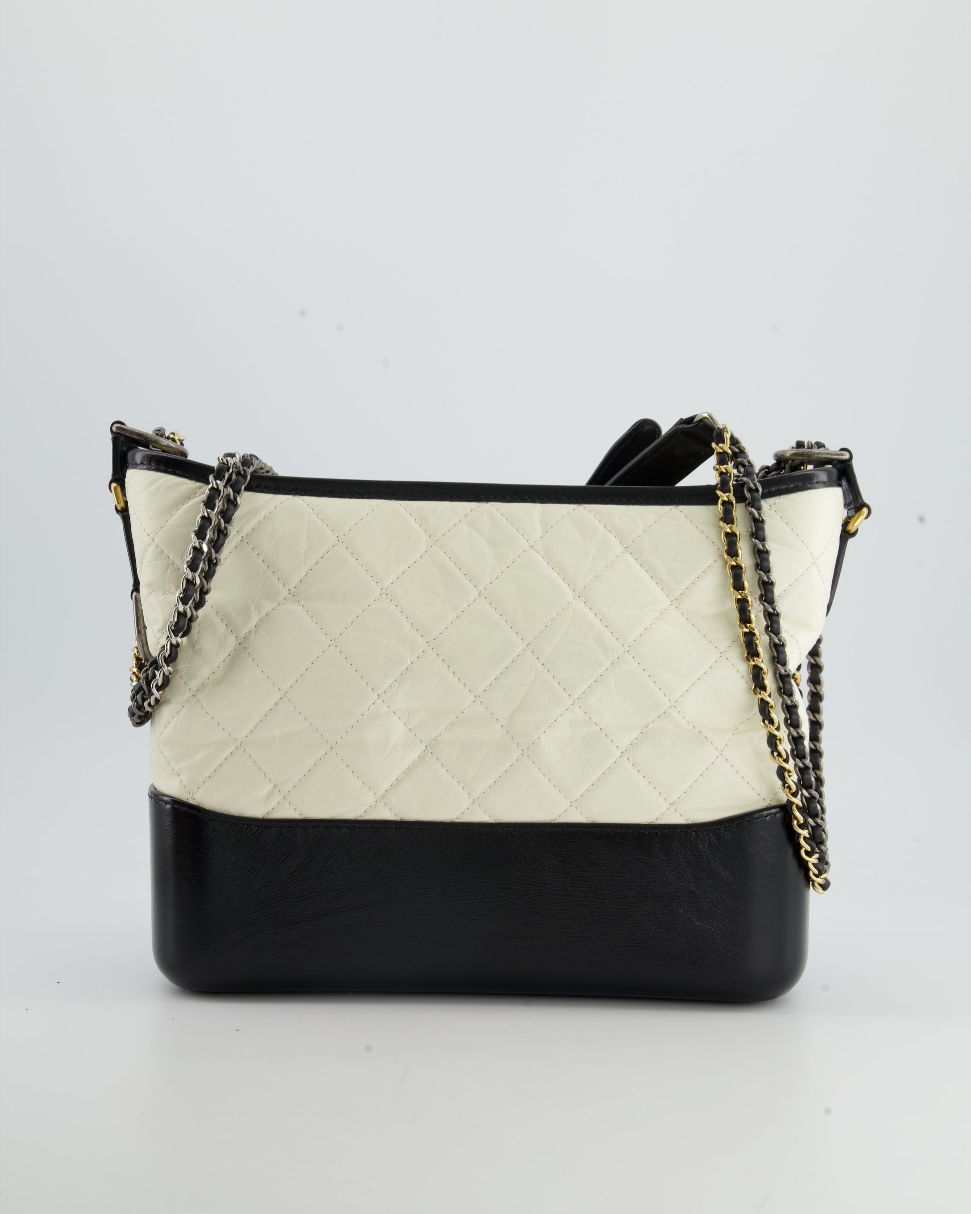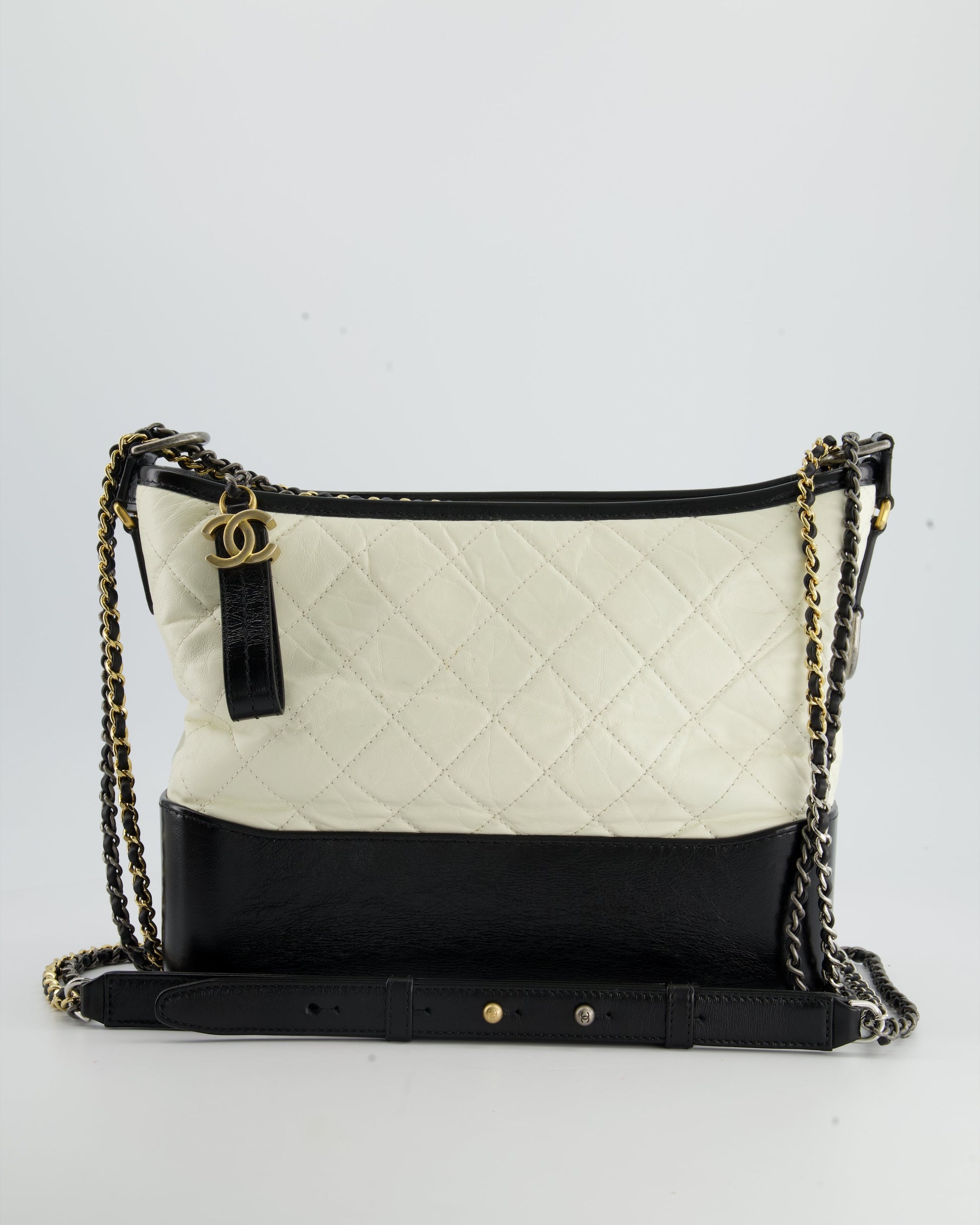Chanel White and Black Medium Gabrielle Bag in Aged Calfskin Leather with Mixed Hardware