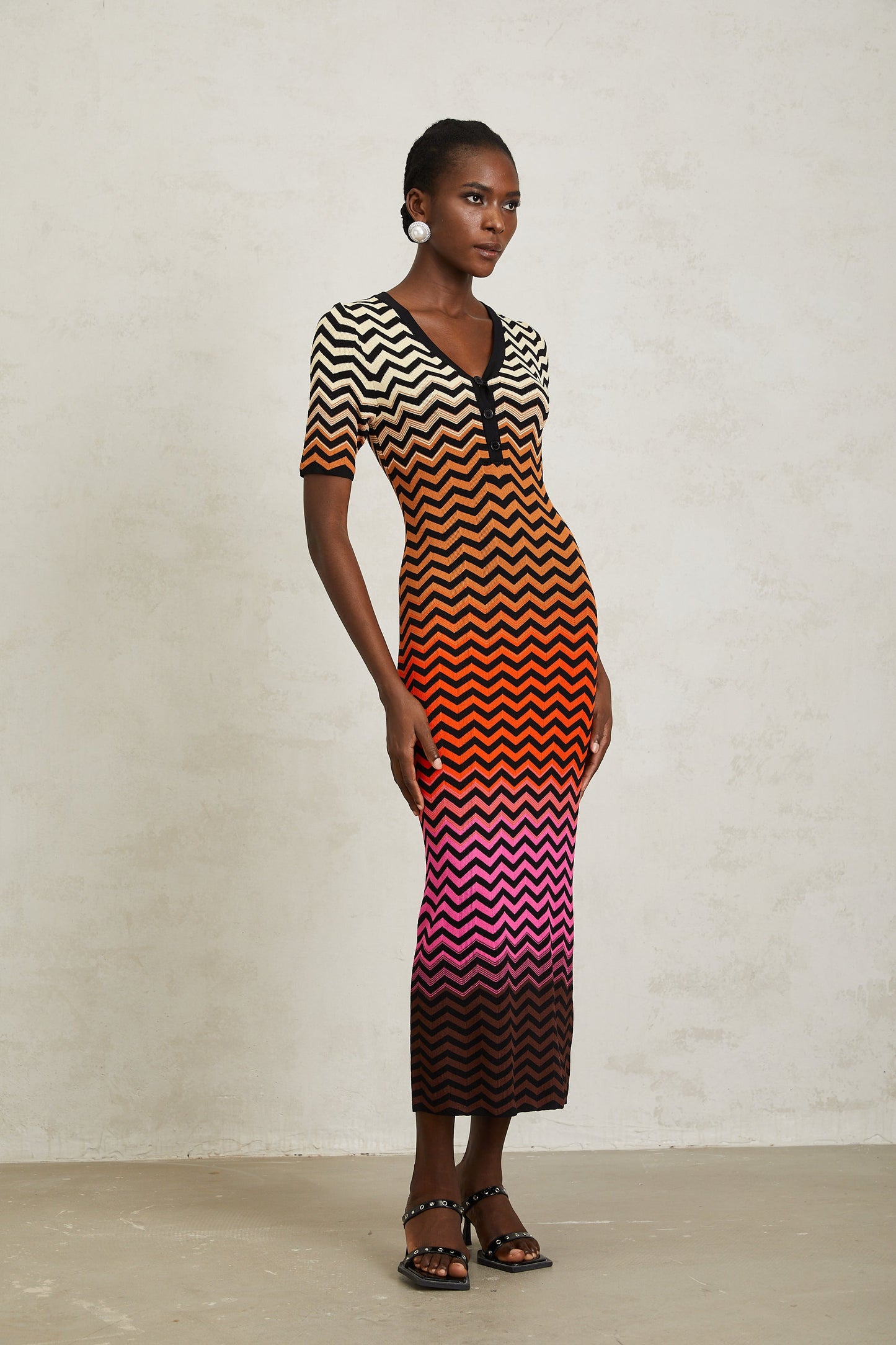 Charitina Brown Gradient Zigzag Knit Midi Dress
