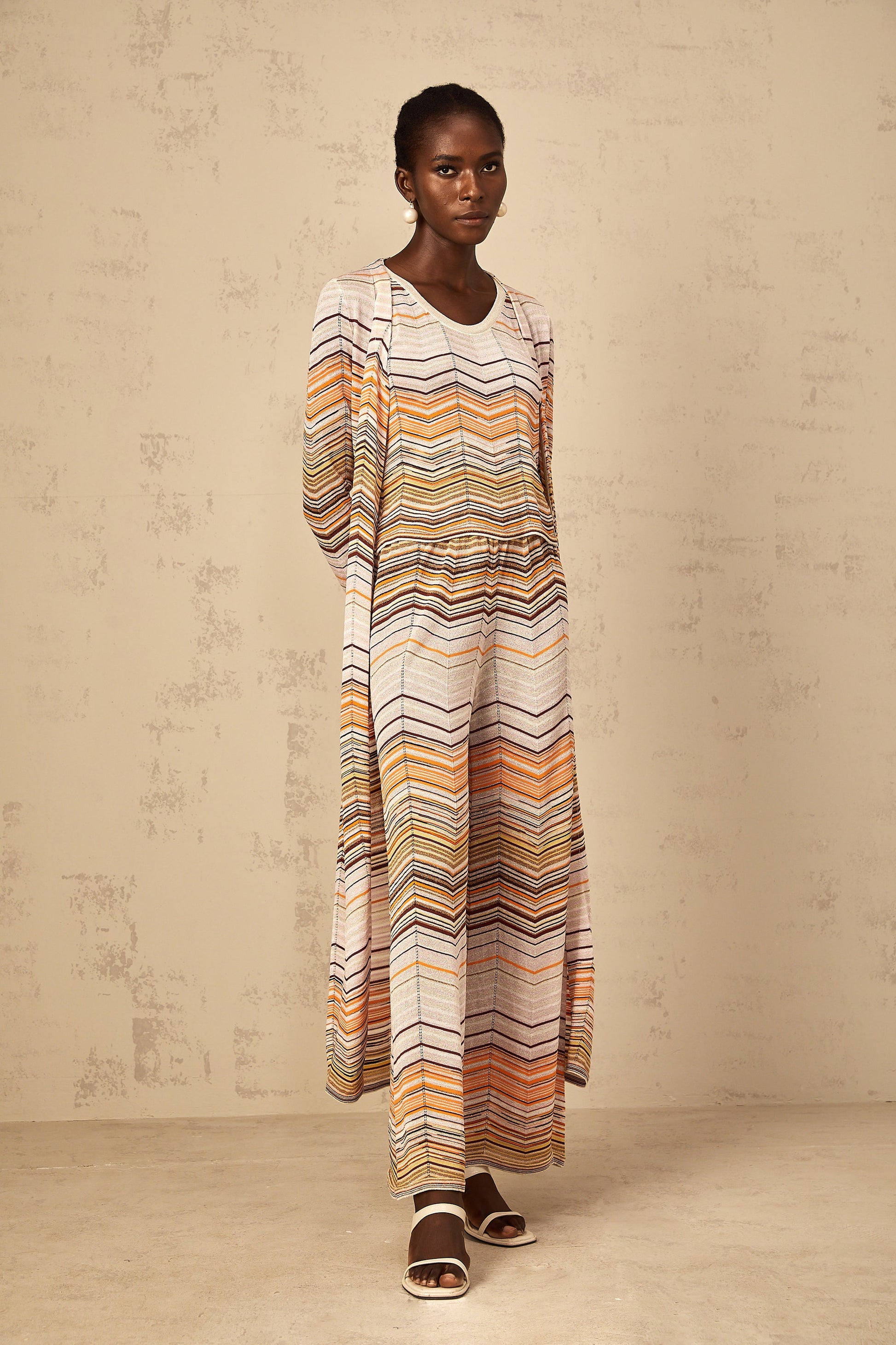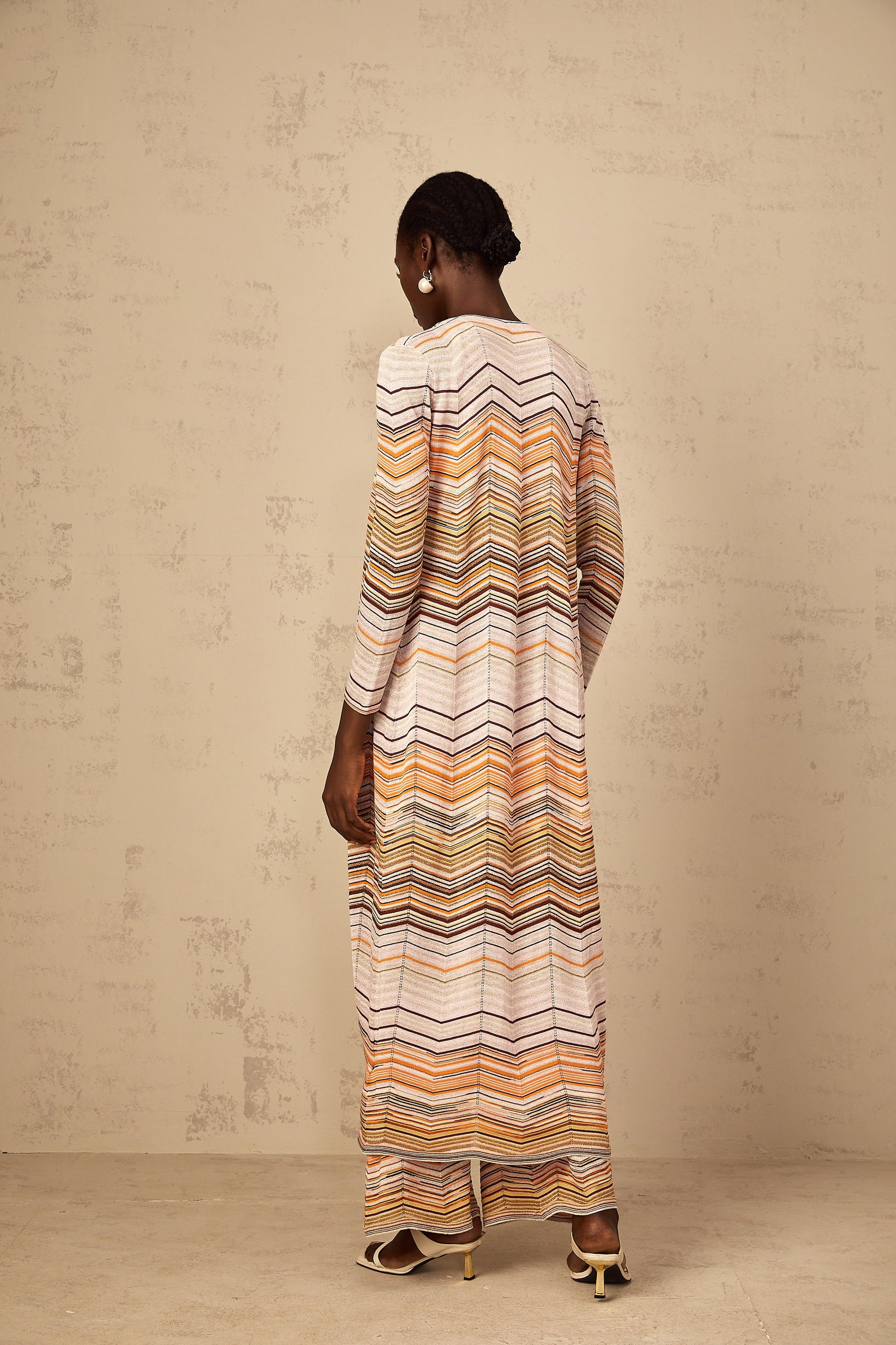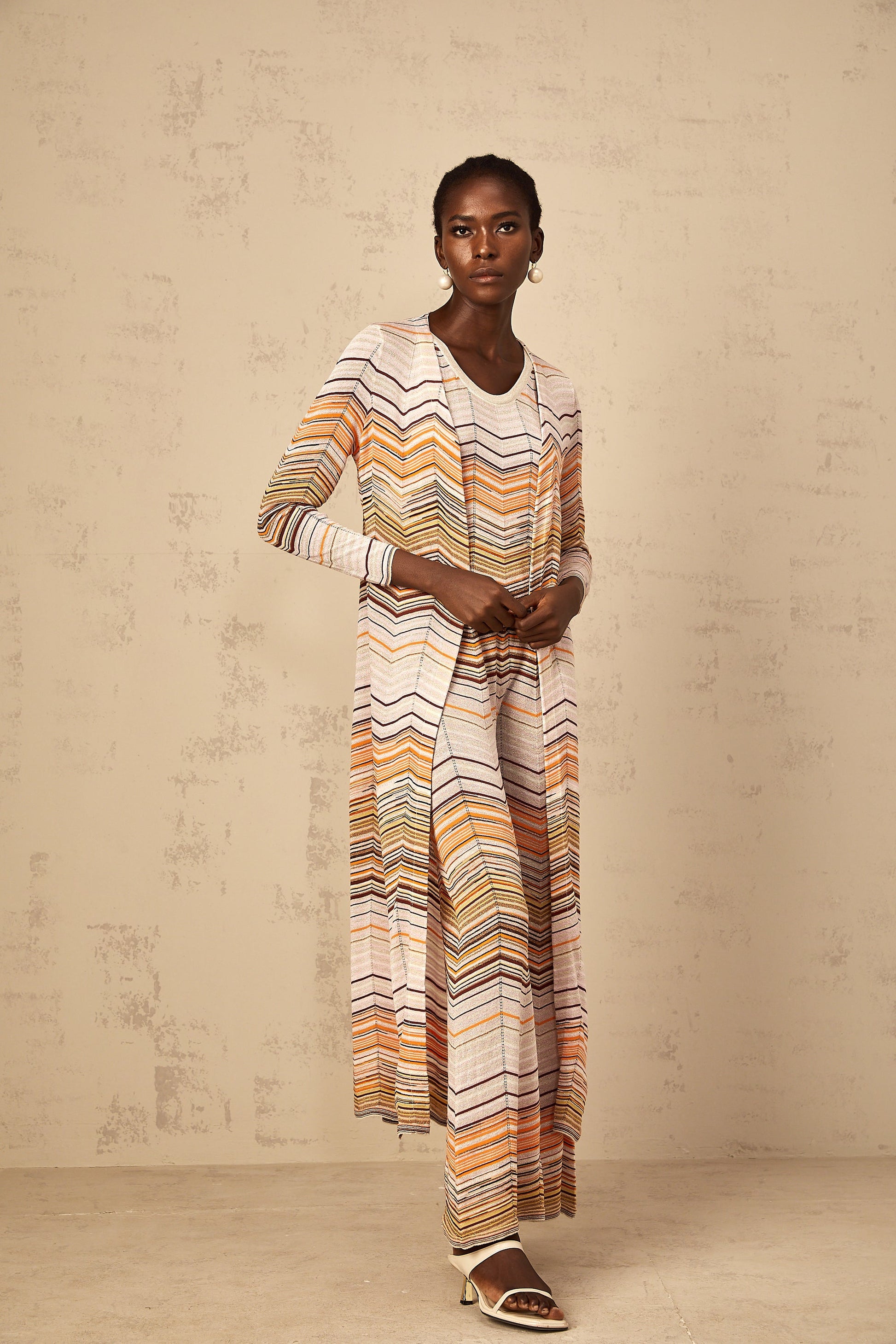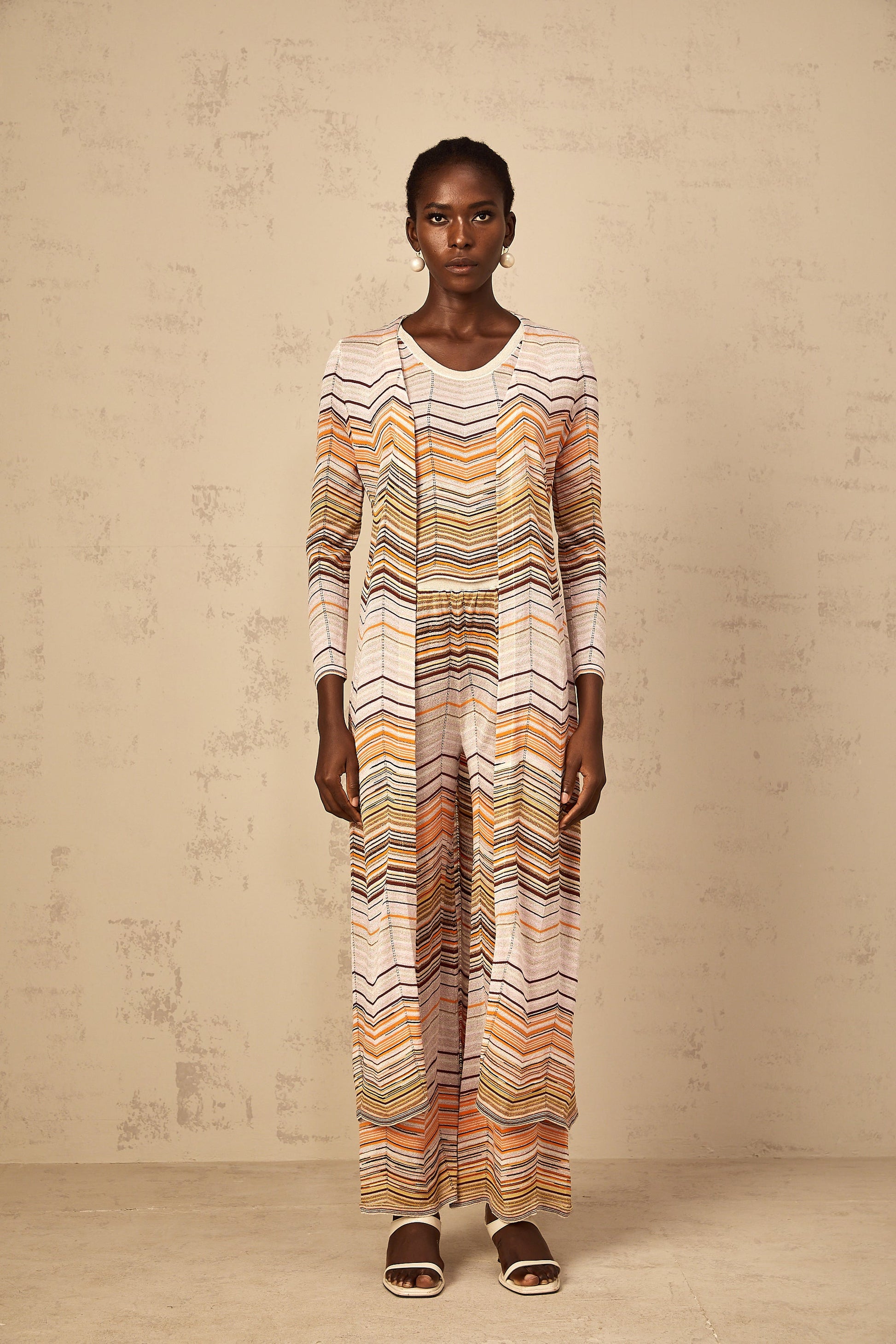 Chloé Neutral Striped Knit Long Cardigan