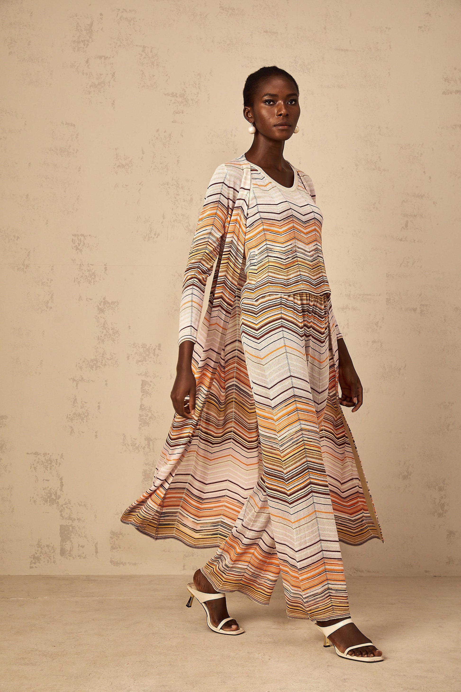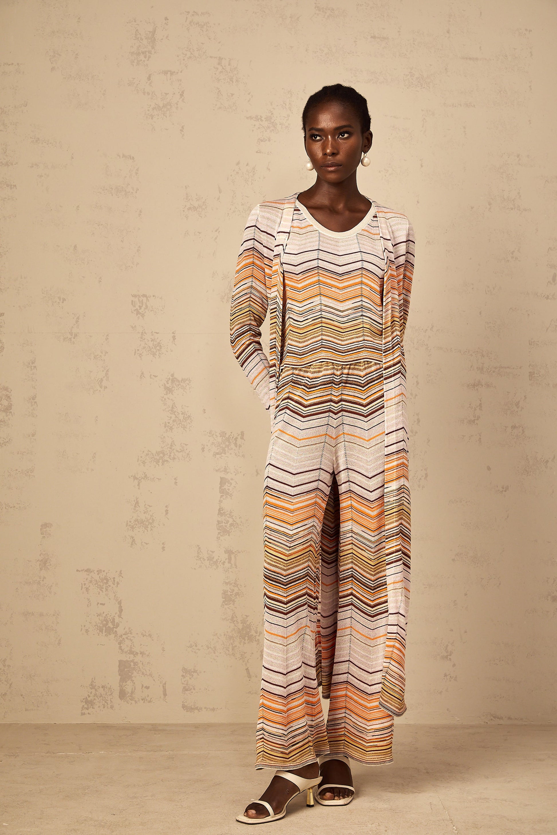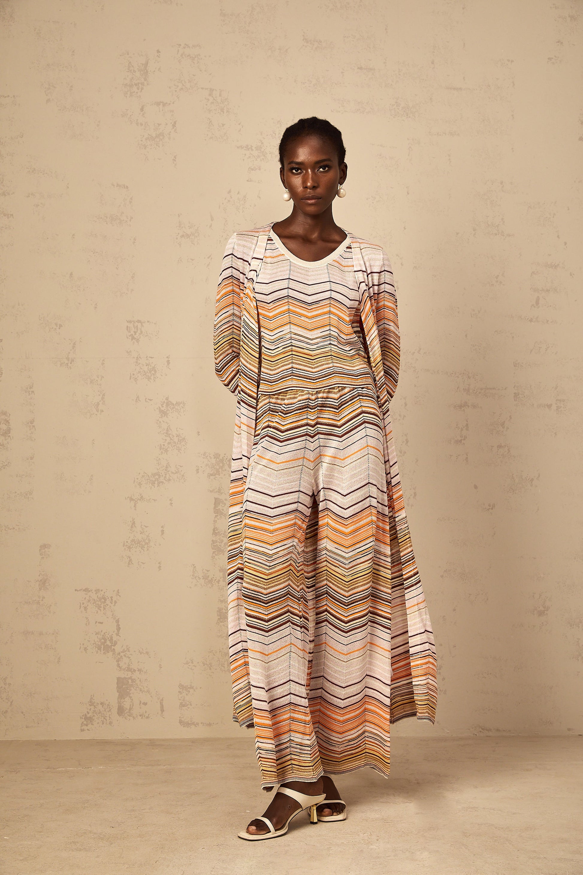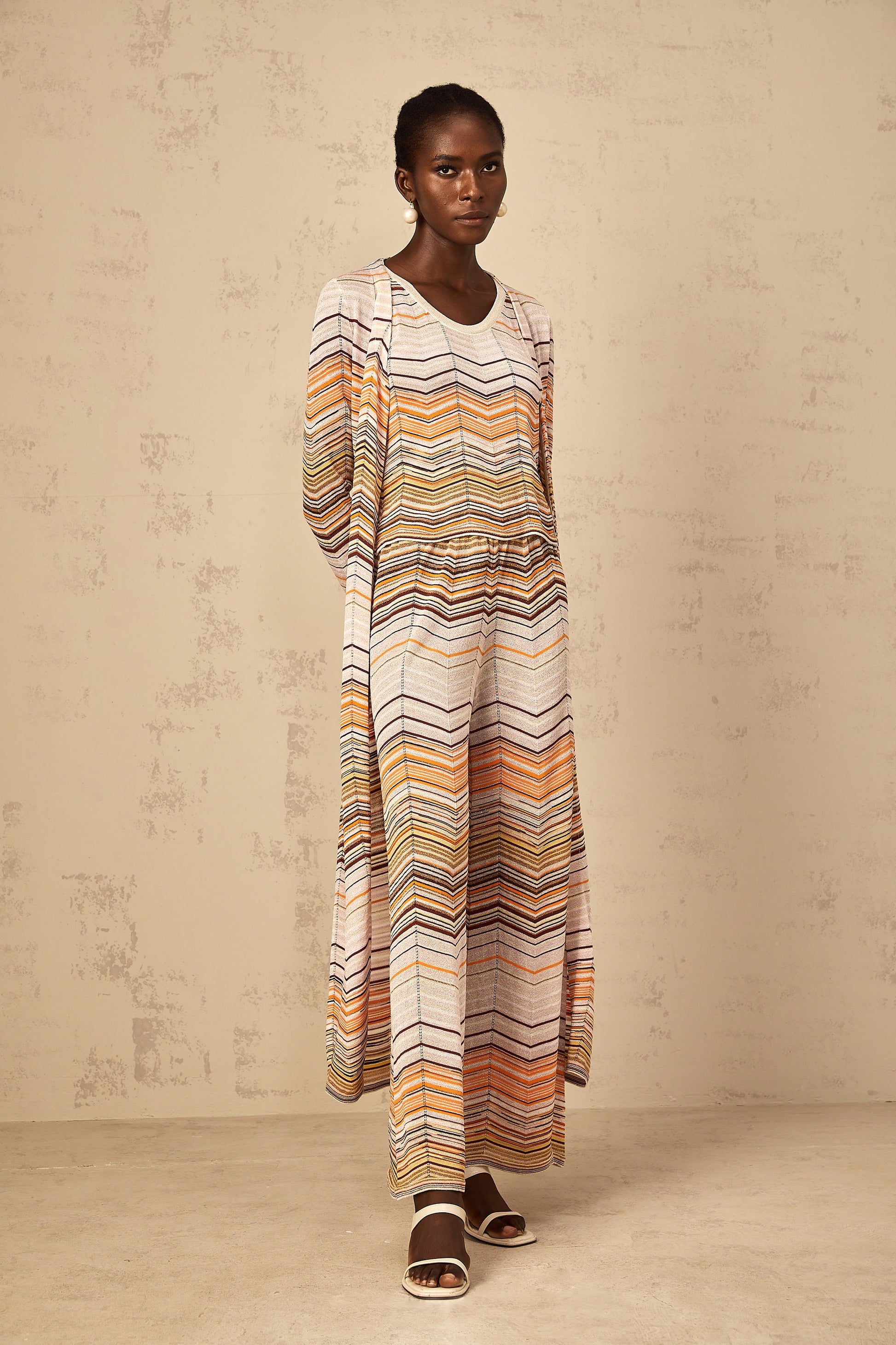 Chloé Neutral Striped Knit Long Cardigan