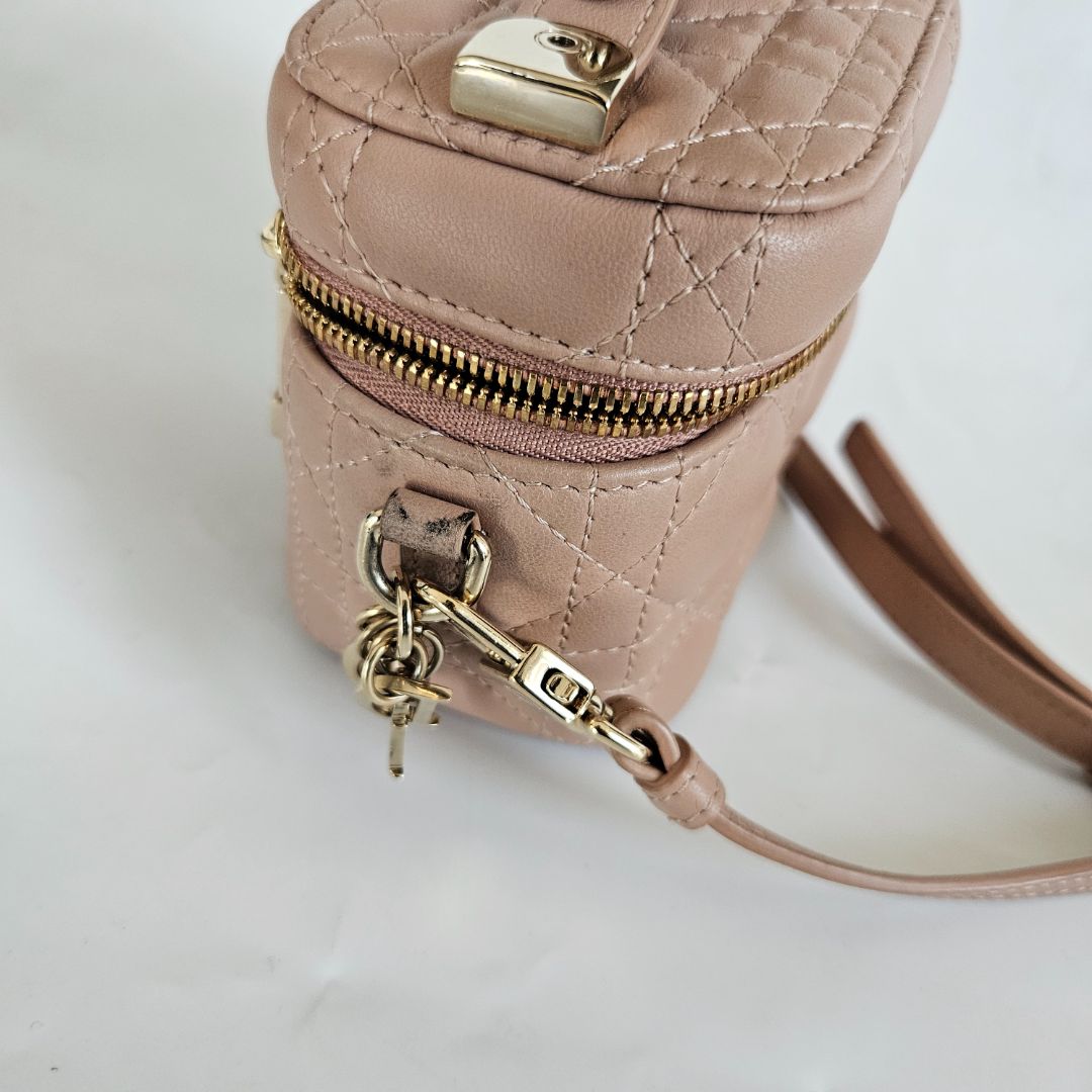 Christian Dior Dusty Pink Leather Cannage Micro Vanity Shoulder Bag