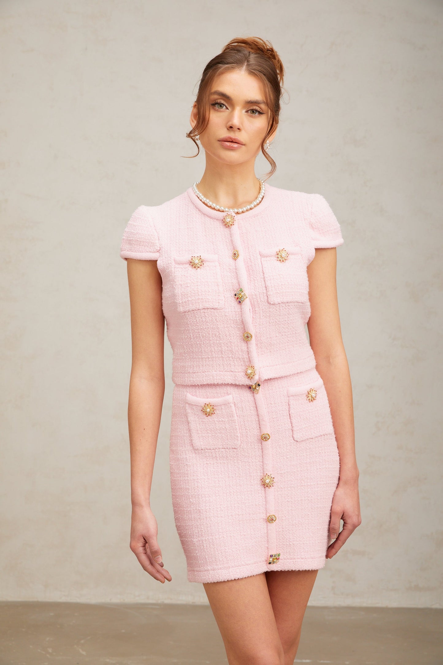 Christina pink knit top & skirt matching set