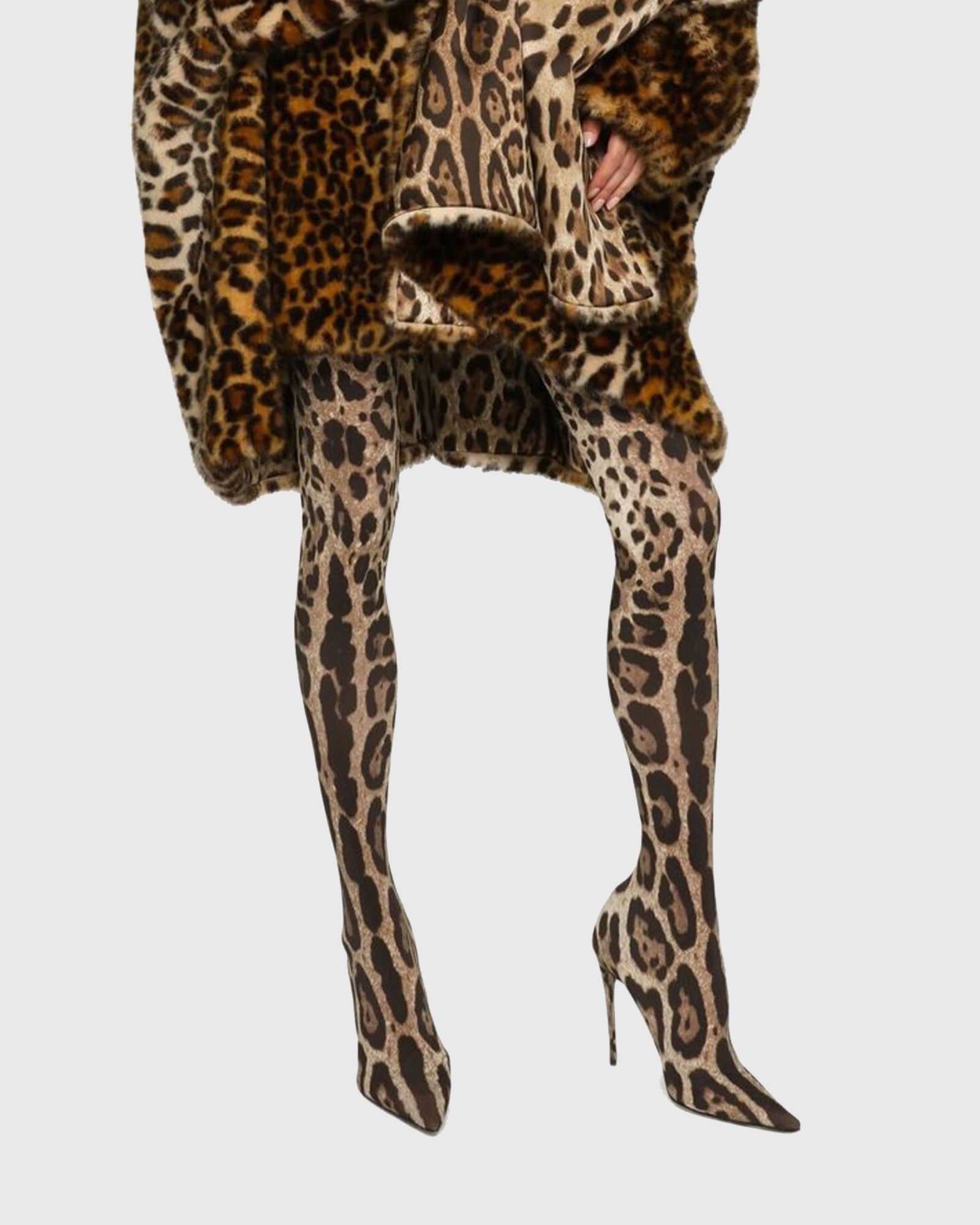 Get ready to make a fierce statement with the Claretta Leopard Print? Over The Knee Boots! These boots are not only stylish with their leopard print design, but also functional with their over the knee length. Made with durable polyester, these boots will keep you looking and feeling confident all day long. Elevate your outfit and unleash your inner fierce with these must-have boots.
