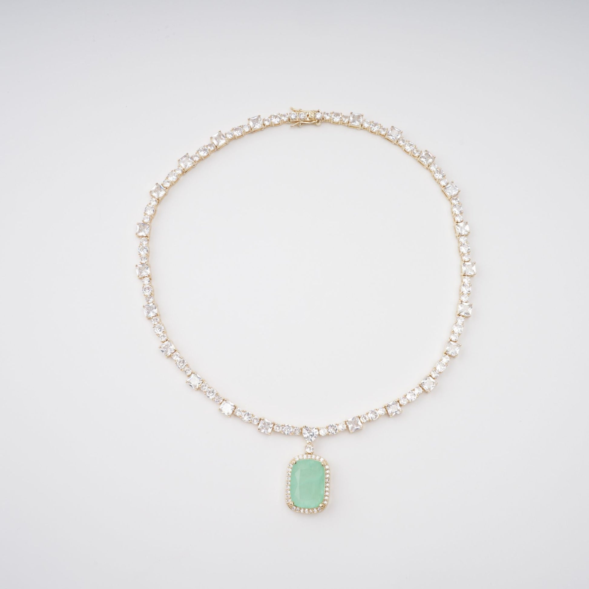 Clémence Gold Tone Oval Gemstone Pendant Necklace