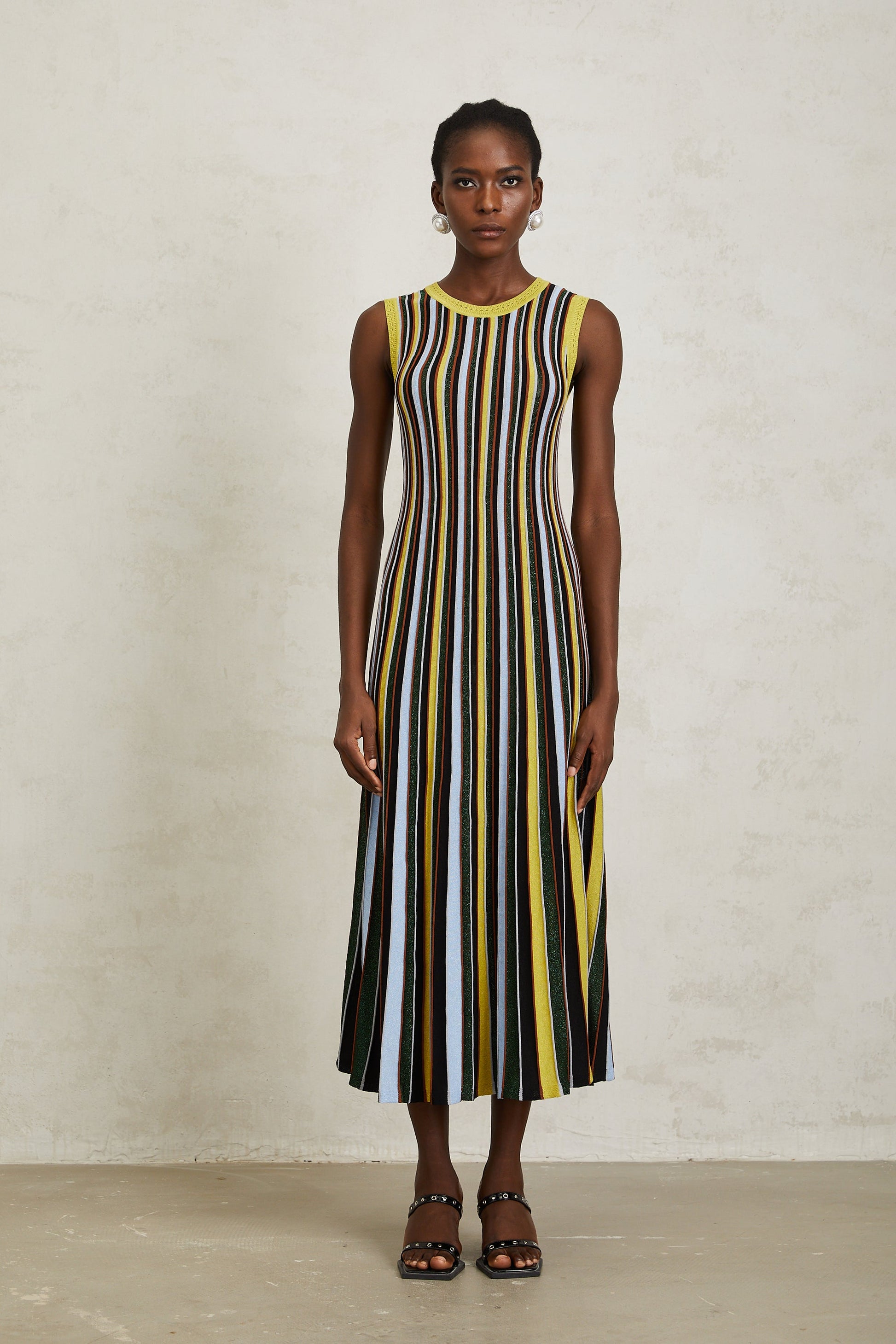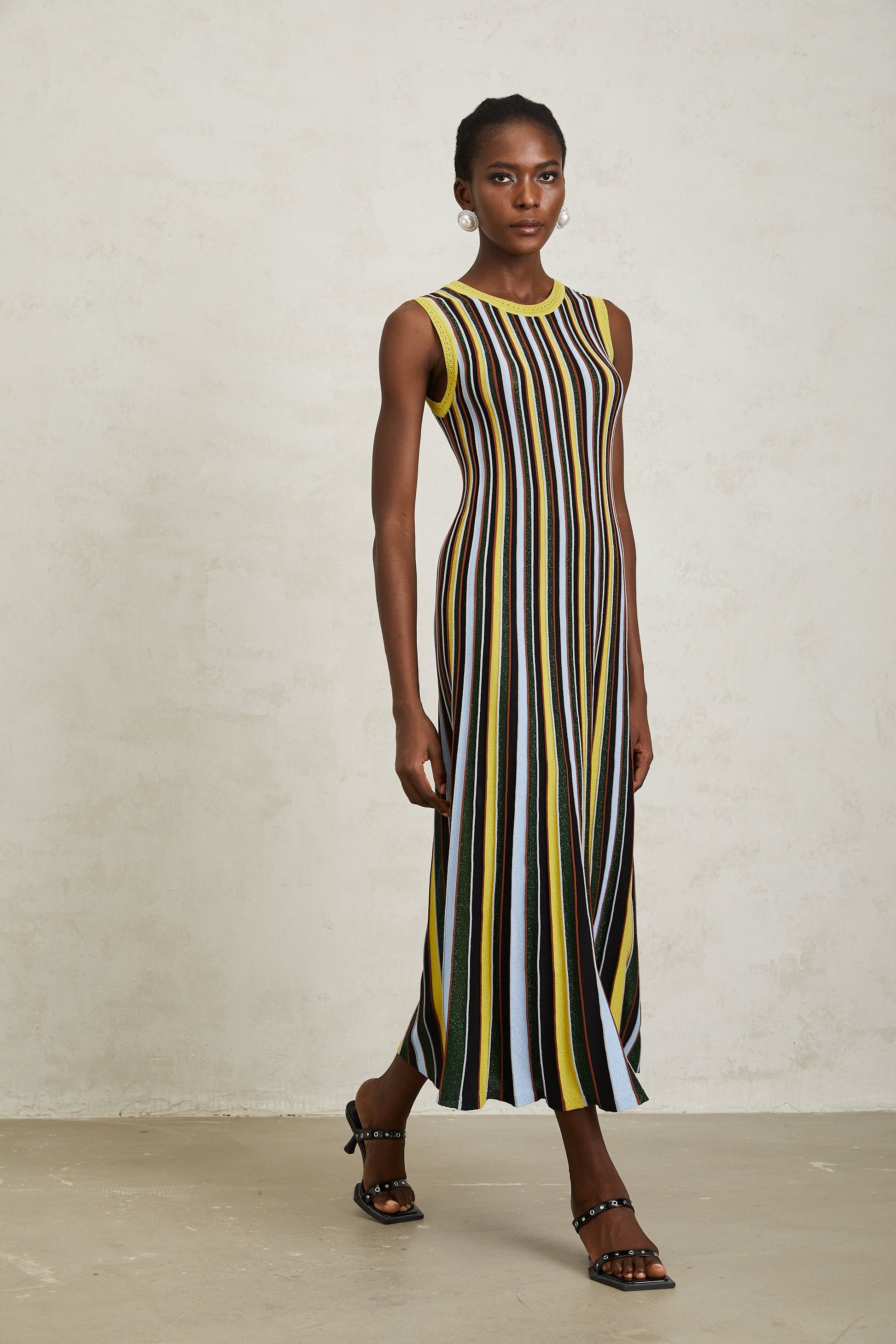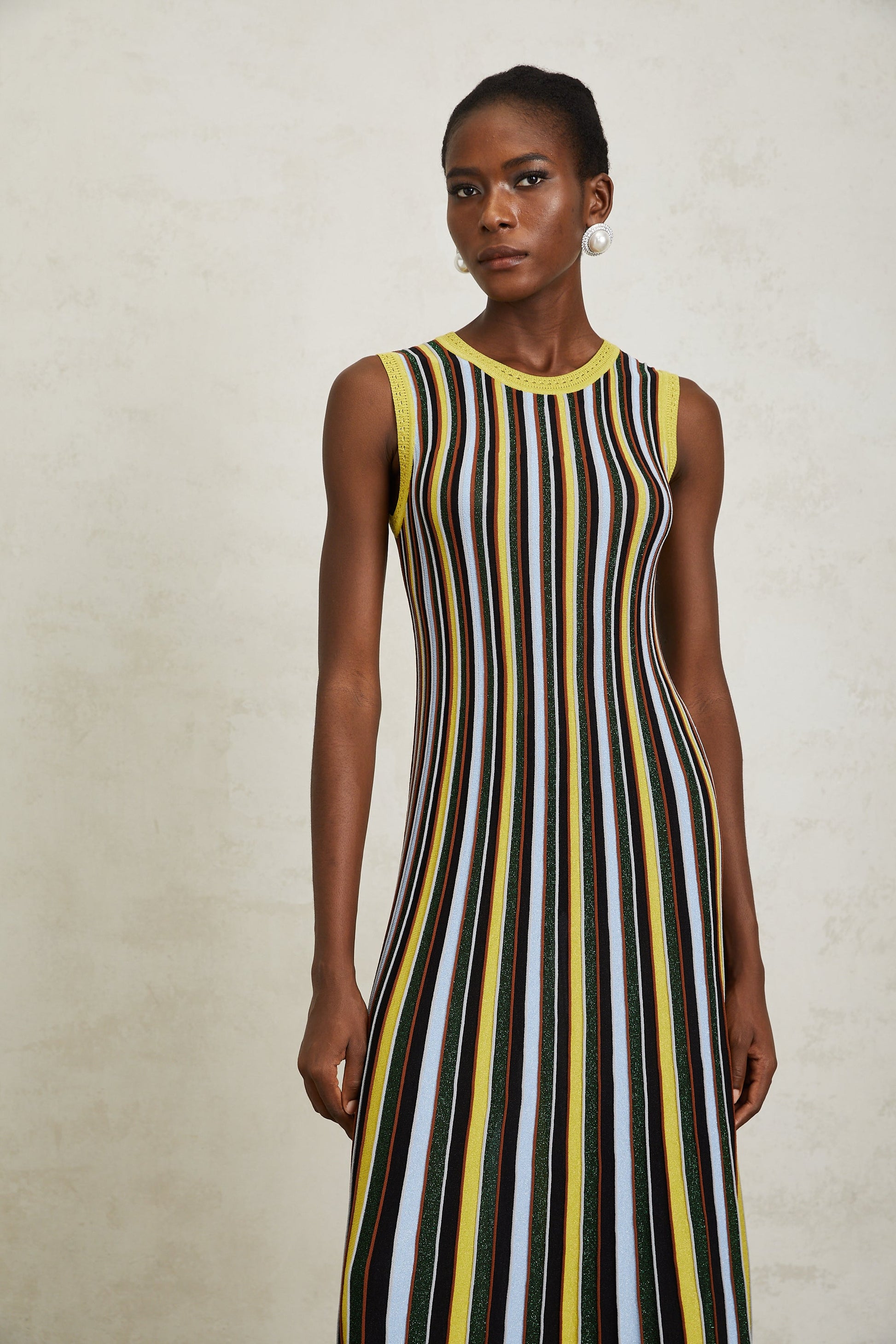 Clémence Yellow Vertical Striped Knit Midi Dress