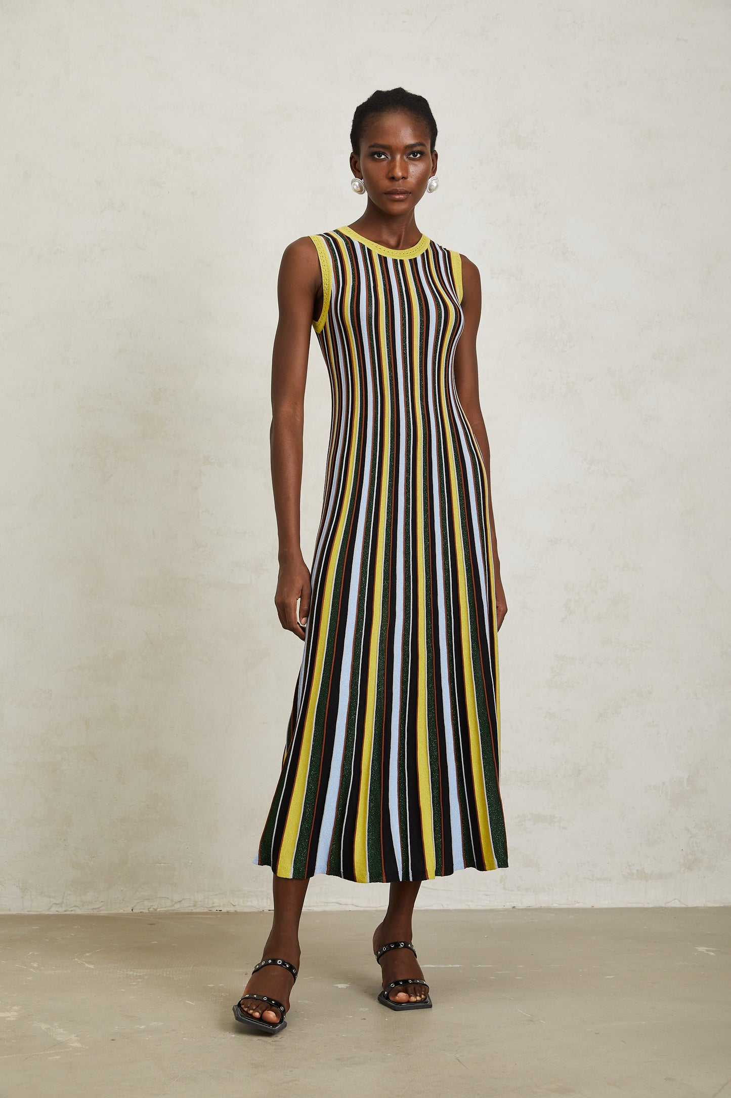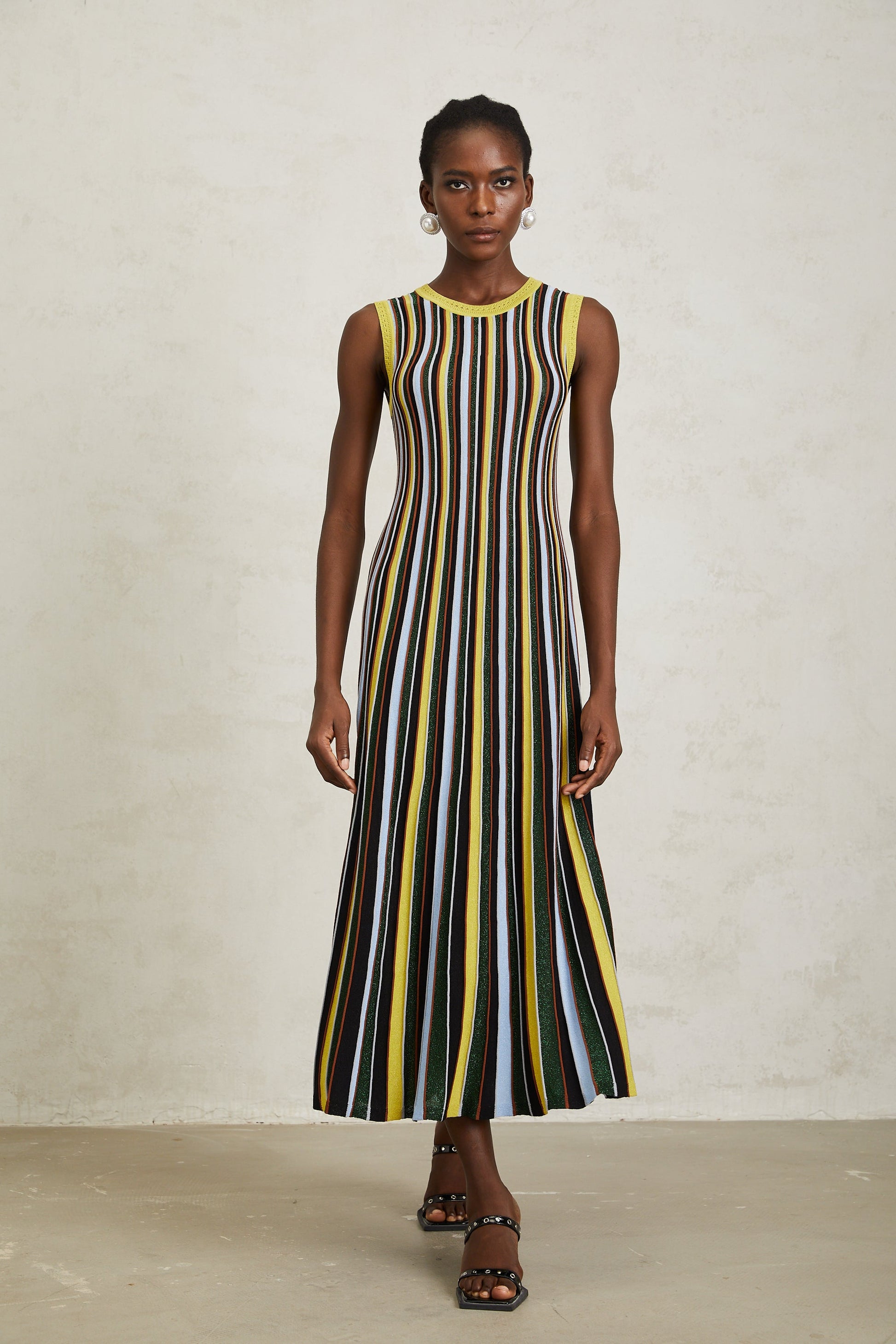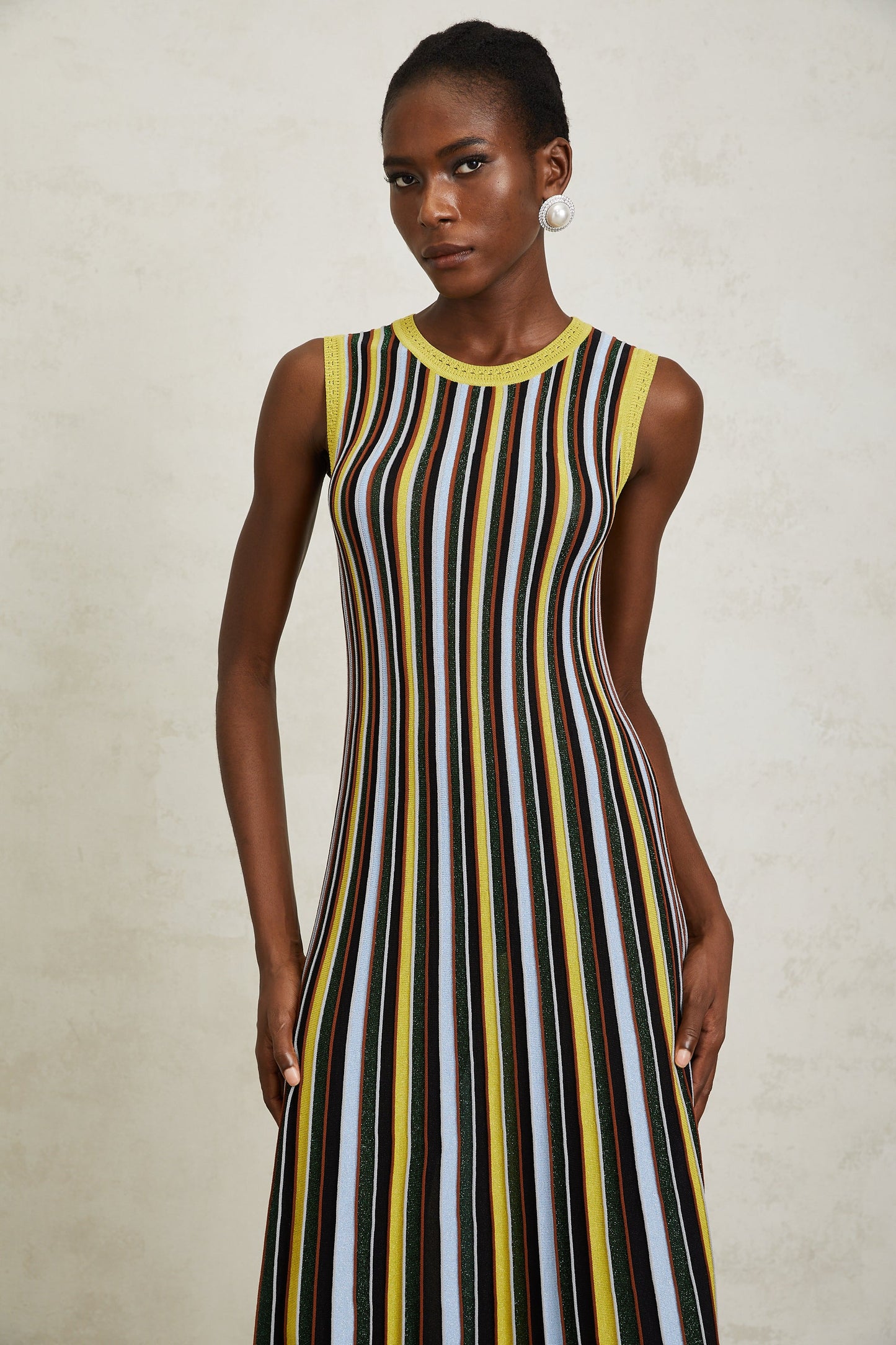Clémence Yellow Vertical Striped Knit Midi Dress