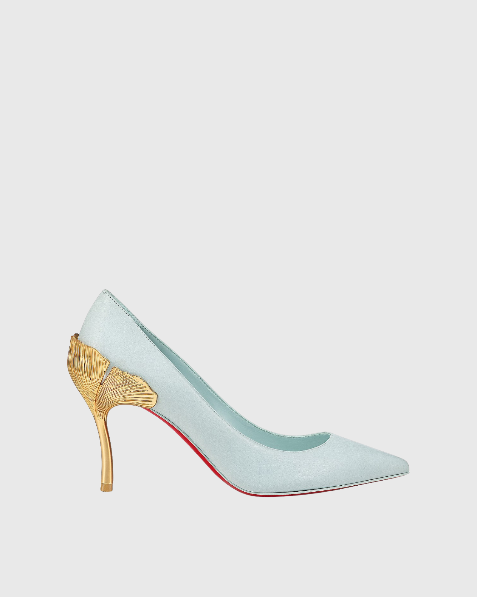 Cleo Metal Leaf Heels In Mint Blue