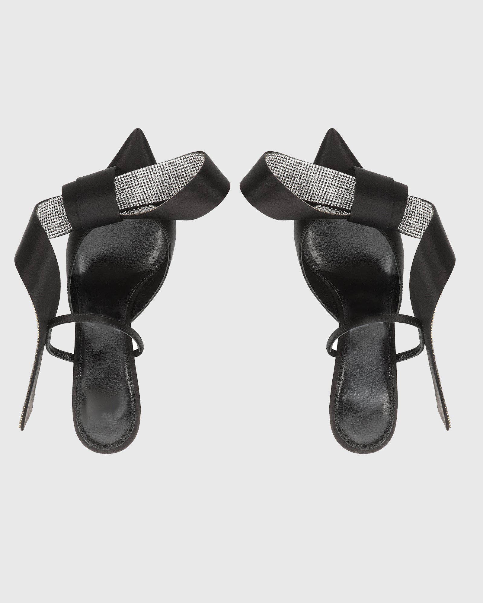 Crocifissa Bow Satin Mules In Black