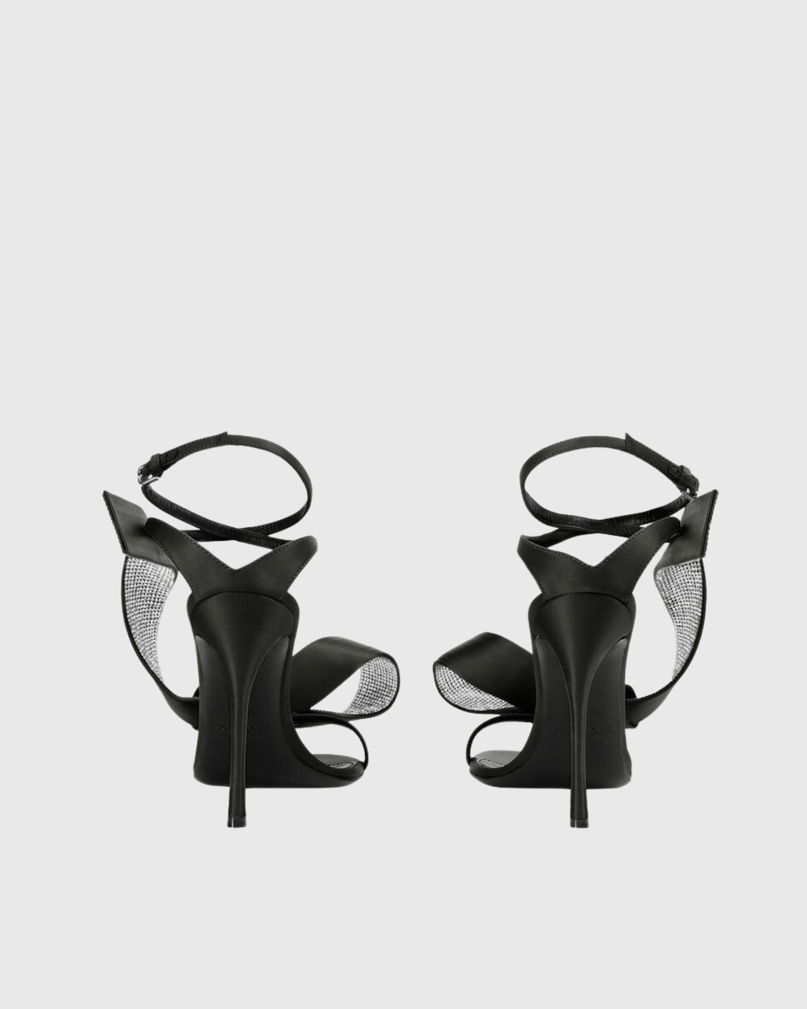 Crocifissa Spiral Rhinestone Bow Strap Sandals In Black