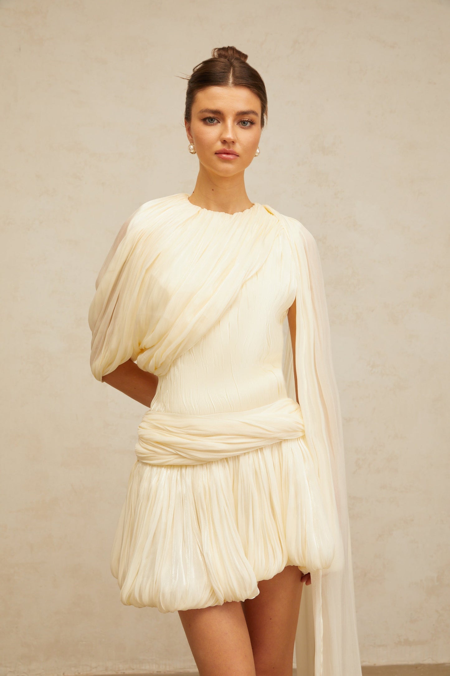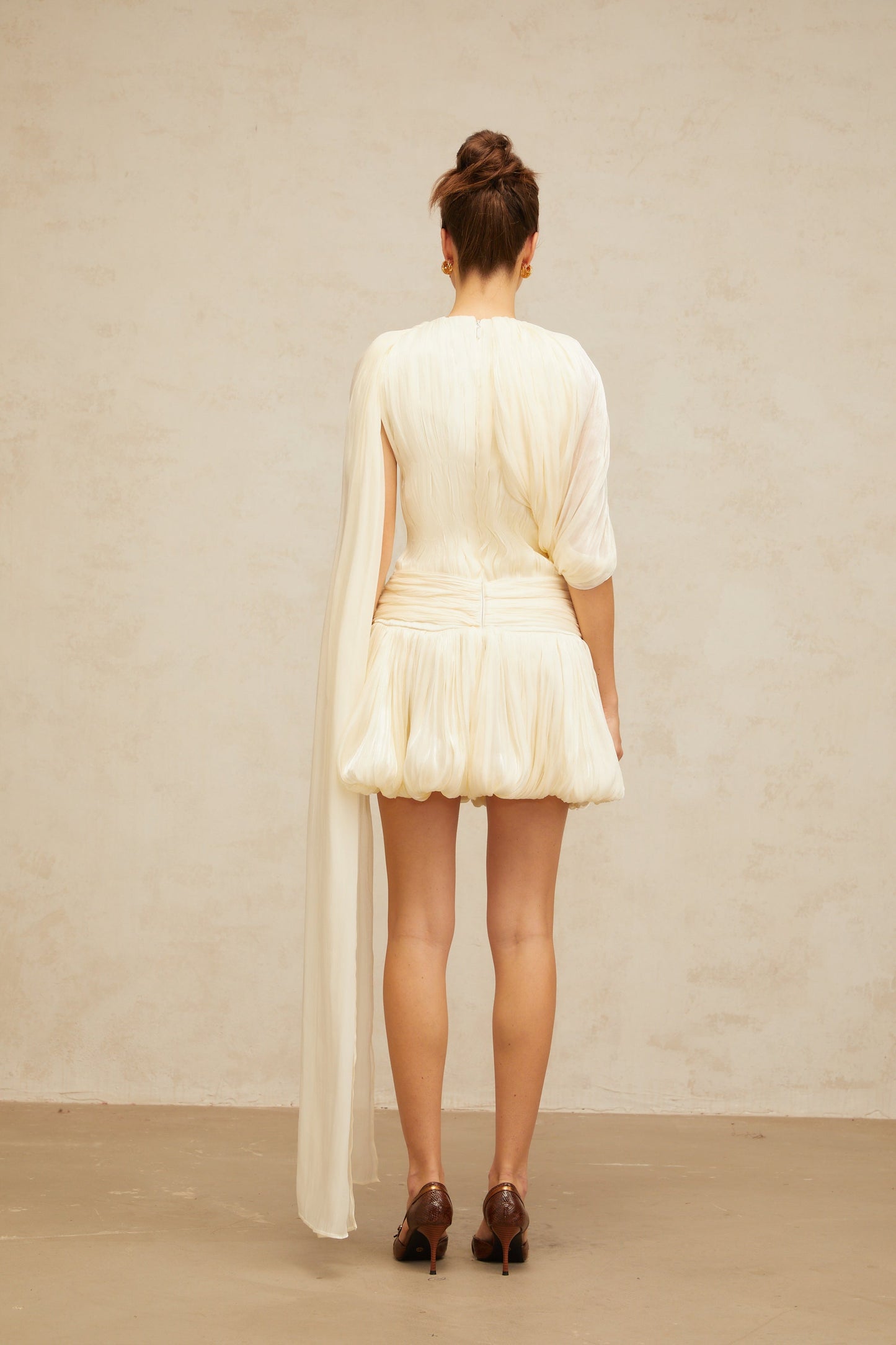 Cyrielle Pleated Mini Dress with Ribbon Design Accent
