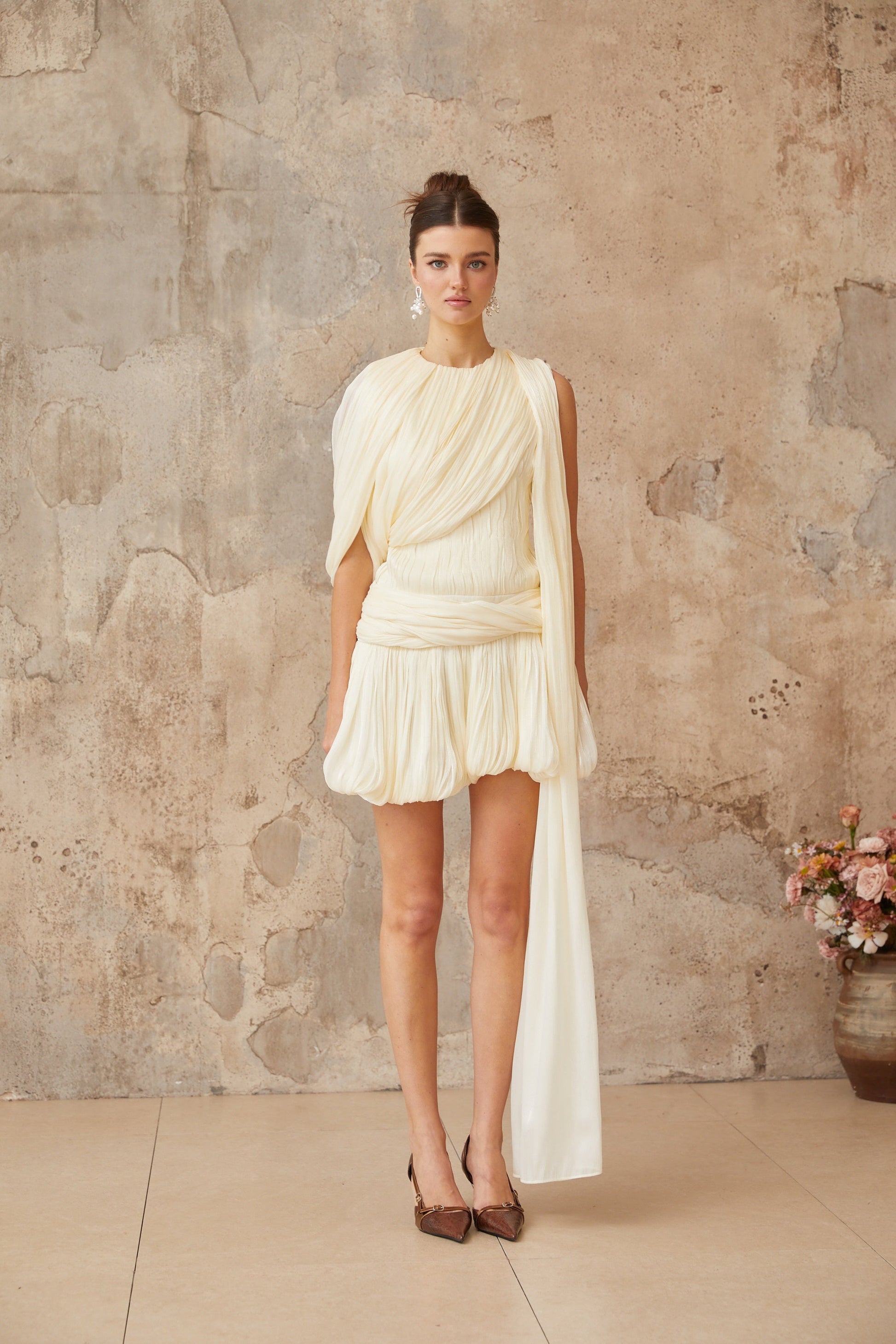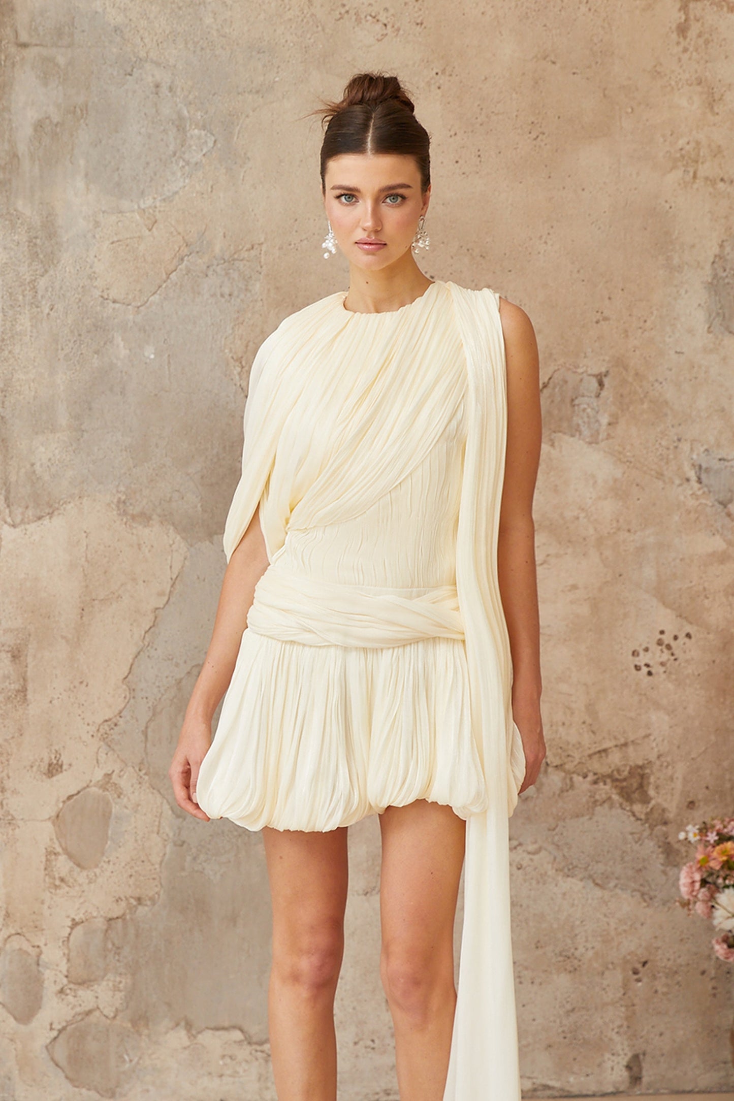 Cyrielle Pleated Mini Dress with Ribbon Design Accent