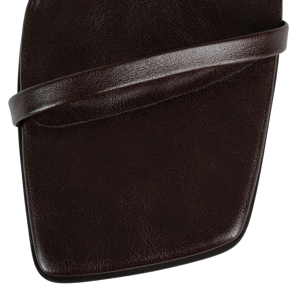 Dark Brown Open Square Toe Ankle Strap Kitten Heel Dress Sandals