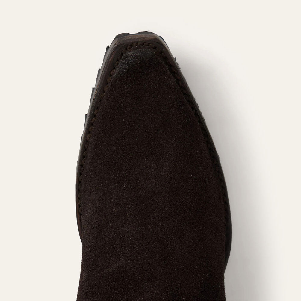 Dark Brown Snip Toe Zipper Mid Calf Cowgirl Boots with Chunky Heels