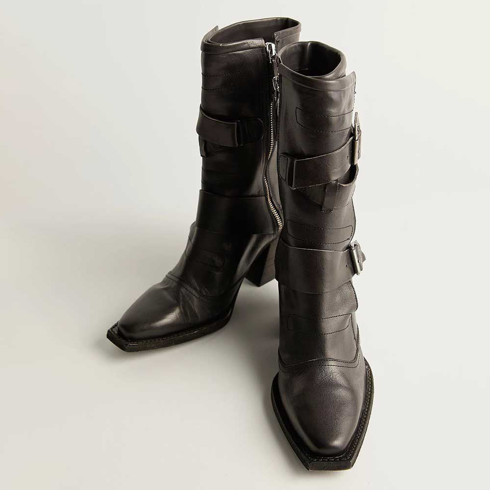 - Special Designs: The grey ankle boots feature a buckle strappy design with a snip toe and zipper details.