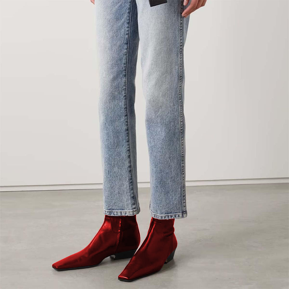 Fashion Red Metallic Square Toe Chunky Heel Booties for Women
