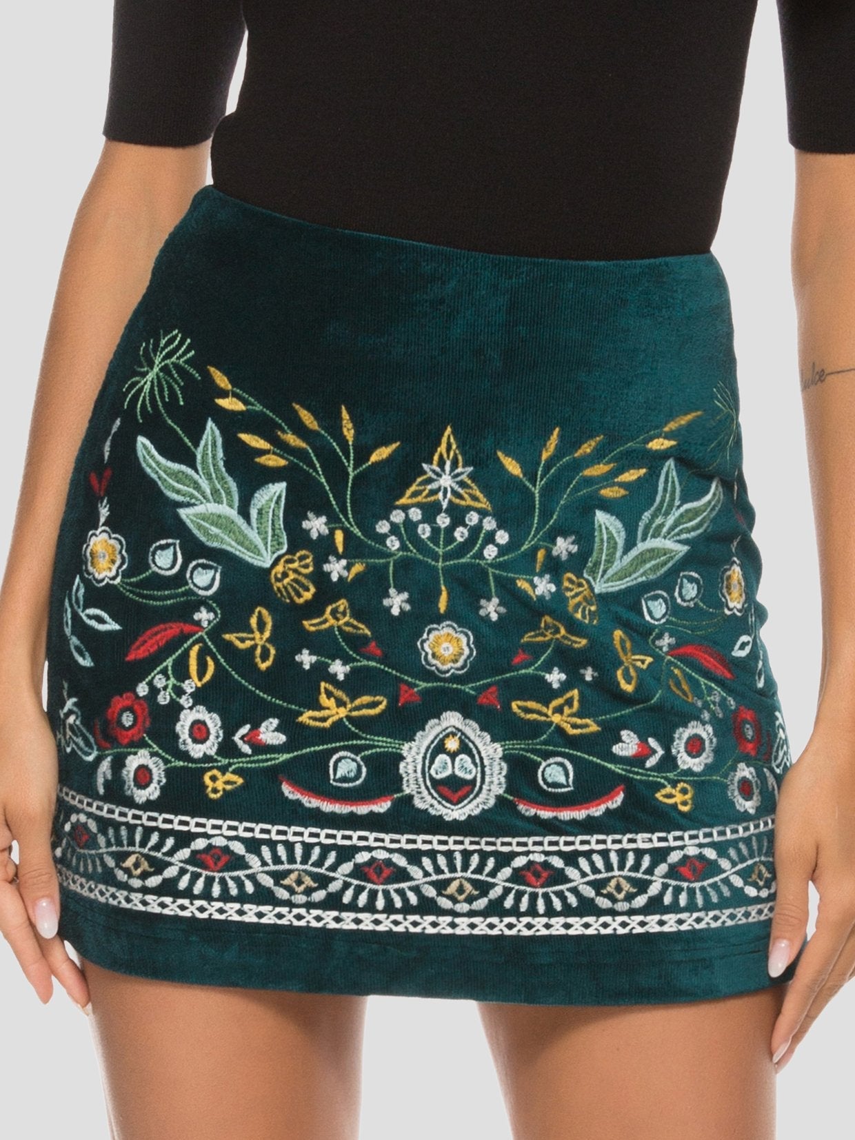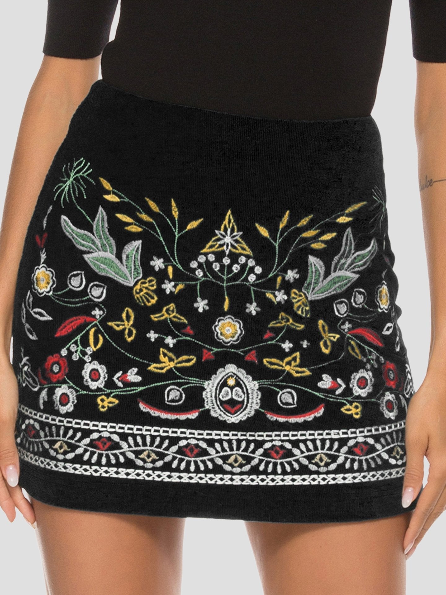 Delicate Handmade Floral Embroidery Velvet Skirt