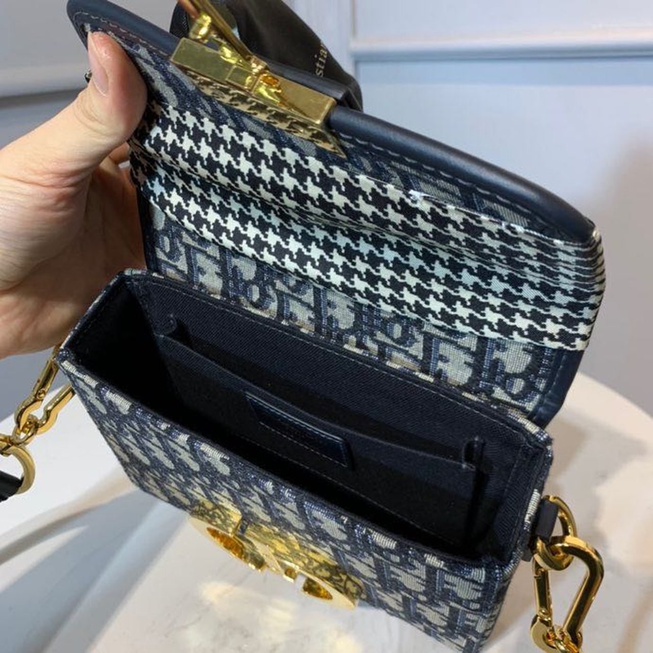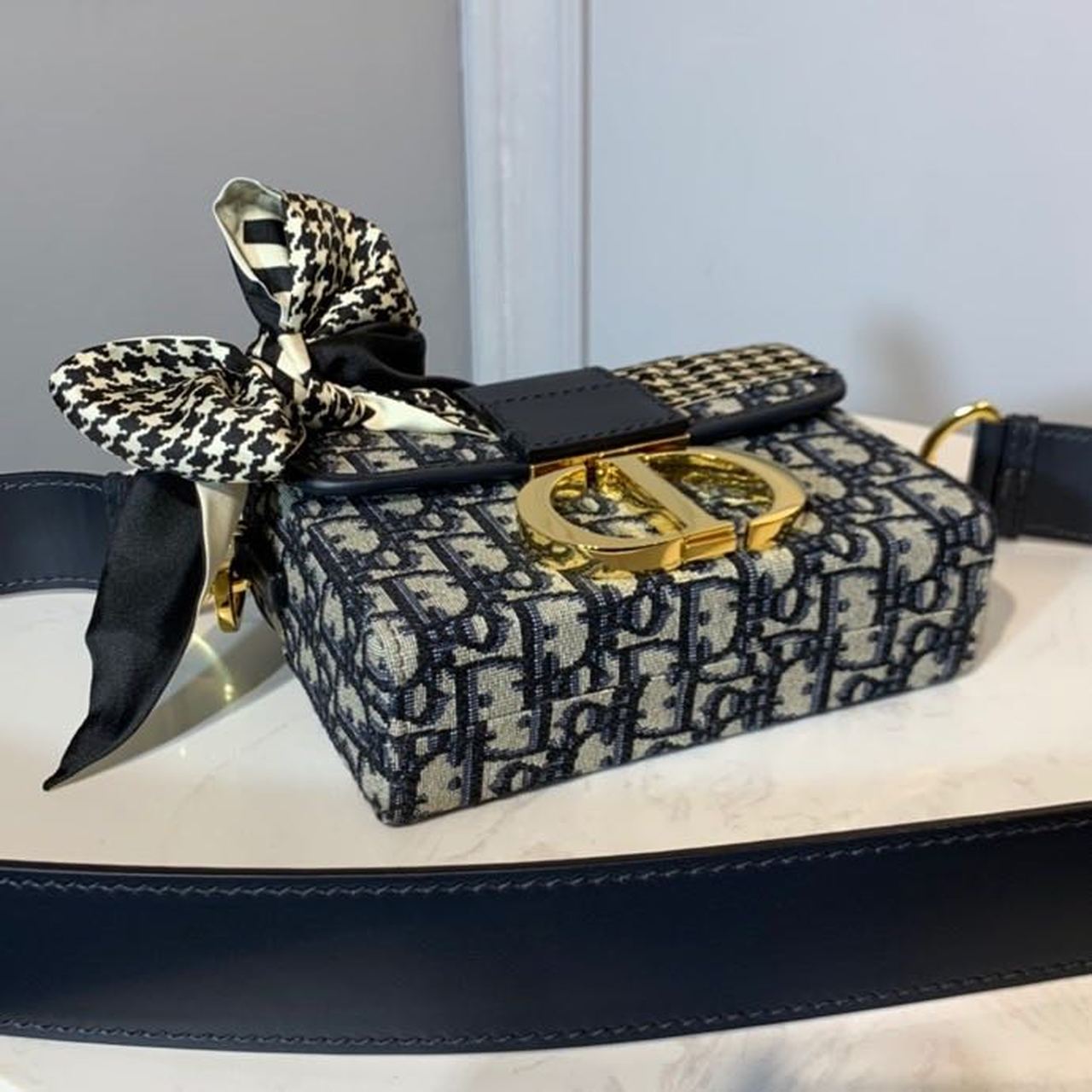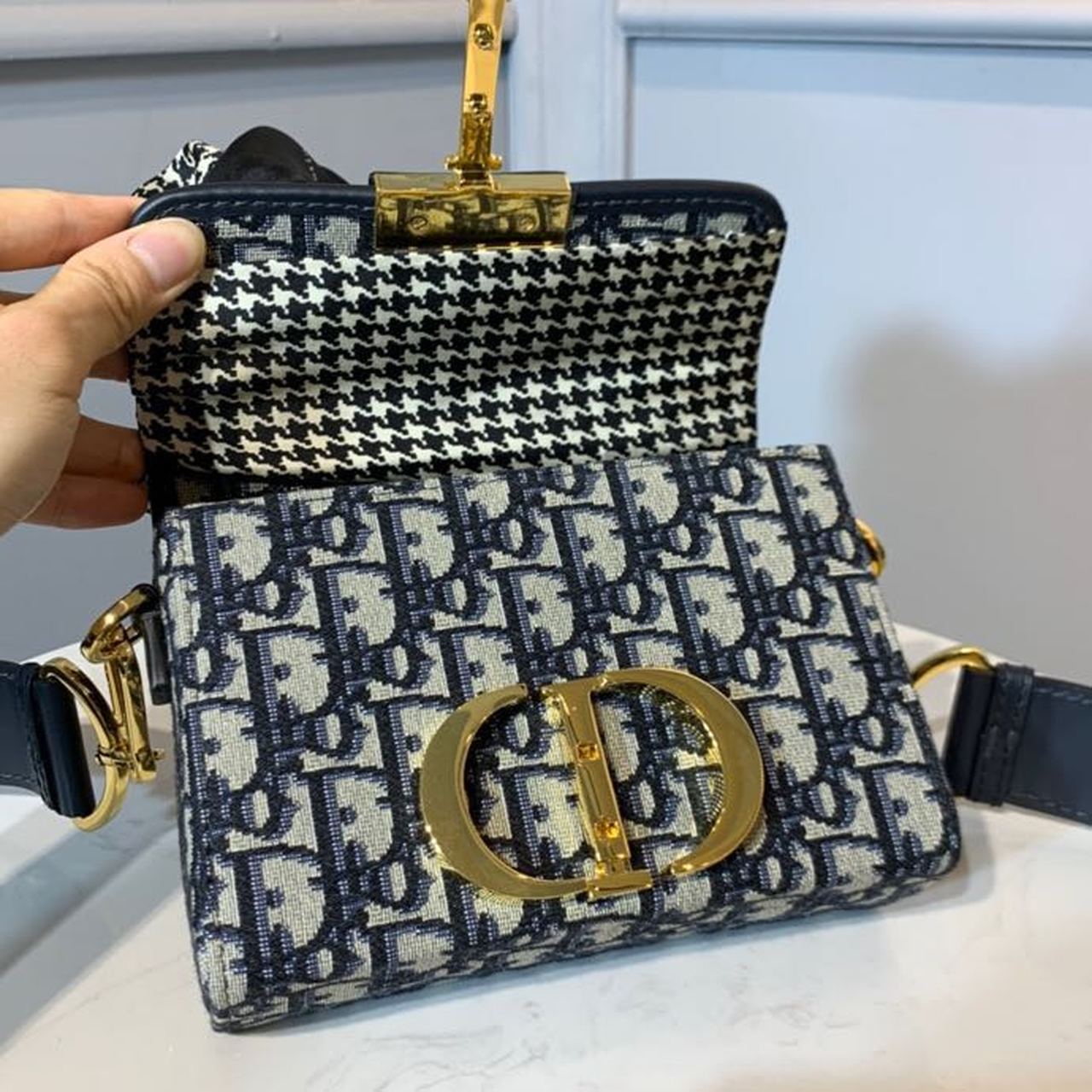 CHRSTN DR 30 Montaigne Box Bag Blue DYOR Oblique For Women17.5cm/7in FD Gold toned hardware CD