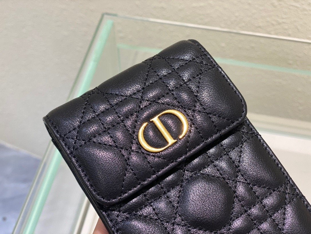 The Caro phone holder is a sophisticated and ingenious accessory.It features a ‘CD’ signature flap, featuring a removable chain punctuated with ‘CD’ chain links, the phone holder can be carried by hand or worn around the neck.