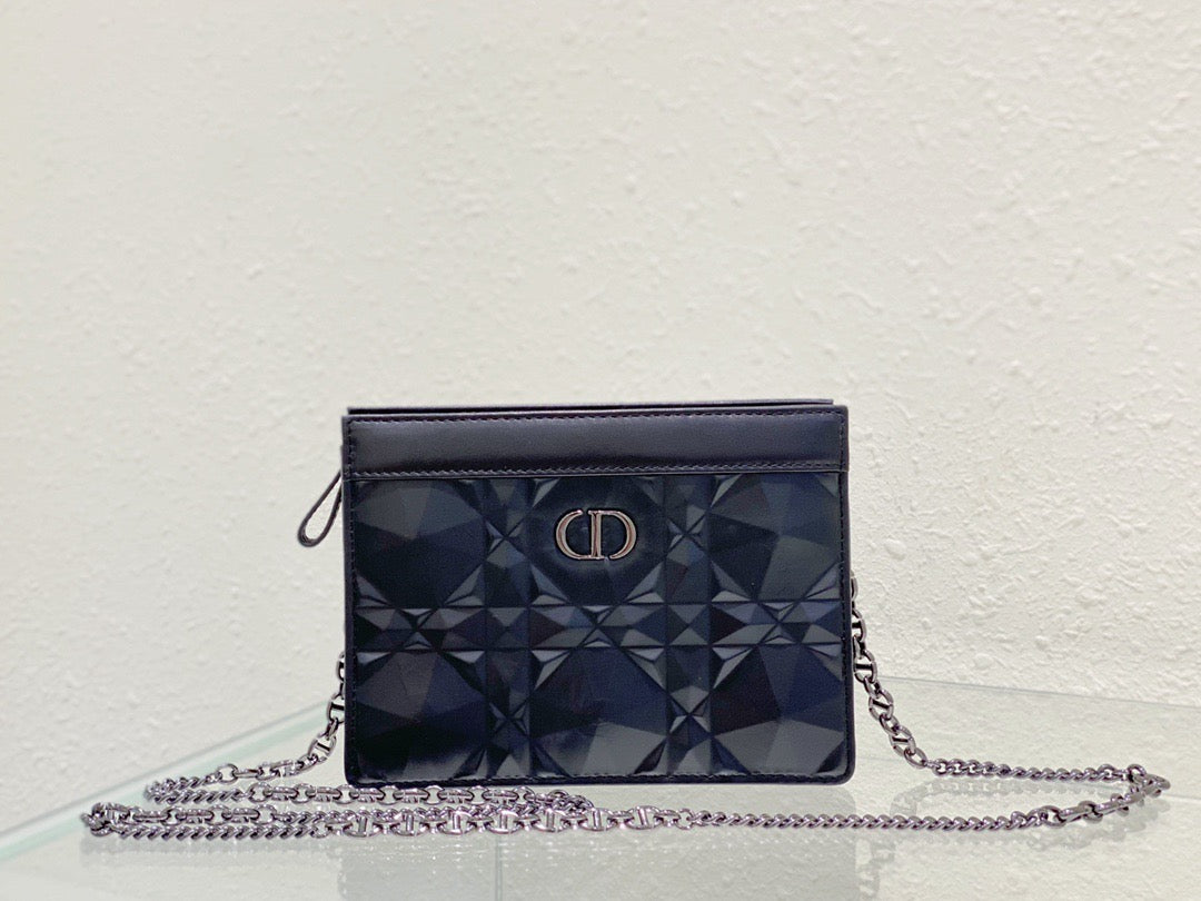 The Caro zipped pouch with chain combines modern and functional design with the House’s codes of elegance. Thanks to its removable chain punctuated with ‘CD’ chain links, the pouch can be carried by hand, worn over the shoulder or crossbody, and pairs well with other pieces from the same line.