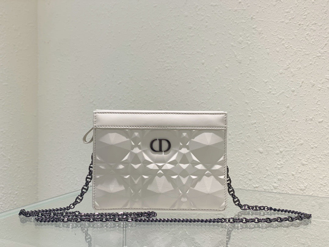 DI Caro Zipped Pouch With Chain White, For Women, Women’s Handbags 7.5in/19cm CD