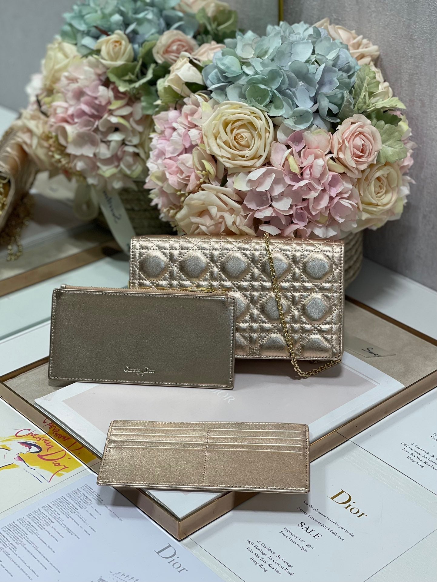 The Lady DYOR pouchis distinguished by the emblematic Cannage topstitching and a detachable ‘D.I.O.R.’ charm. This unique accessory may be worn with or without its chain strap and features two removable elements: a card holder and a zipped pouch. Each may be carried individually. The pouch will instantly stand out and pairs well with other pieces from the same line.