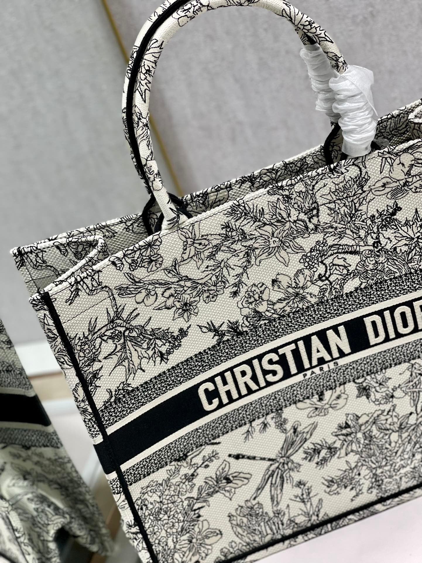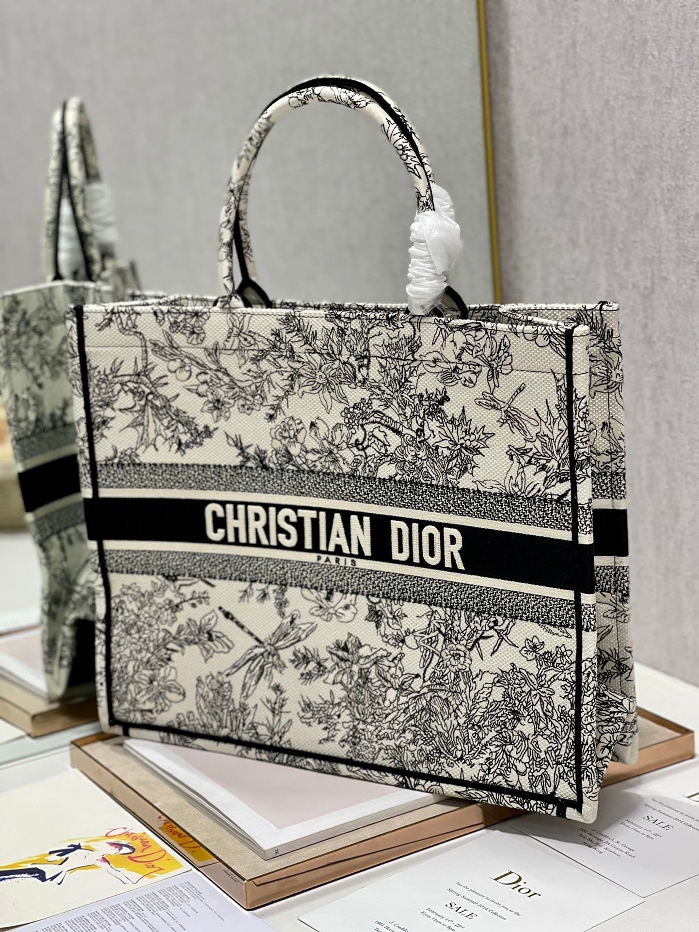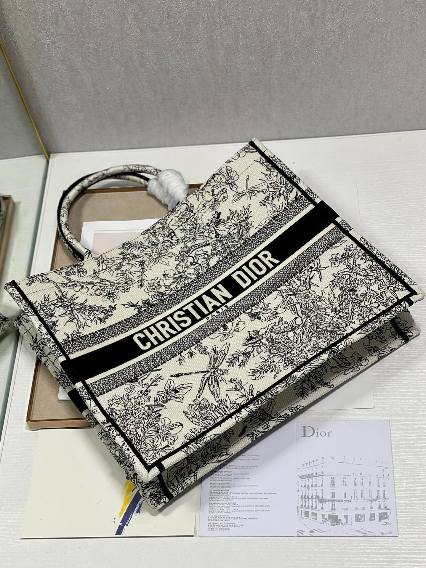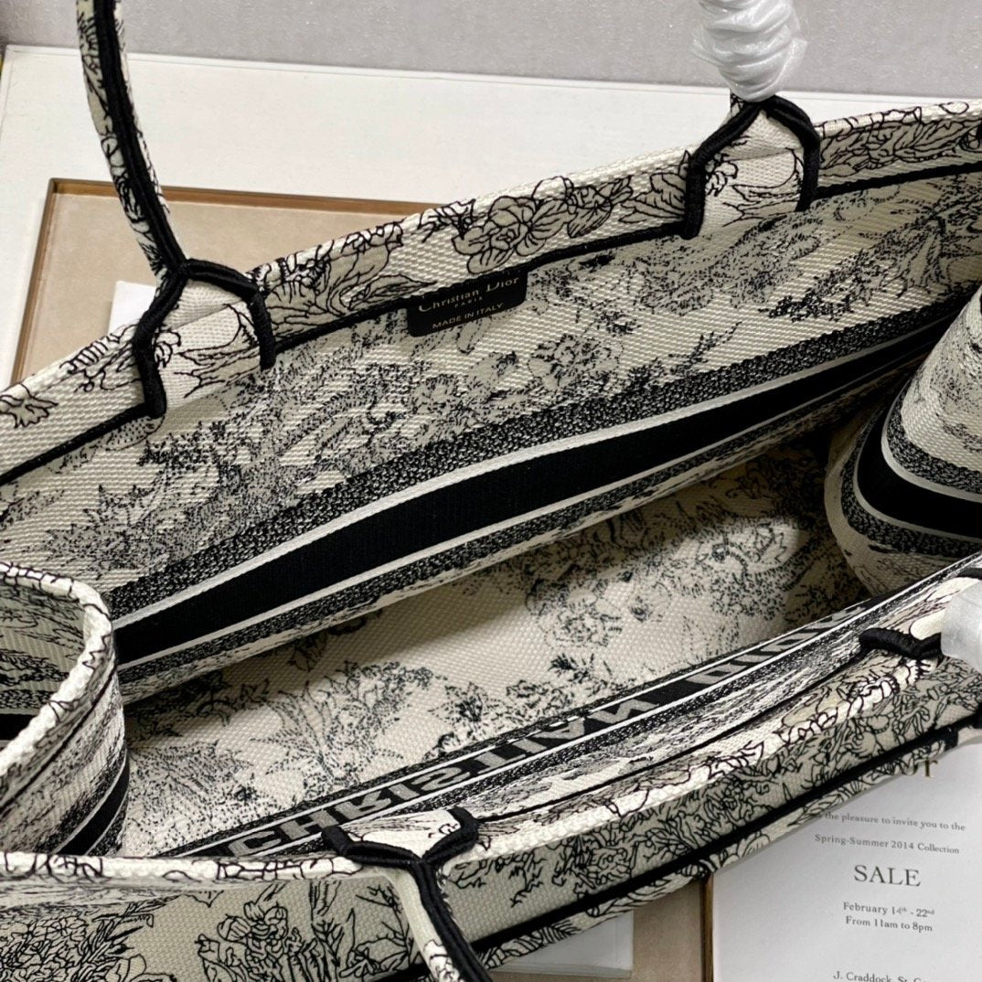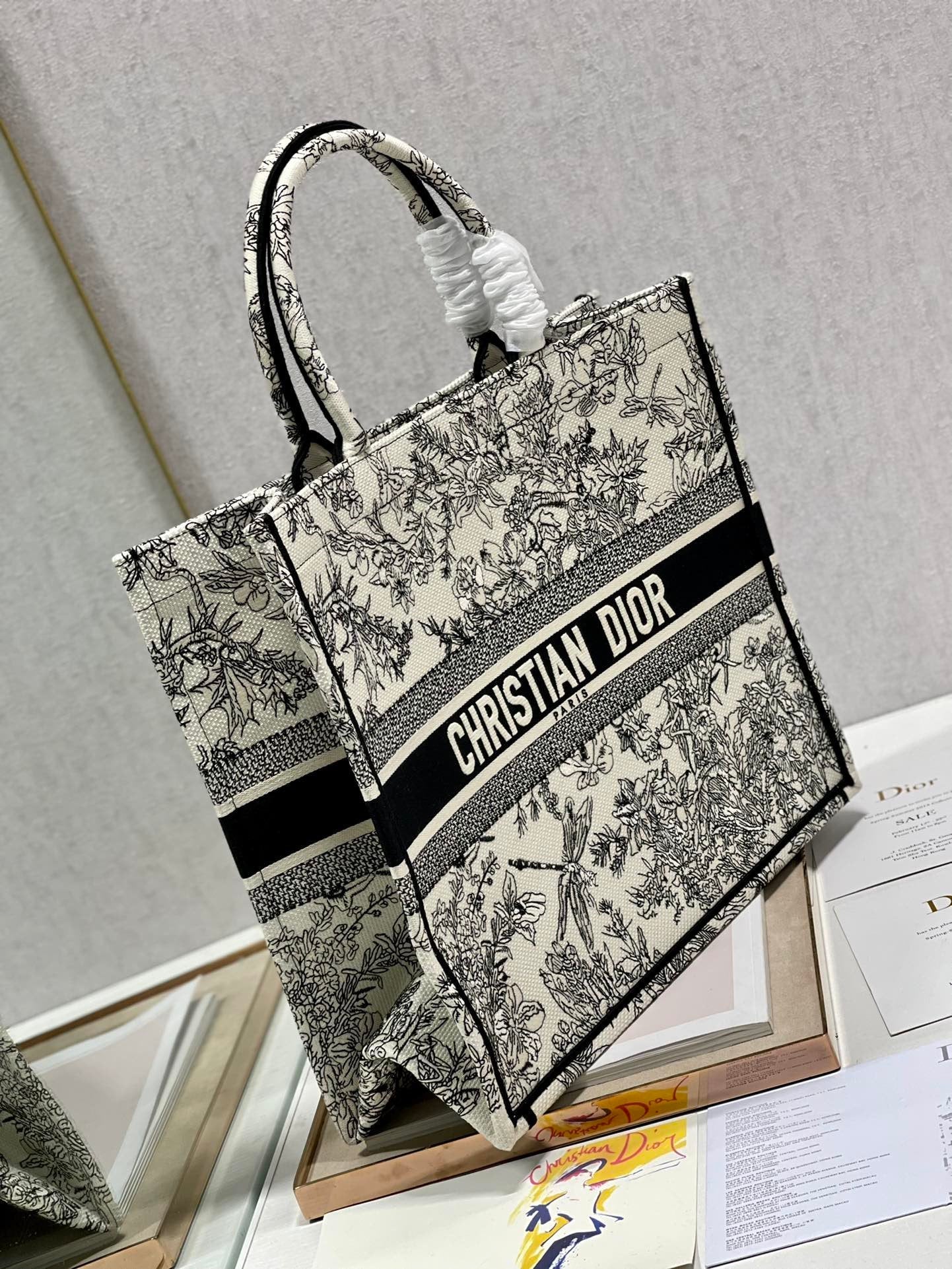 DI Large Book Tote Blue Toile de Jouy Flowers Embroidery, Blue/Beige, For Women Women’s Handbags, Shoulder Bags, 42cm CD M1286ZTQW_M808