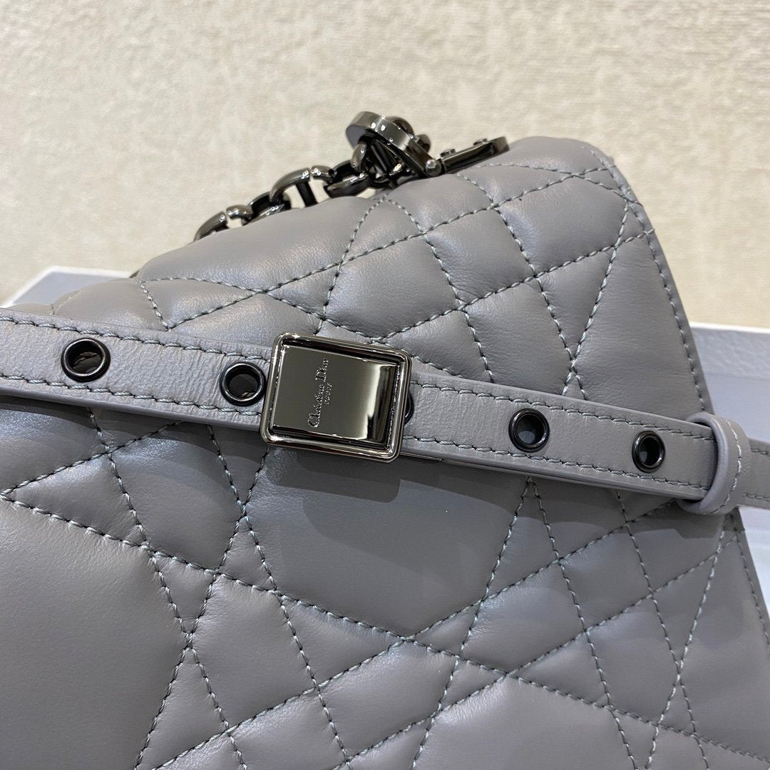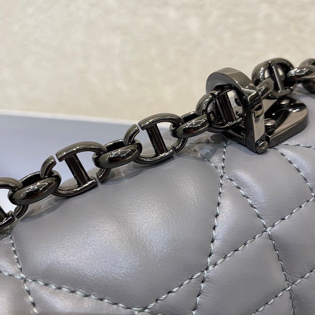 The DYOR Caro bag combines modernity with timeless elegance. The design is crafted in gray and is distinguished by its original quilted-effect Macrocannage stitching, as well as a flap adorned with a ruthenium-finish metal ‘CD’ twist clasp, inspired by the seal of a CHRSTN DR perfume bottle. The detachable chain shoulder strap with ‘CD’ signature links allows the large bag to be carried by hand, worn over the shoulder or crossbody, and can be replaced by one of the House’s wide embroidered straps for day or evening attire.