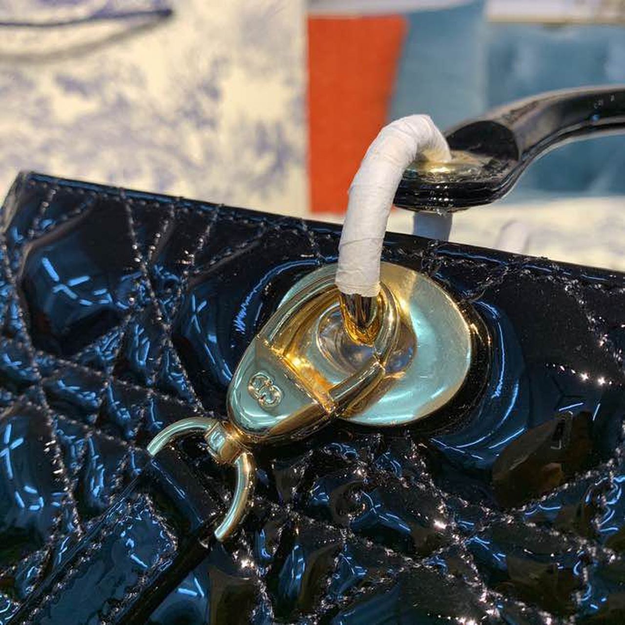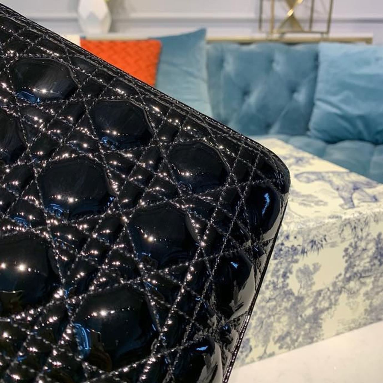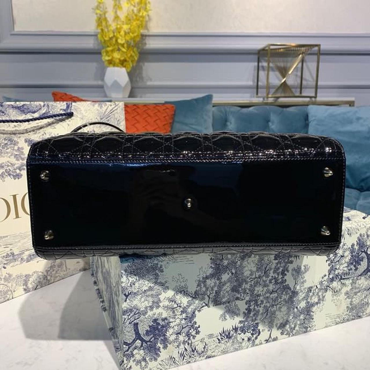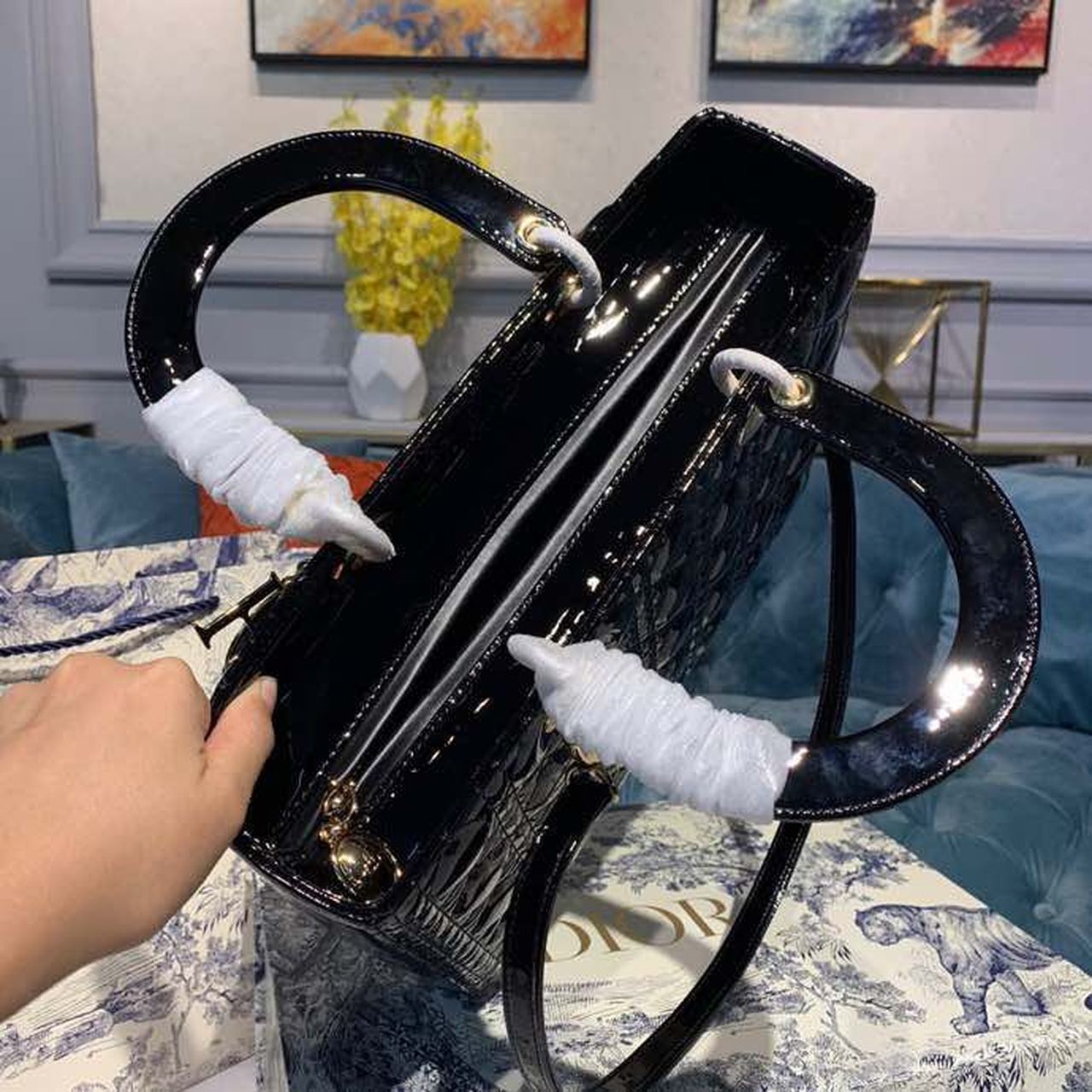 The Lady DYOR handbag epitomizes the House’s vision of elegance and beauty. Sleek and refined, the timeless yet relevant style is crafted in black material with Cannage stitching, creating the instantly recognizable quilted texture. The pale gold-finish metal ‘D.I.O.R.’ charms lend a polished touch to the style. Featuring a thin, removable shoulder strap, the large Lady DYOR bag can be carried by hand, worn over the shoulder or crossbody as an ideal evening companion.