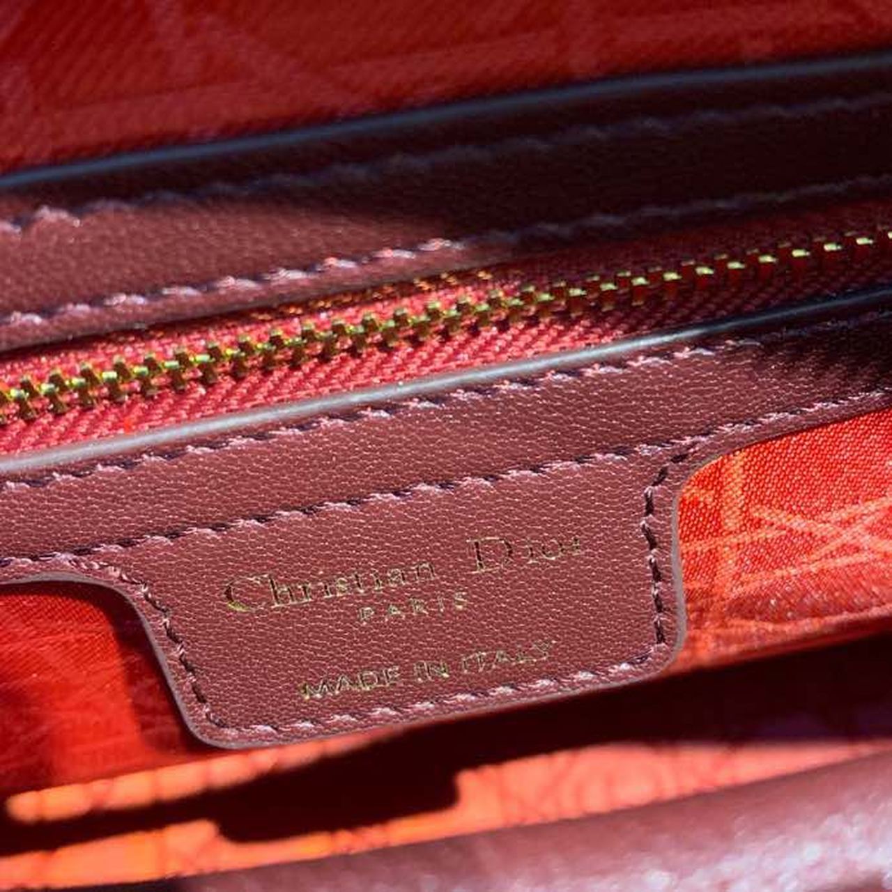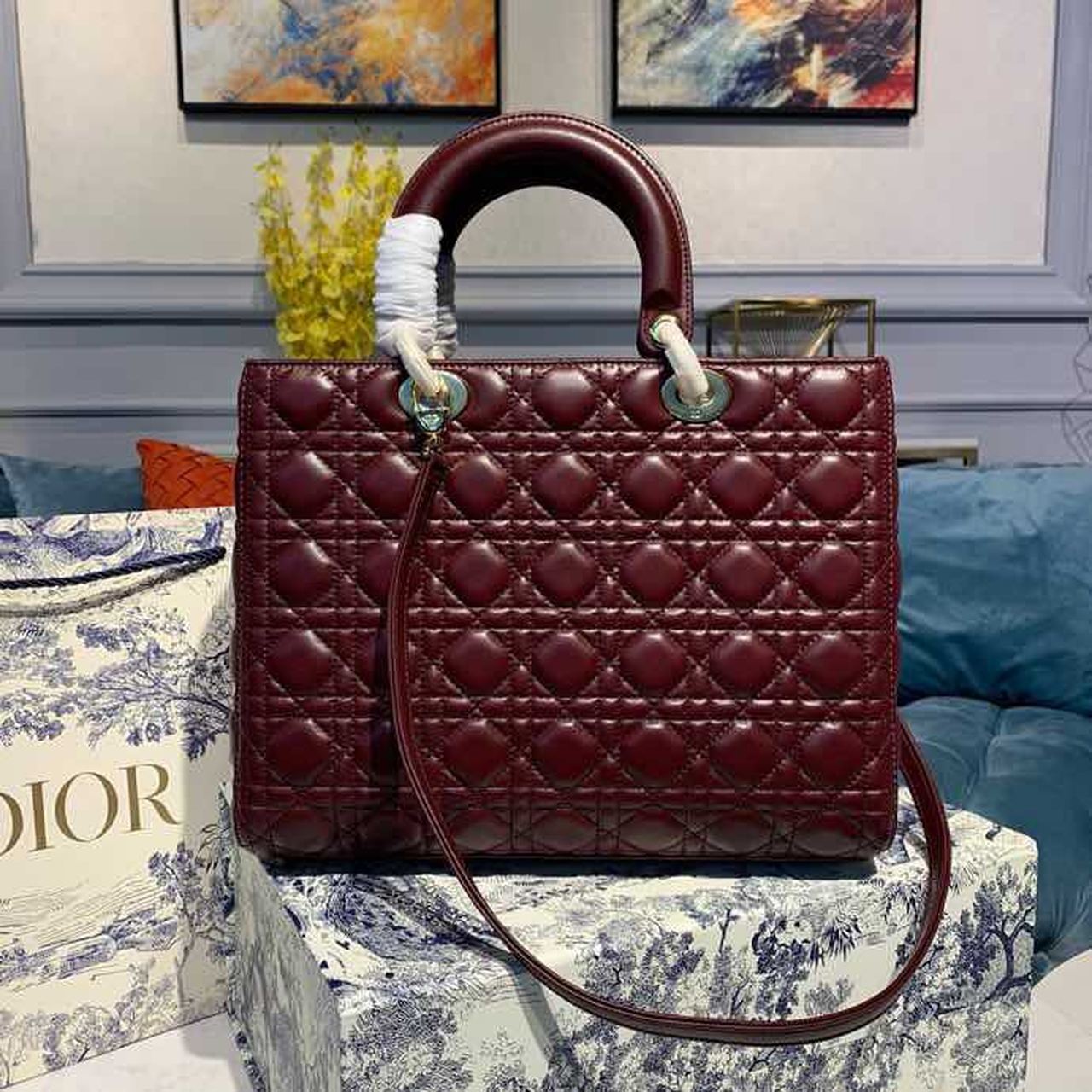 CHRSTN DR Large Lady DYOR Bag Gold toned hardware Burgundy Cannage For Women 12.5in/32cm CD