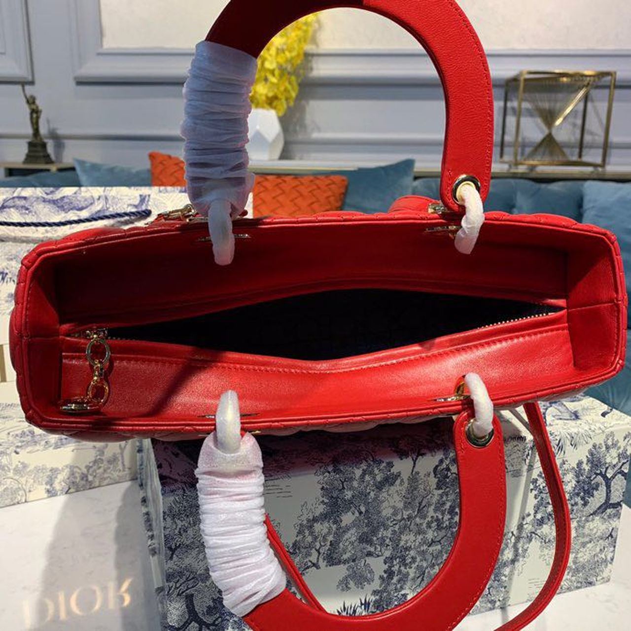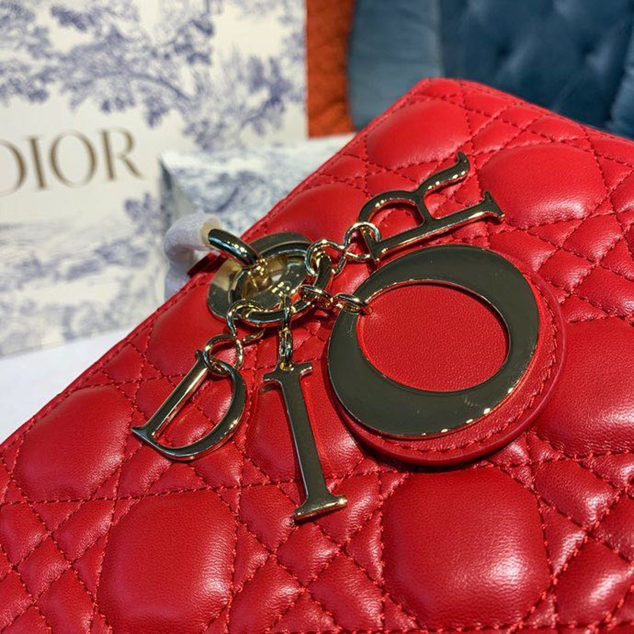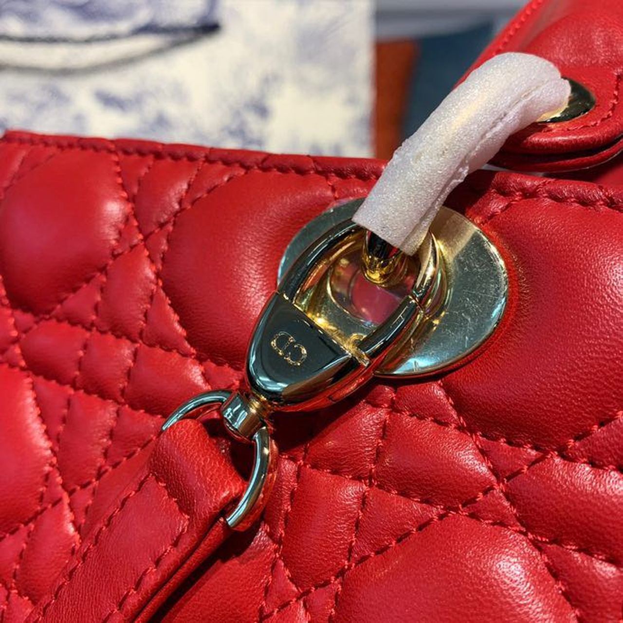 CHRSTN DR Large Lady DYOR Bag Gold toned hardware Cherry Red Cannage For Women CD 12.5in/32cm M0566ONGE_M52R