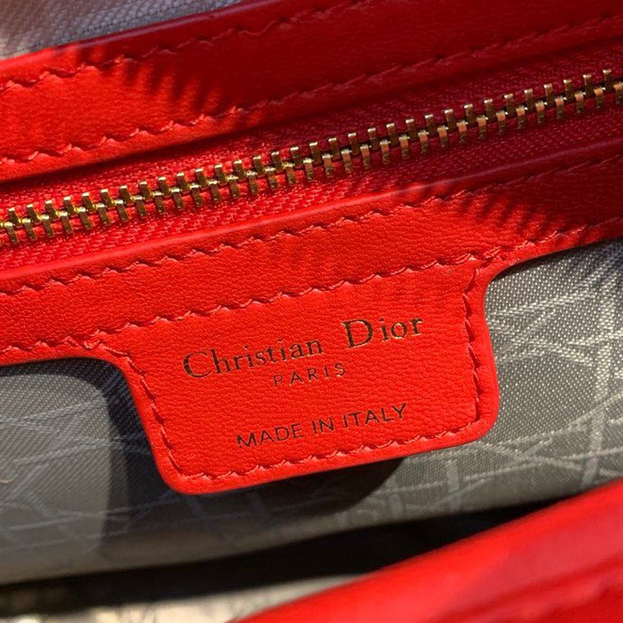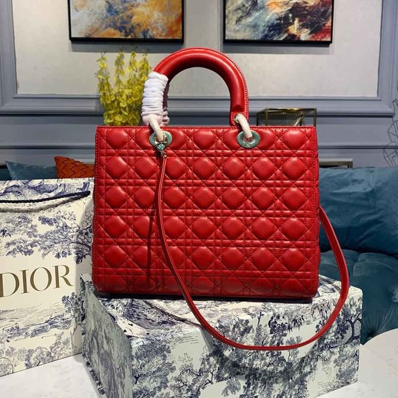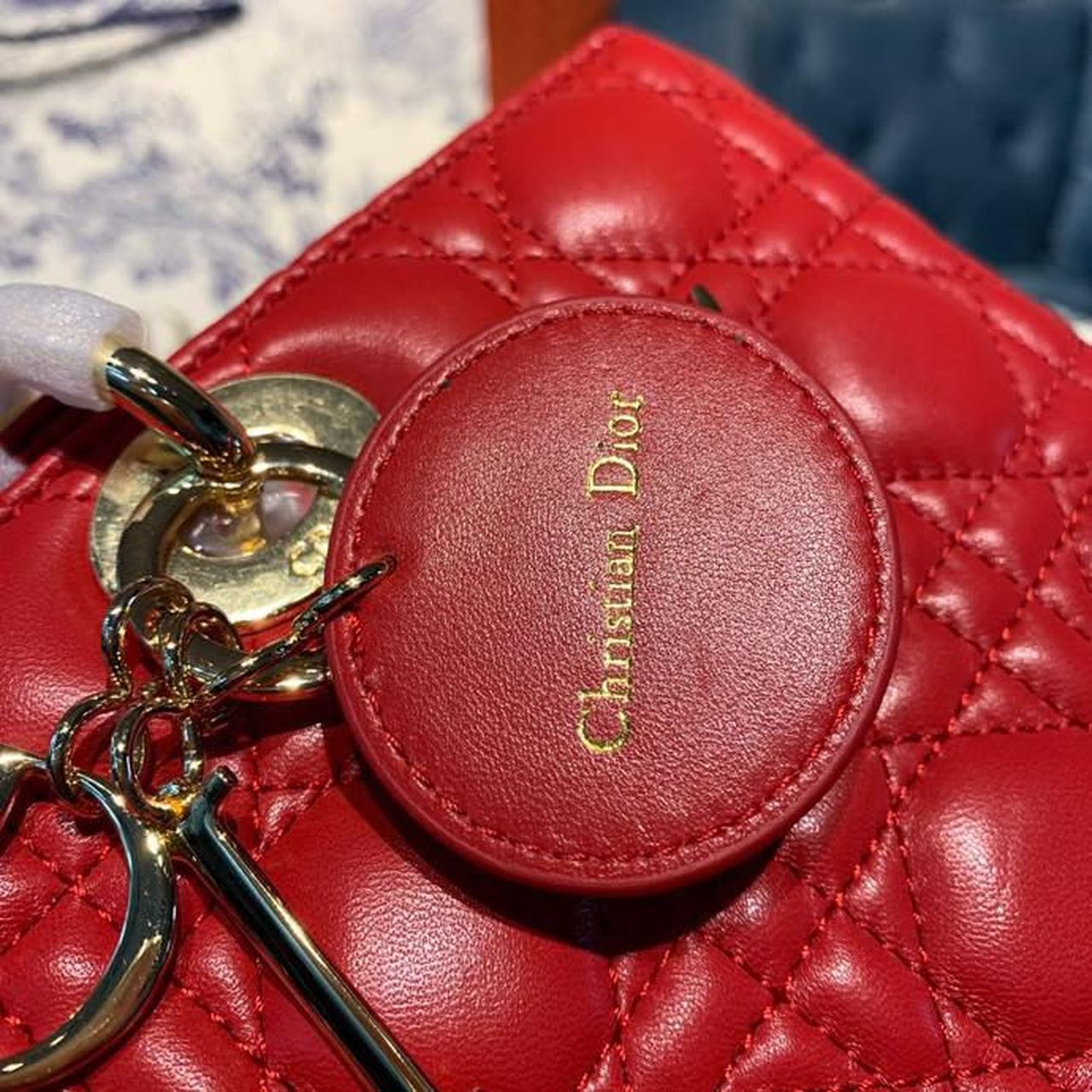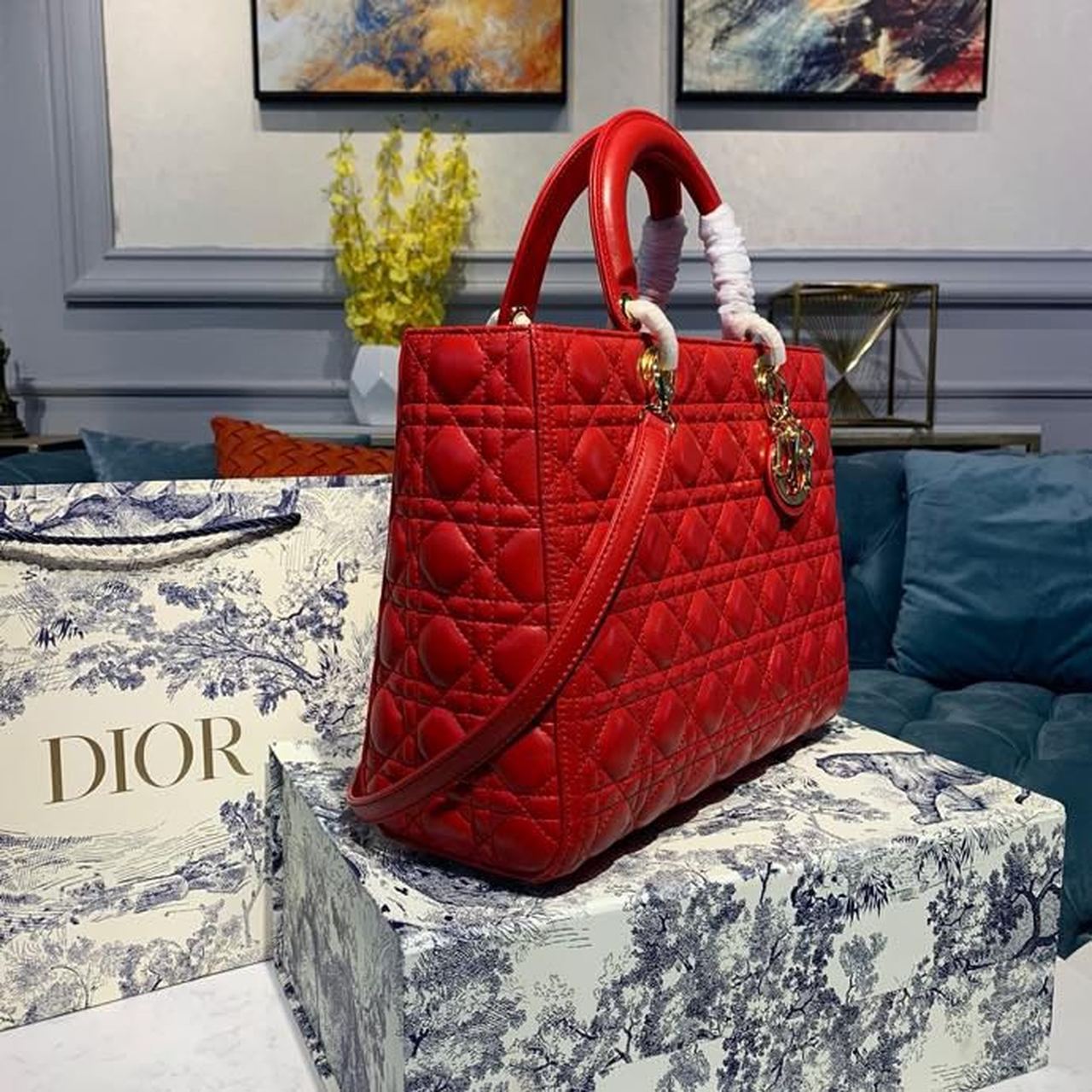 CHRSTN DR Large Lady DYOR Bag Gold toned hardware Cherry Red Cannage For Women CD 12.5in/32cm M0566ONGE_M52R