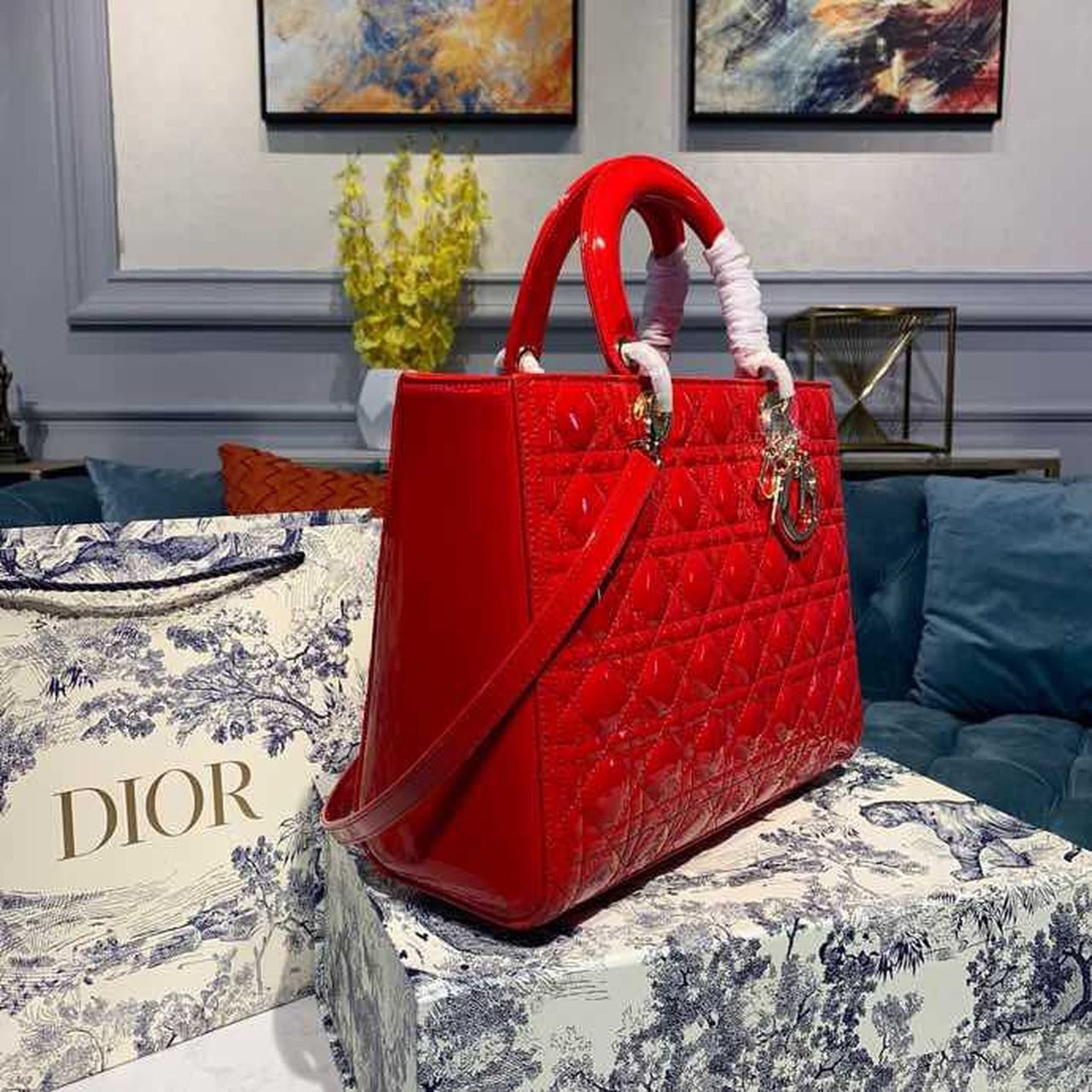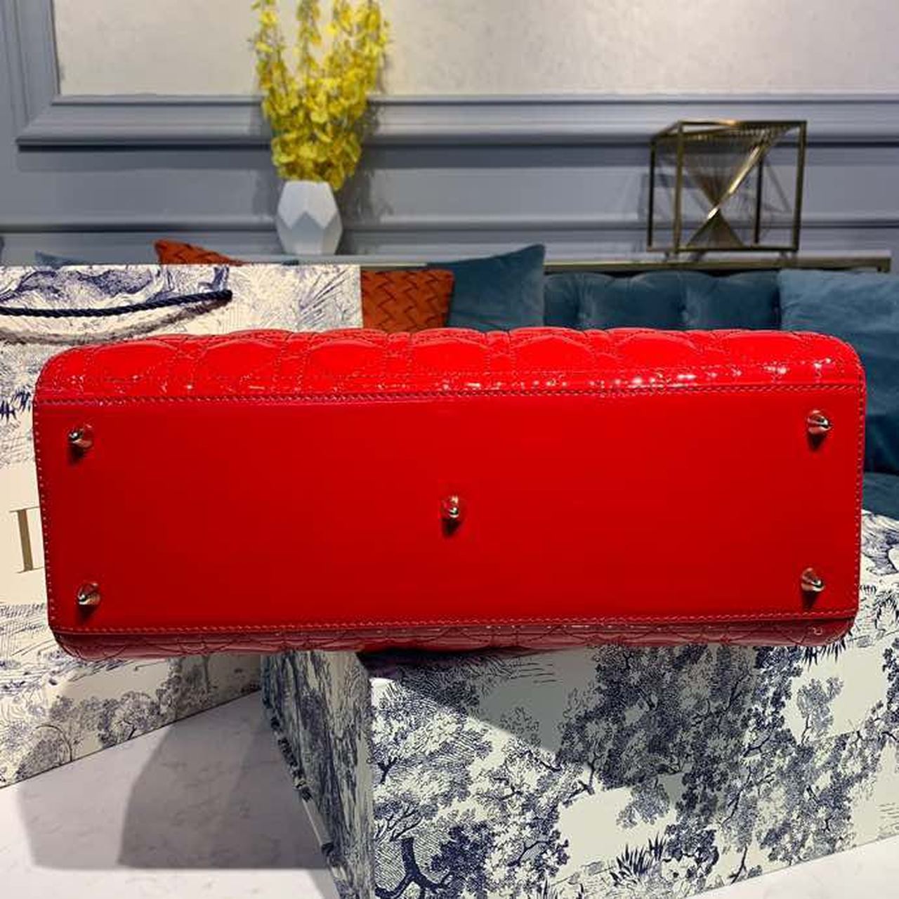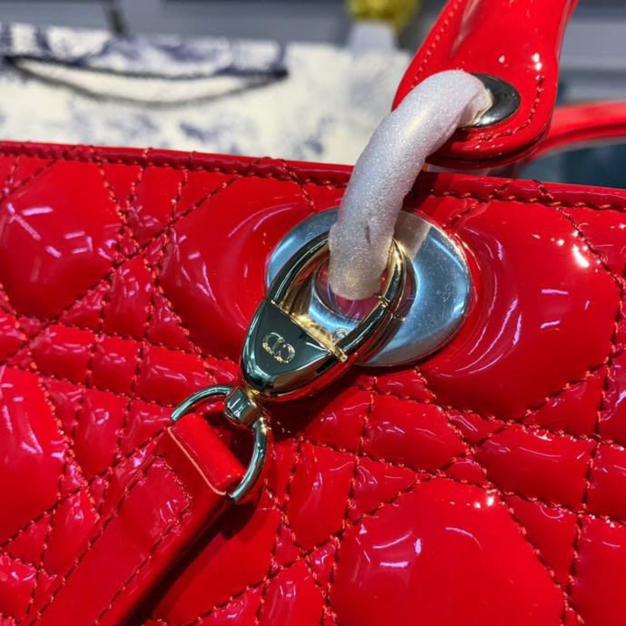 CHRSTN DR Large Lady DYOR Bag Gold toned hardware Red Patent For Women 12.5in/32cm CD
